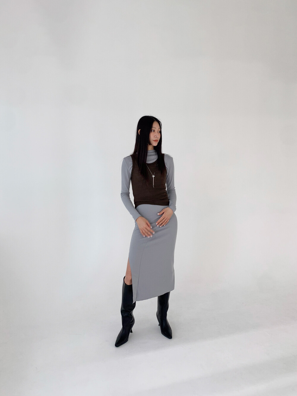 스타킹이나 부츠로 코디해 줘도 좋아요