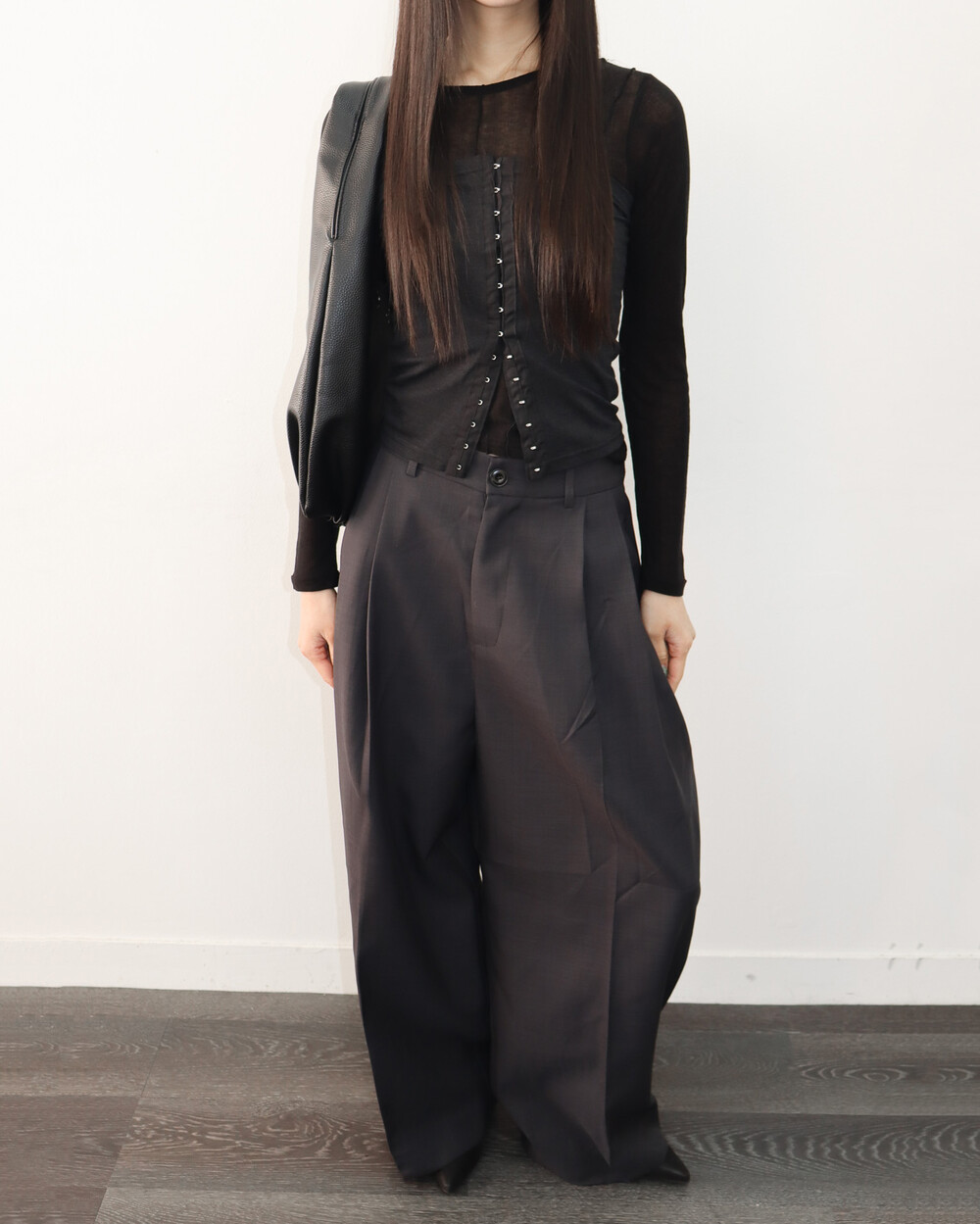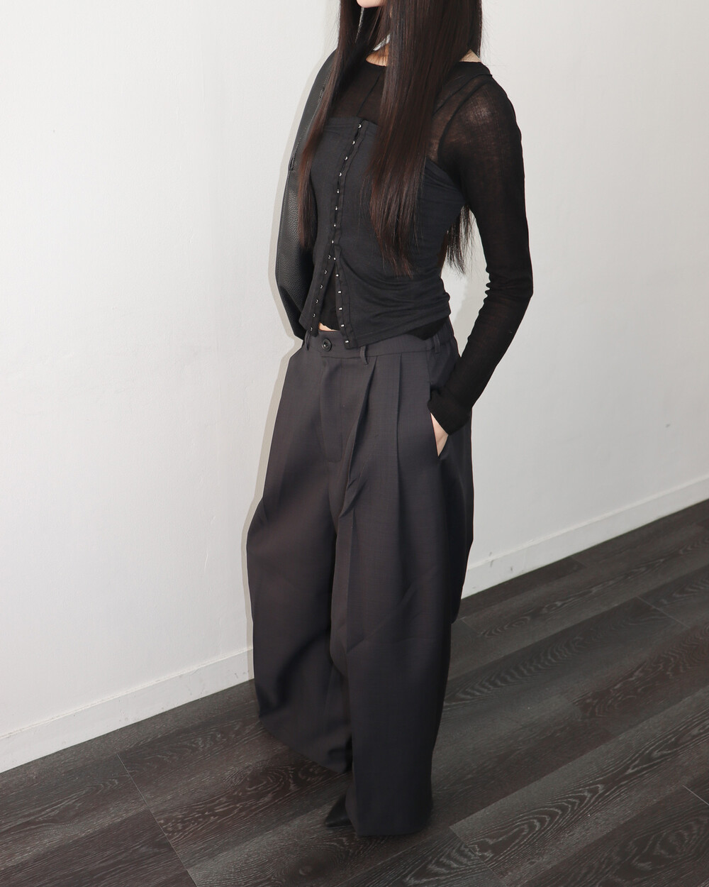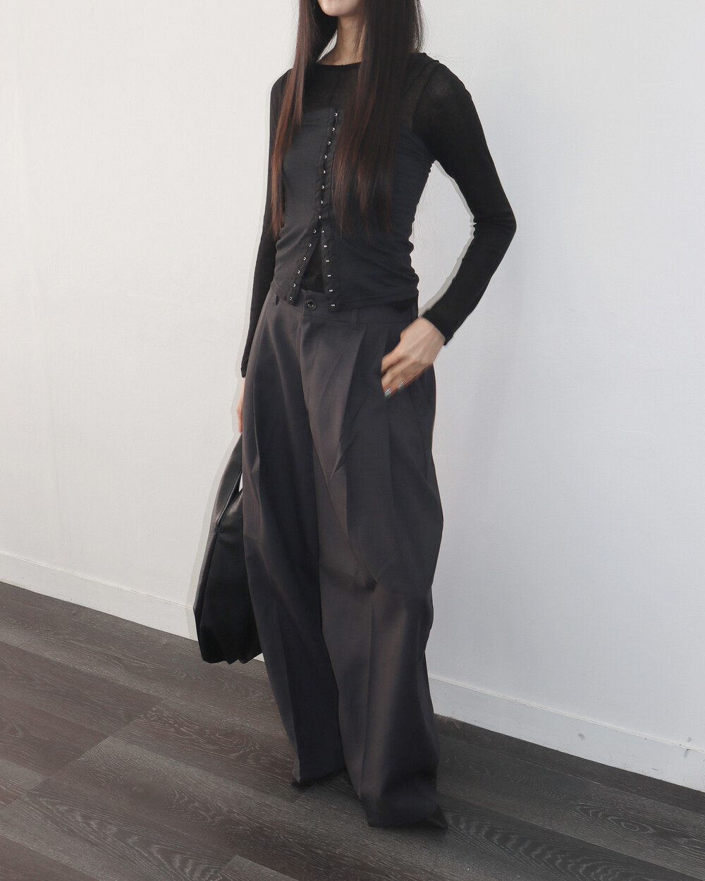- AMPLY PINTUCK SLACKS (CHARCOAL)