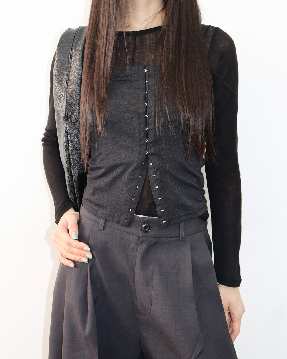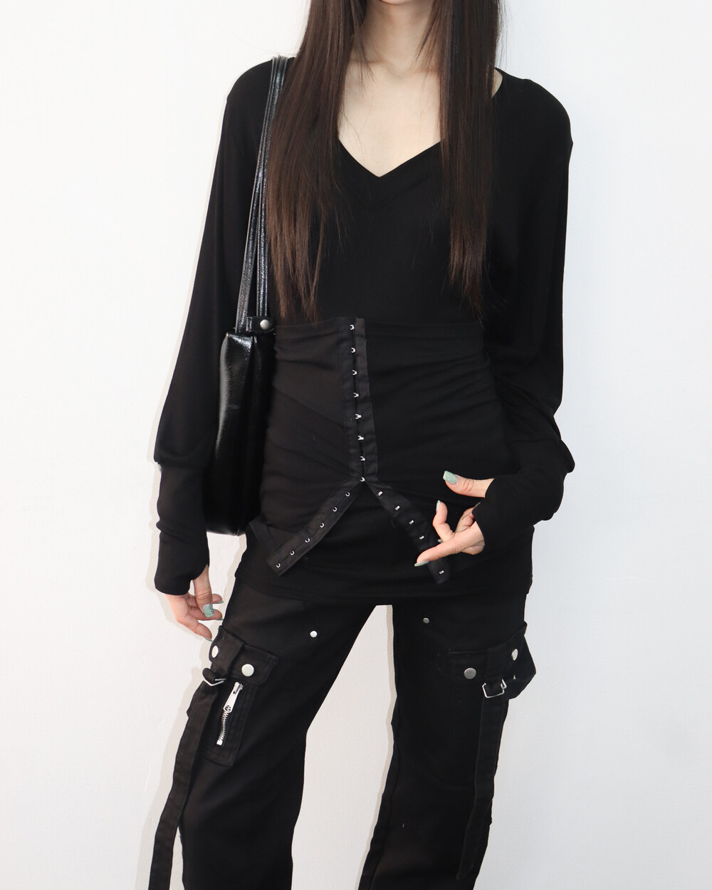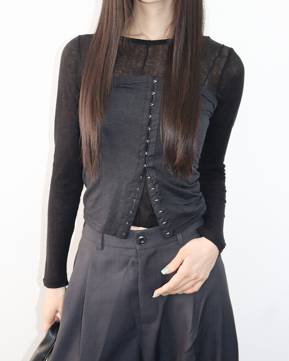 적당한 텐션감있는 소재로 바디라인을 자연스럽게 감싸줍니다