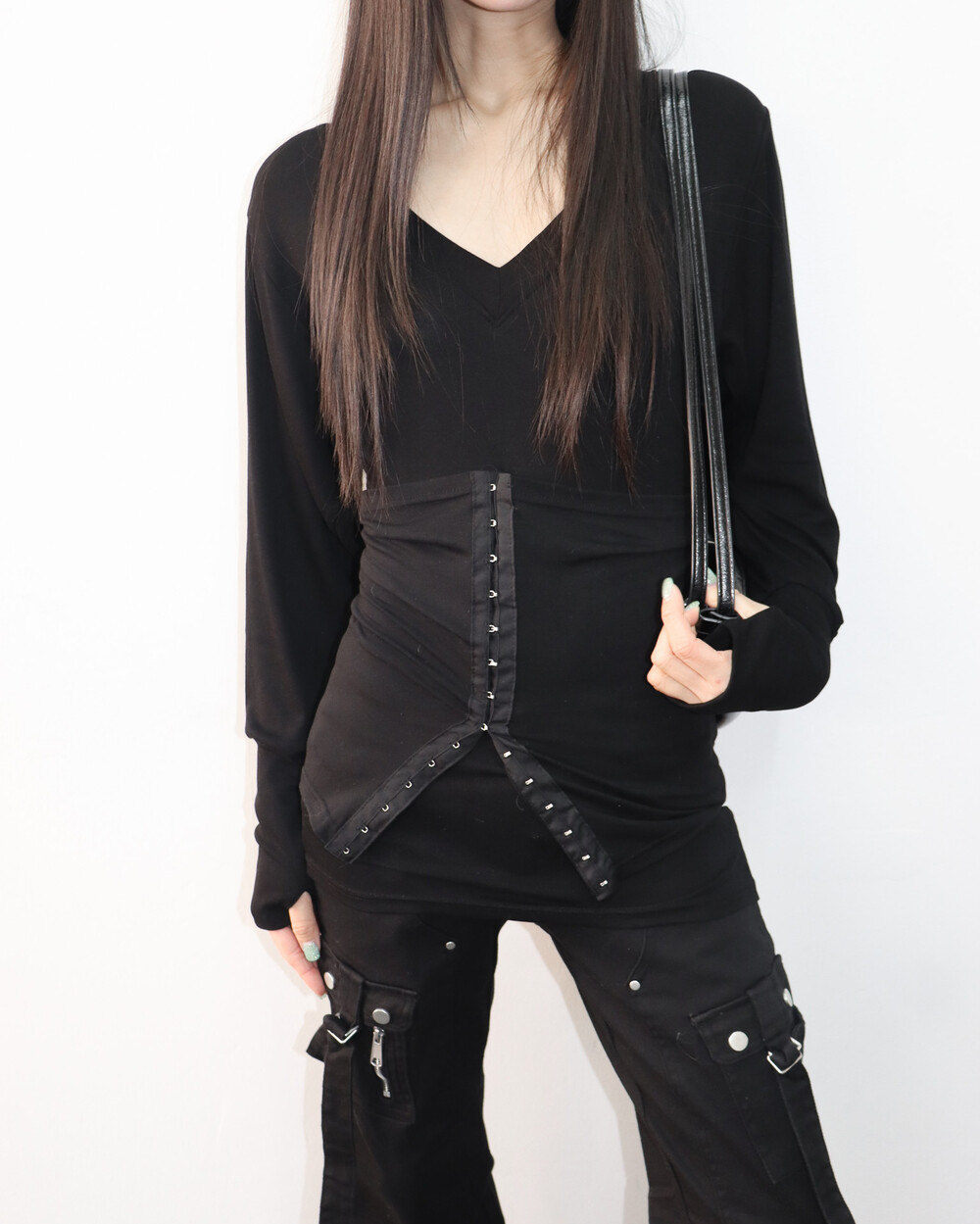 - CYNTH SLIM V-NECK TOP (BLACK)
