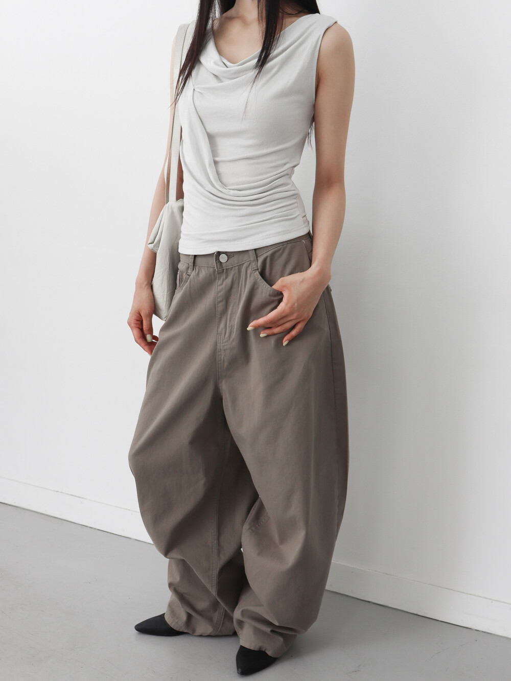 벌룬한 와이드 실루엣이 연출되는 코튼 팬츠