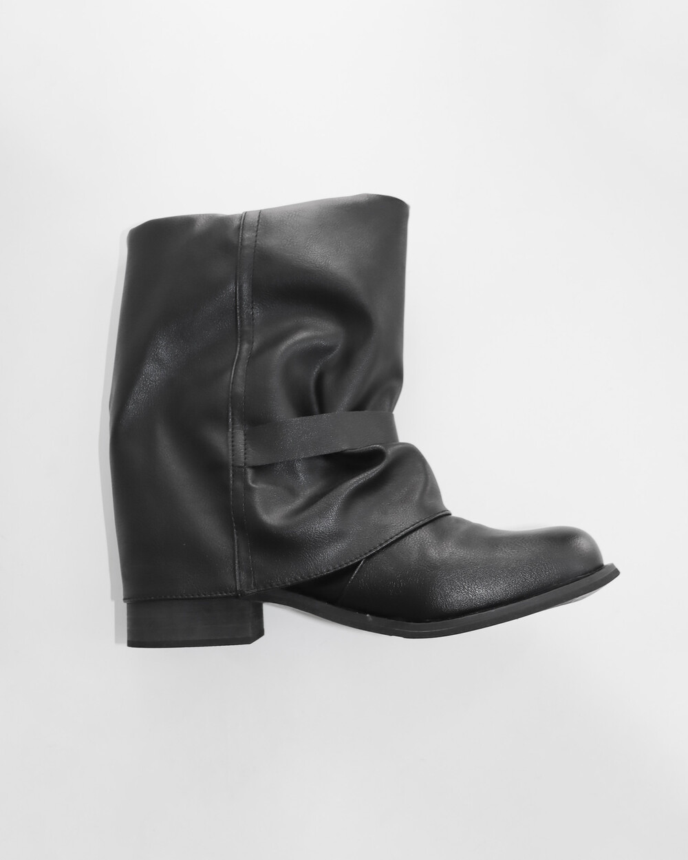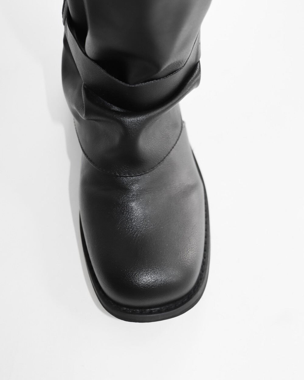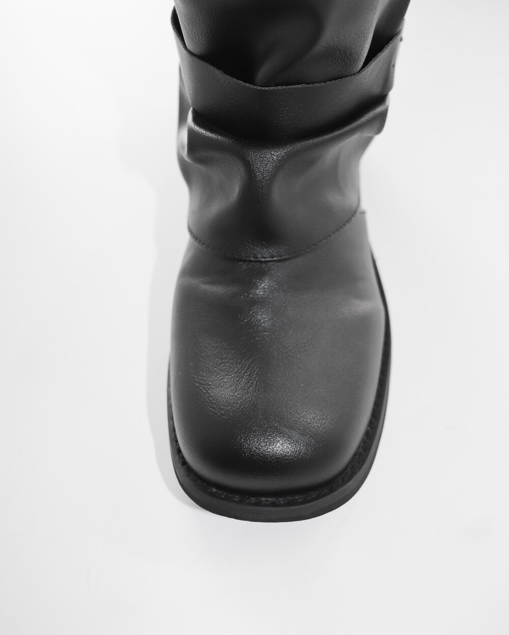 발목의 통이 넓게 나온 제품이라 팬츠를 대충 구겨 넣는 룩을