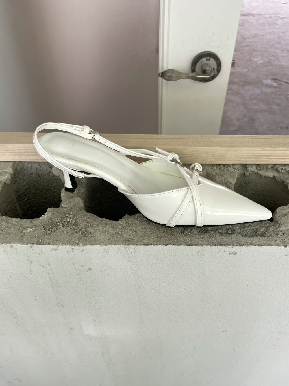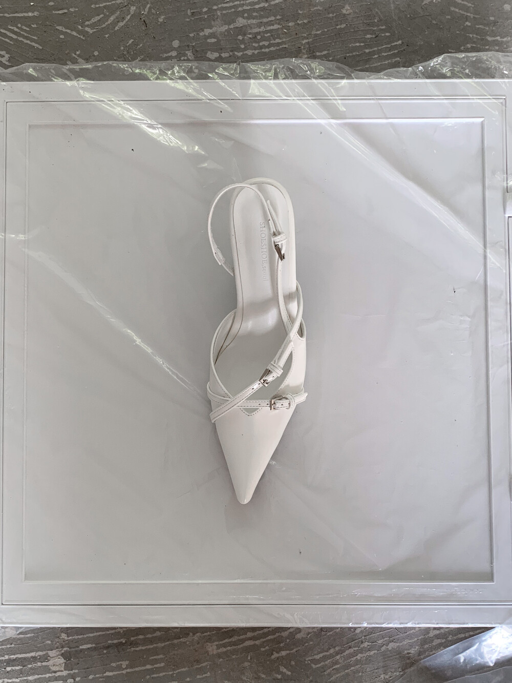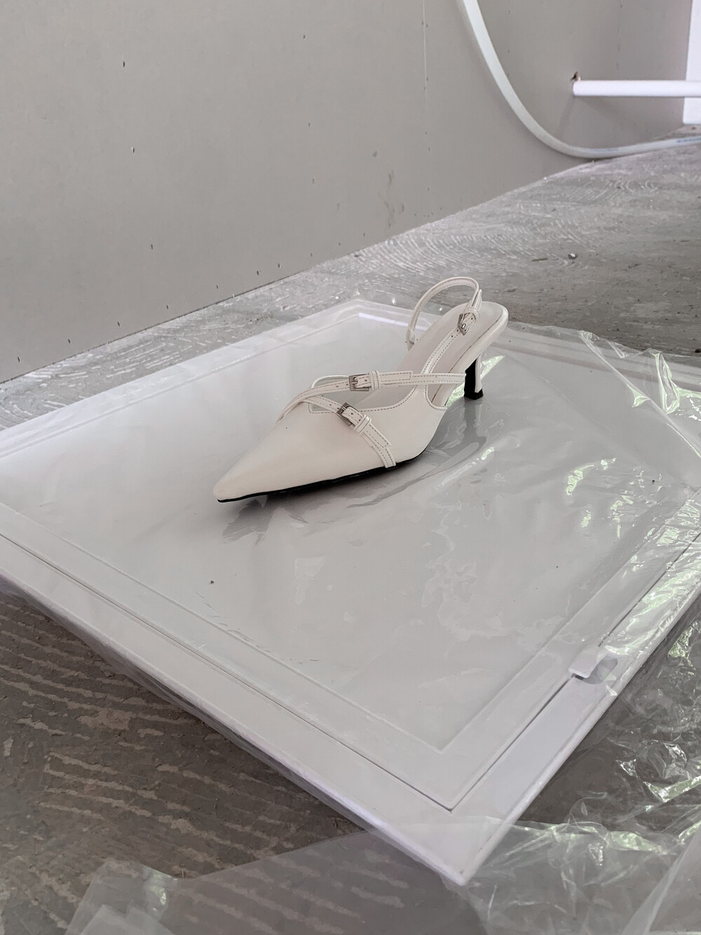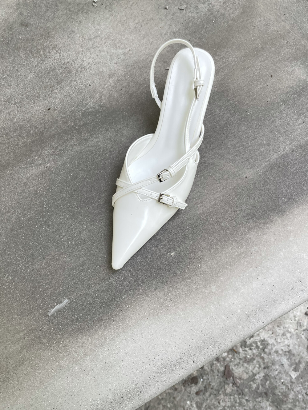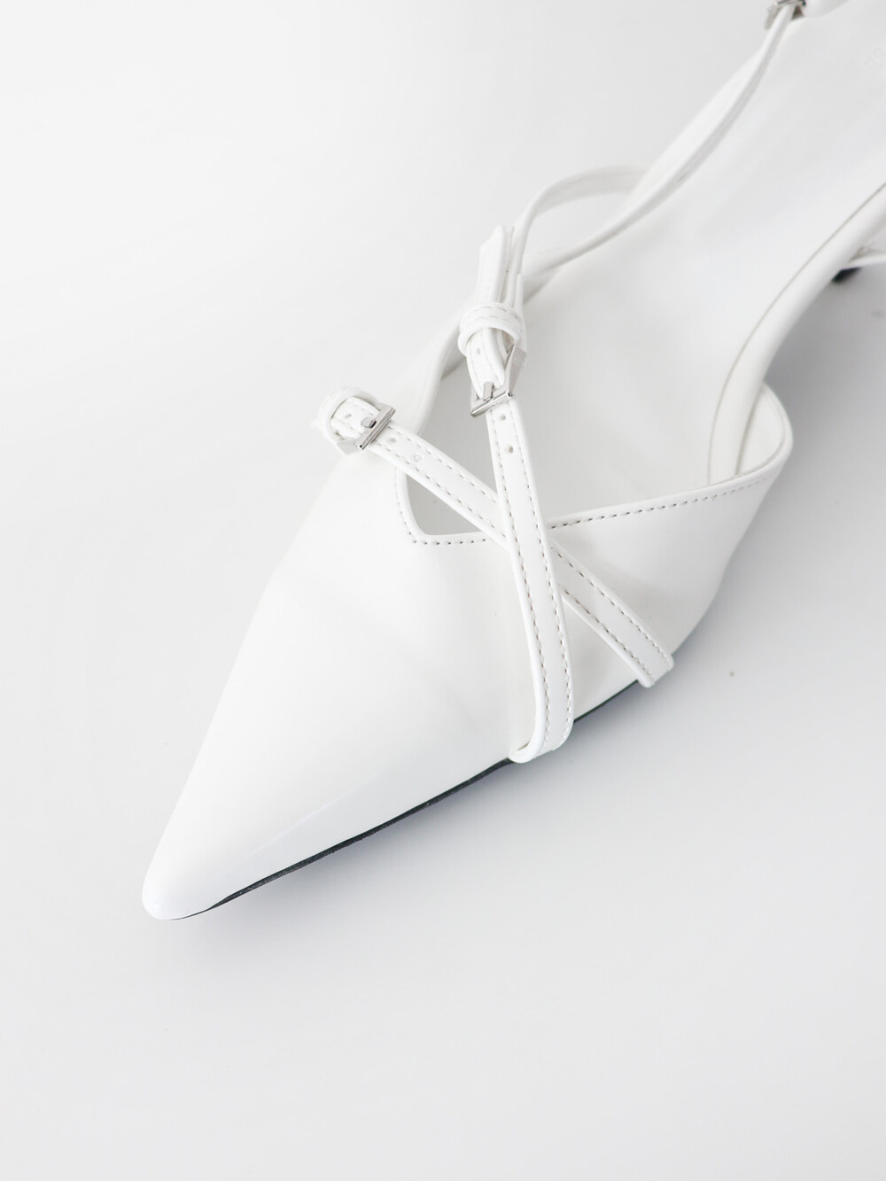 뒷 부분이 오픈되어 있는 슬링백 디자인