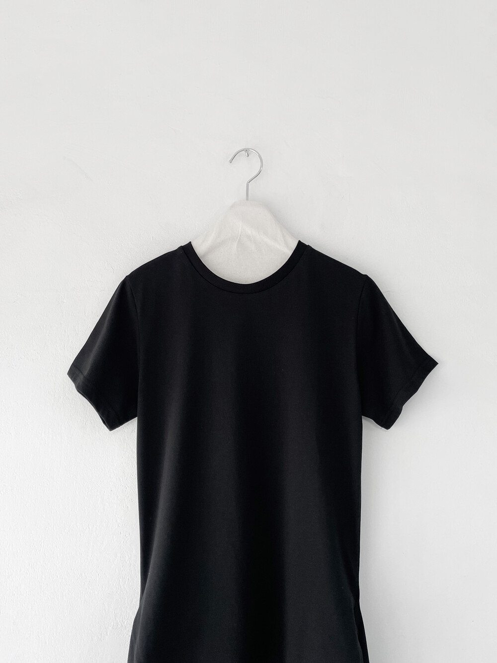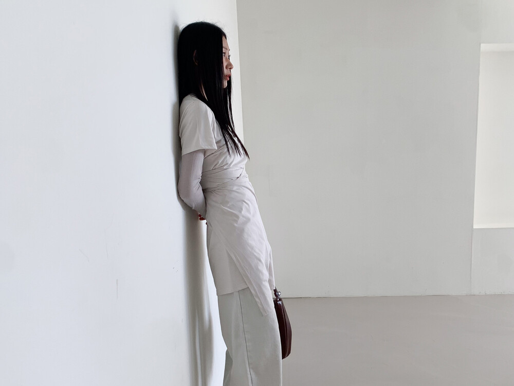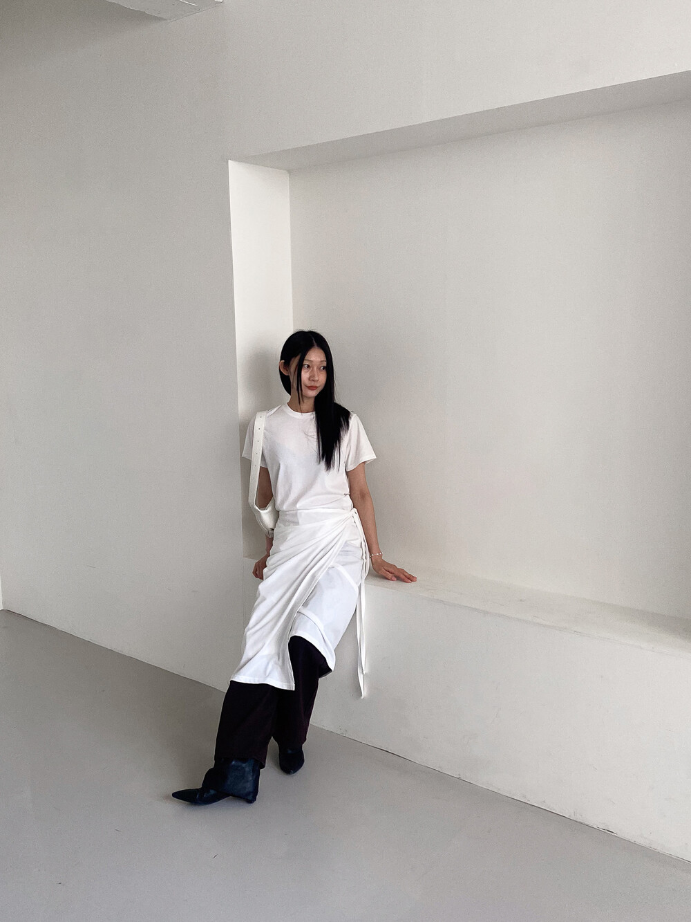 몸에 너무 달라붙지 않아 적당히 슬림한 실루엣이 돋보이며