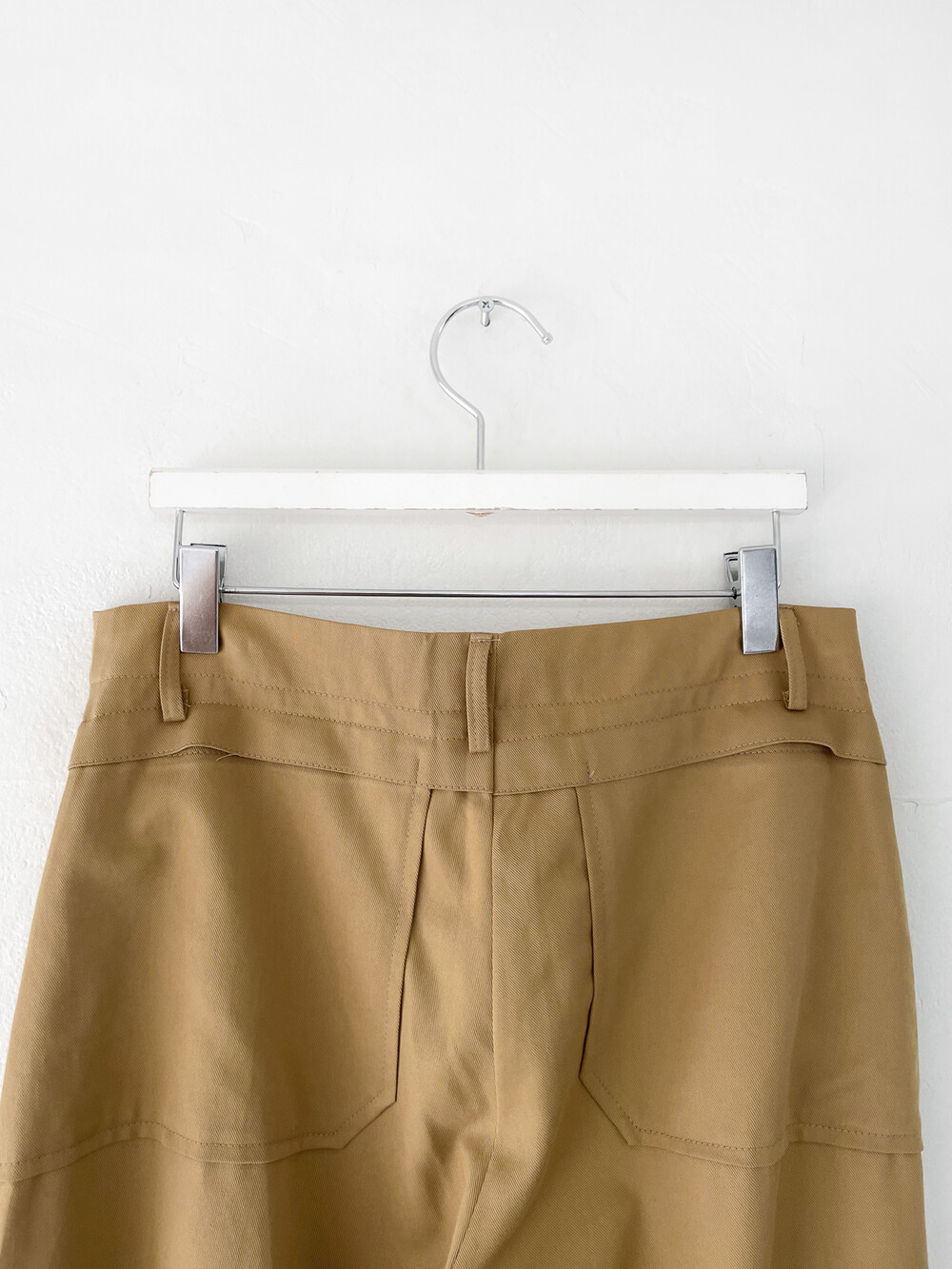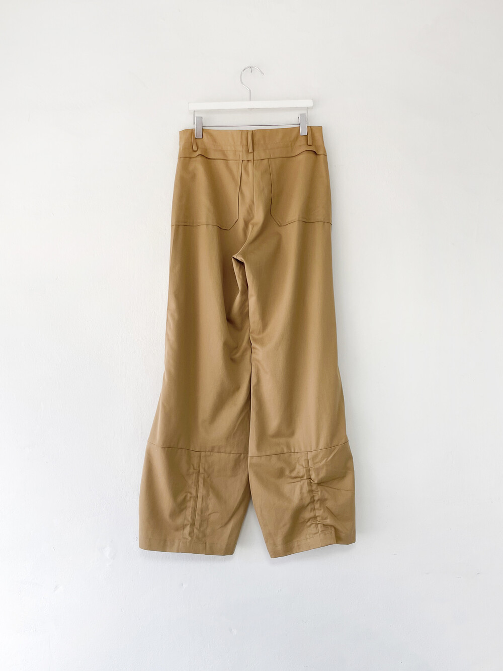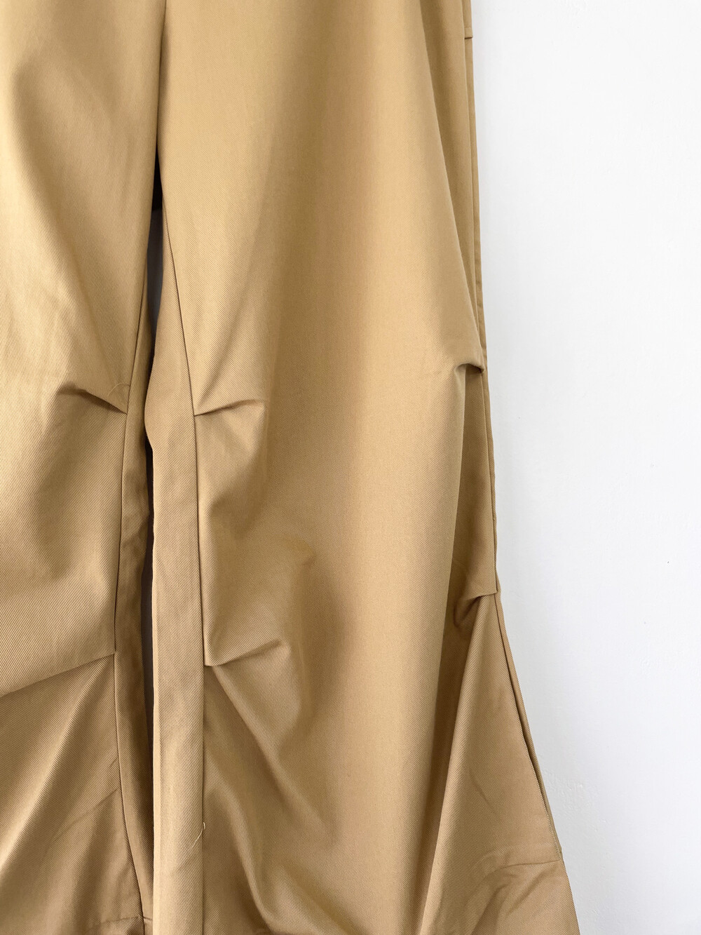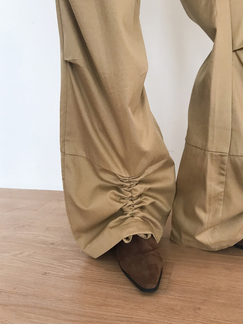 플레어드하게 퍼지는 팬츠 사이드라인에 턱도 잡혀 있어