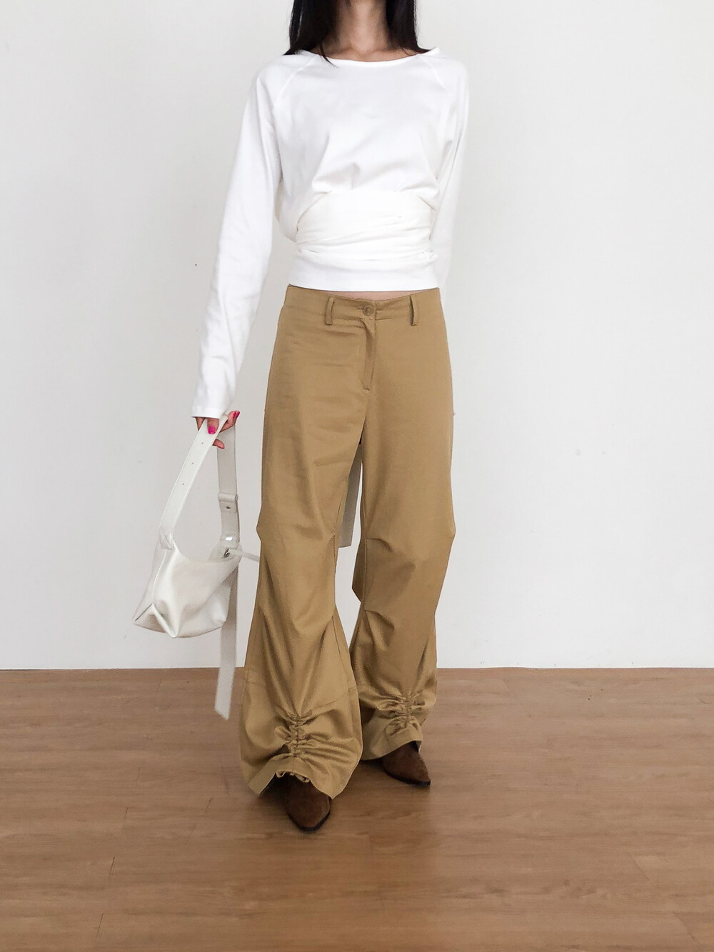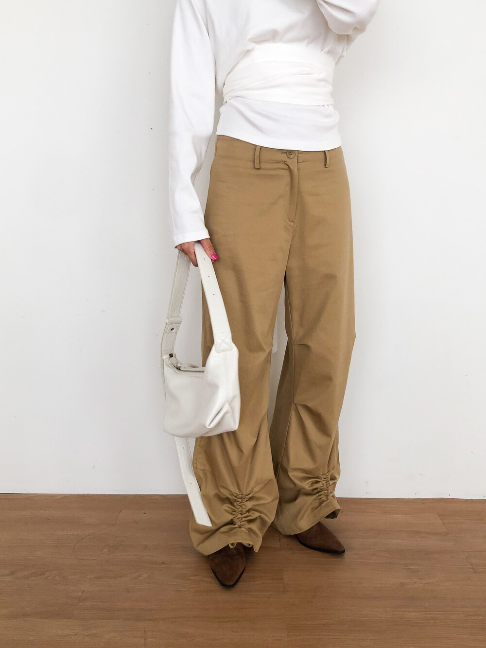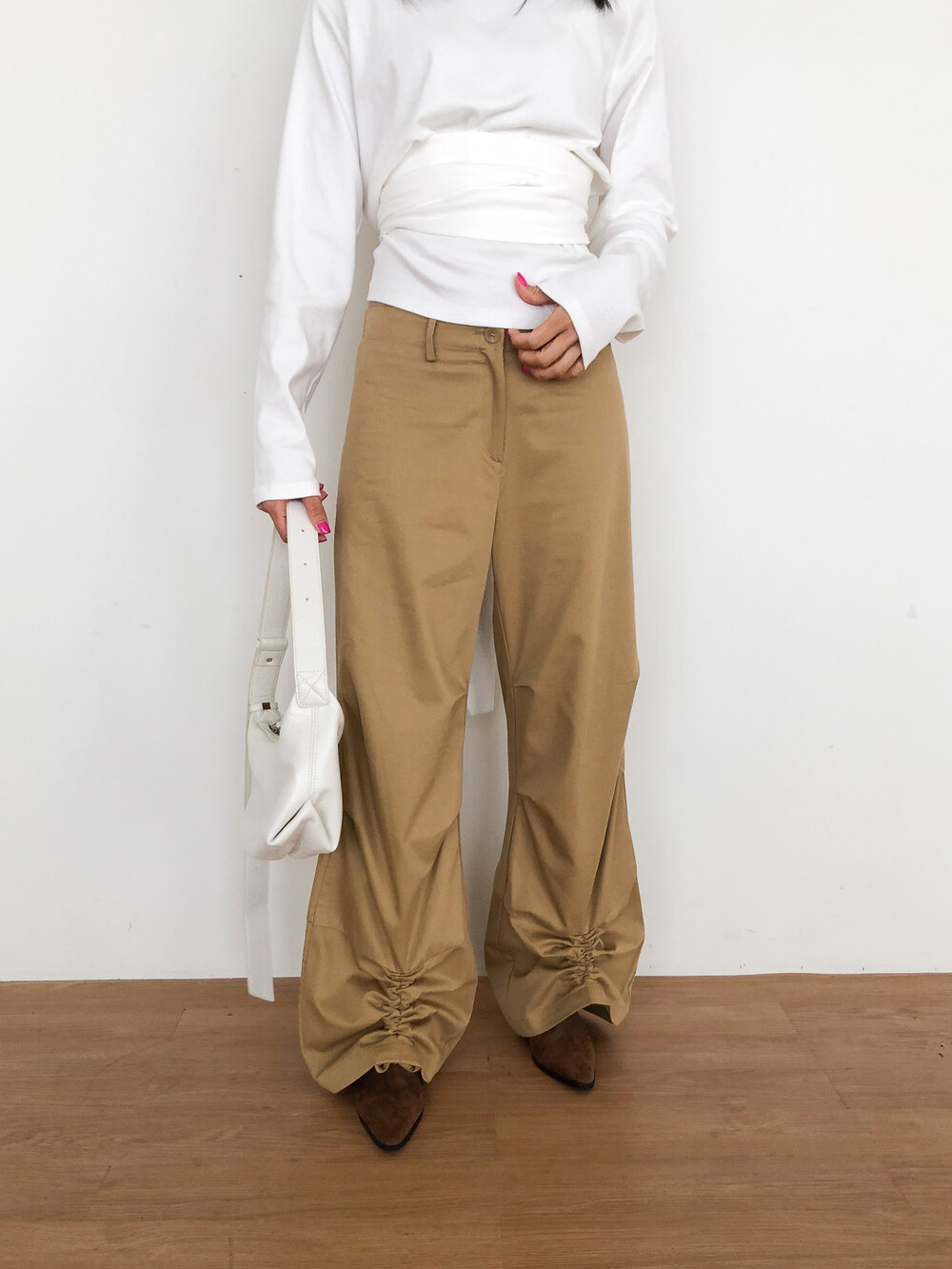 밑단 스트링 포인트 팬츠