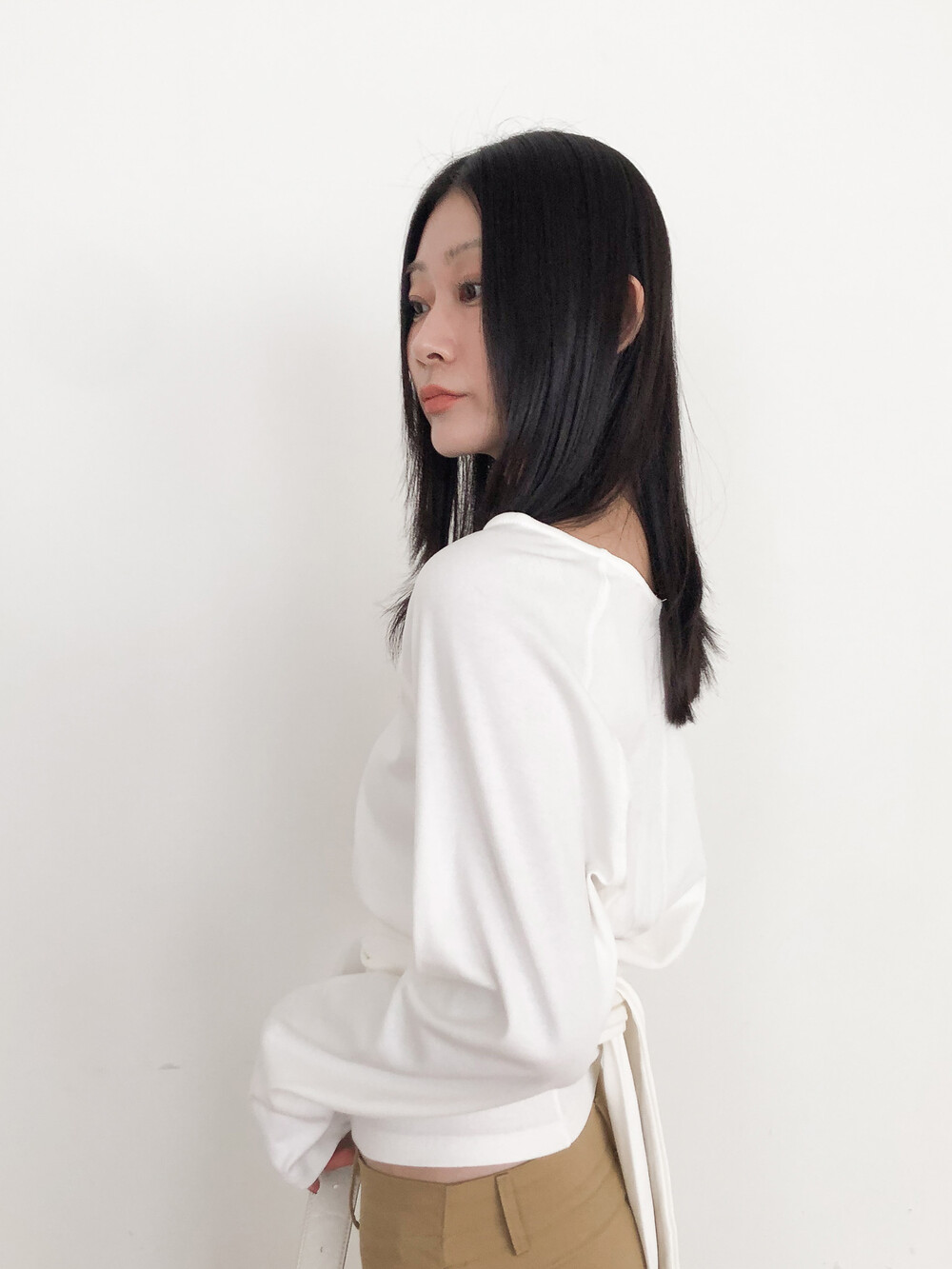 중간 정도의 두께의 흐르는 텐션의 소재를 셀렉해