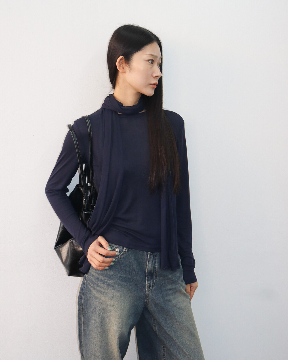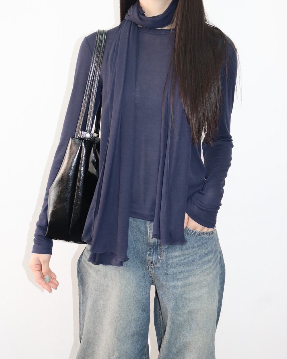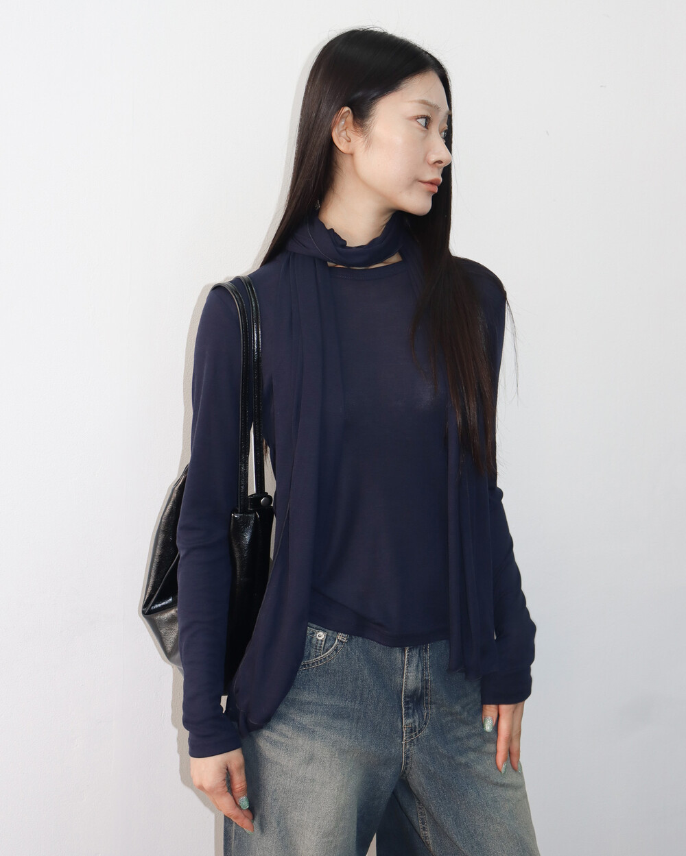 스카프를 더해 다양한 포밍이 가능해 입는 재미가 있는 제품