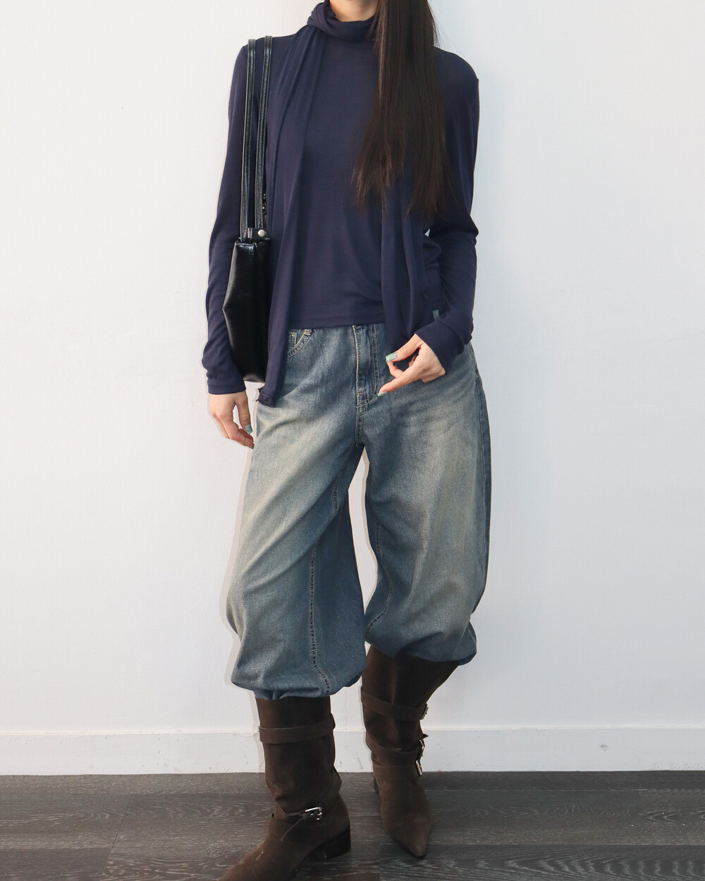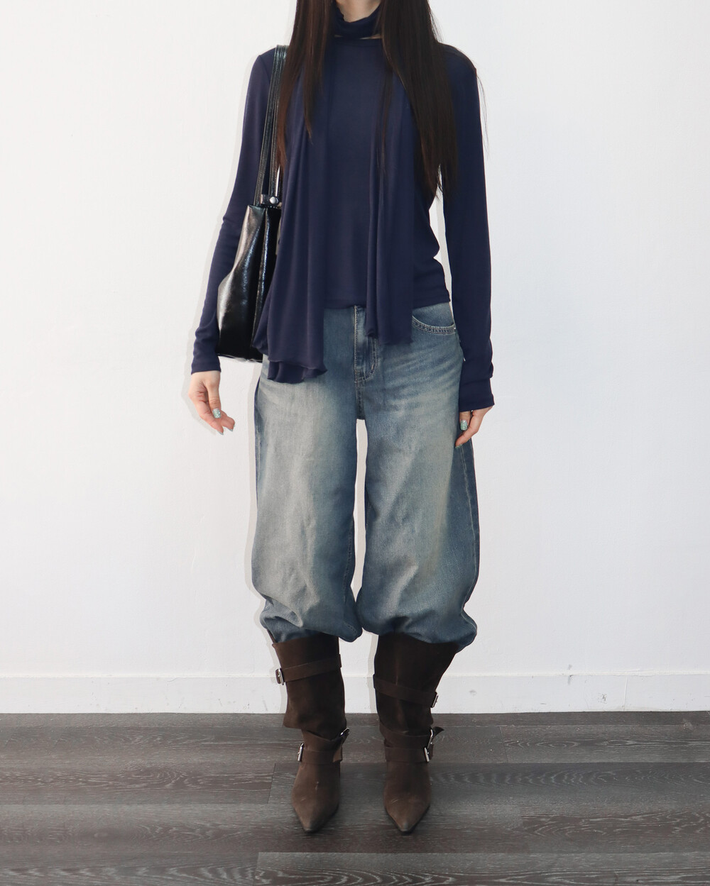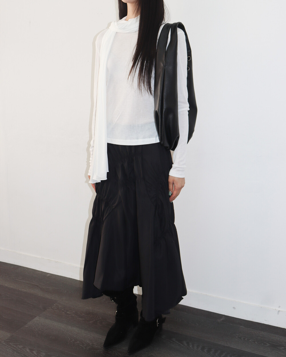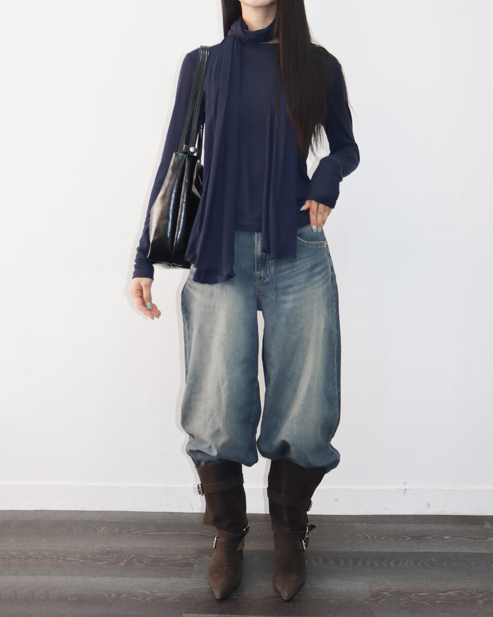 스카프를 더해 다양한 포밍이 가능해 입는 재미가 있는 제품