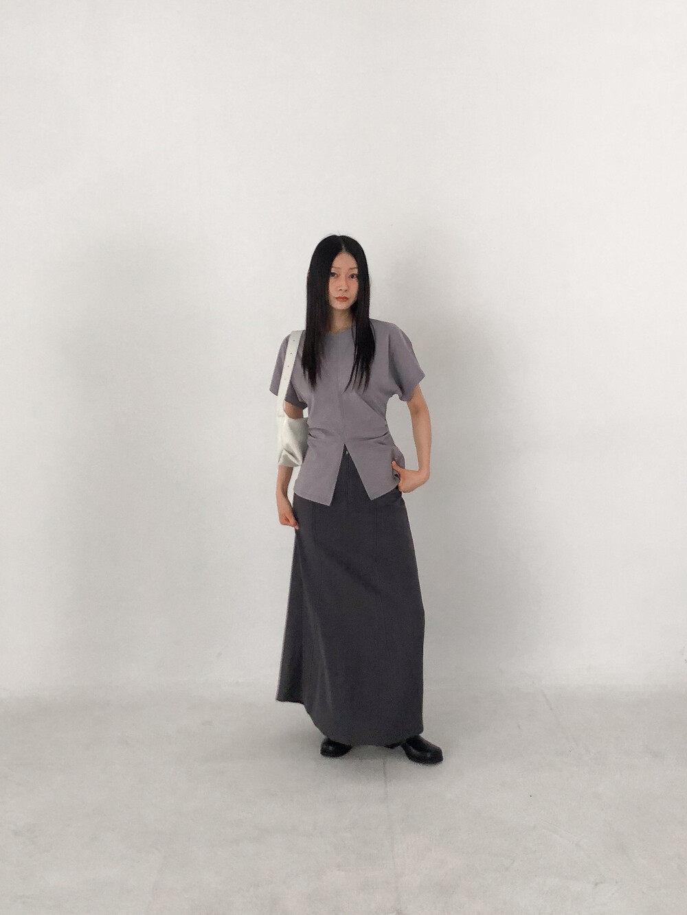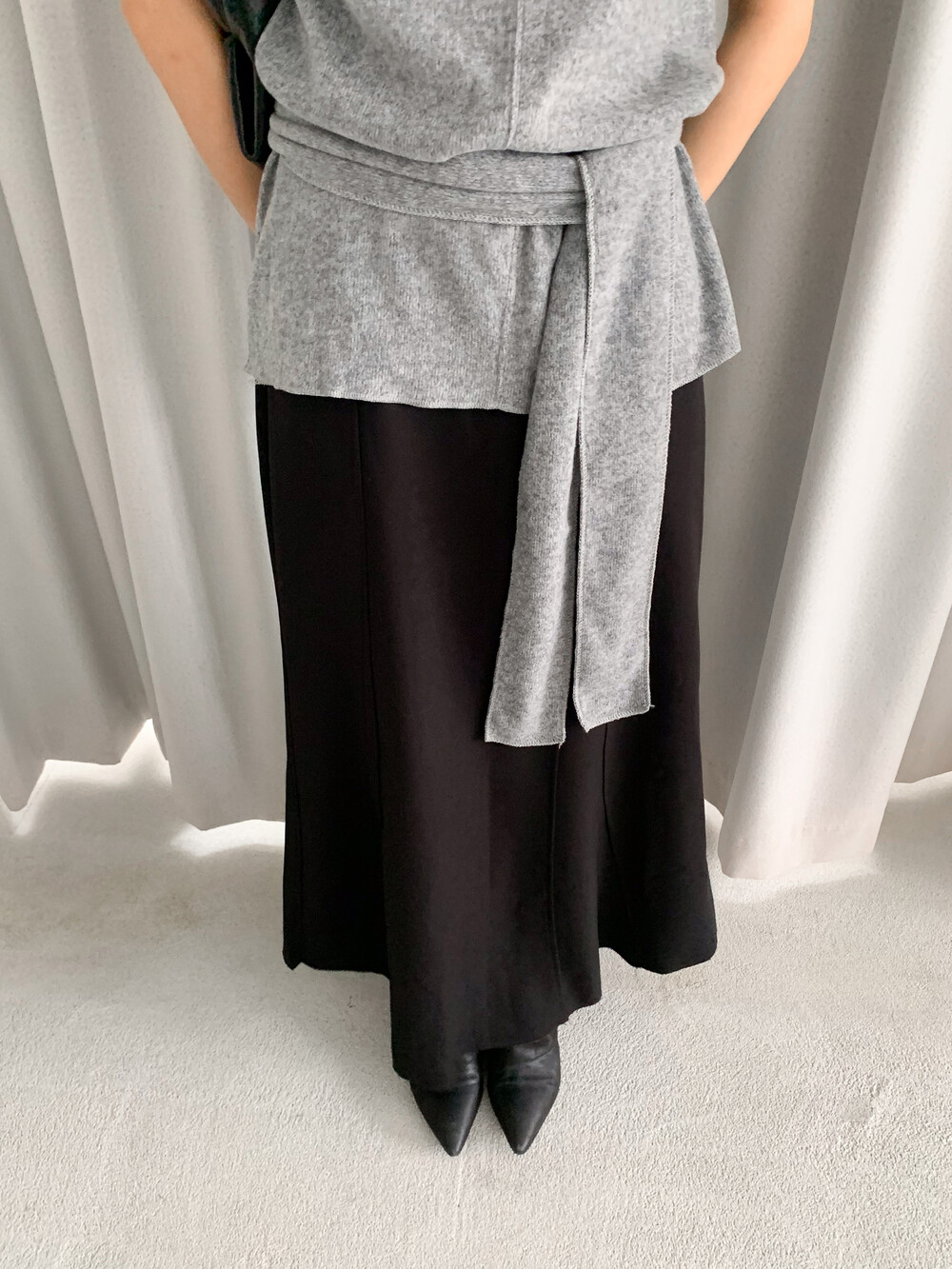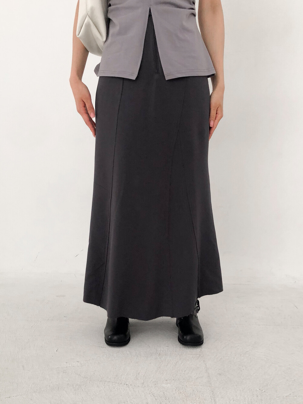 롱한 기장함에 트렌디 무드를 더해준 스커트로,