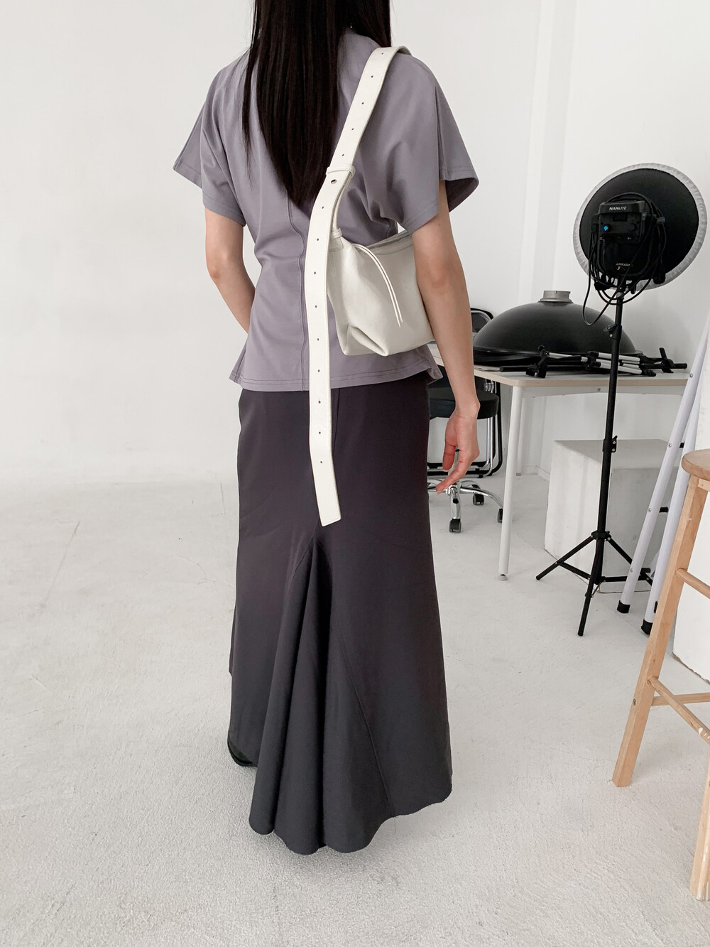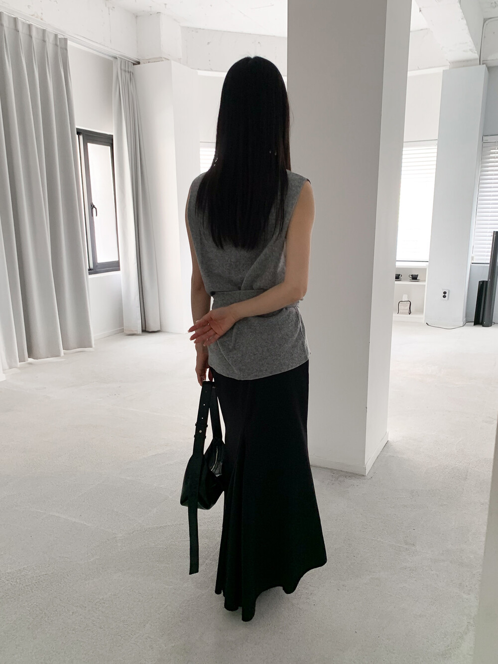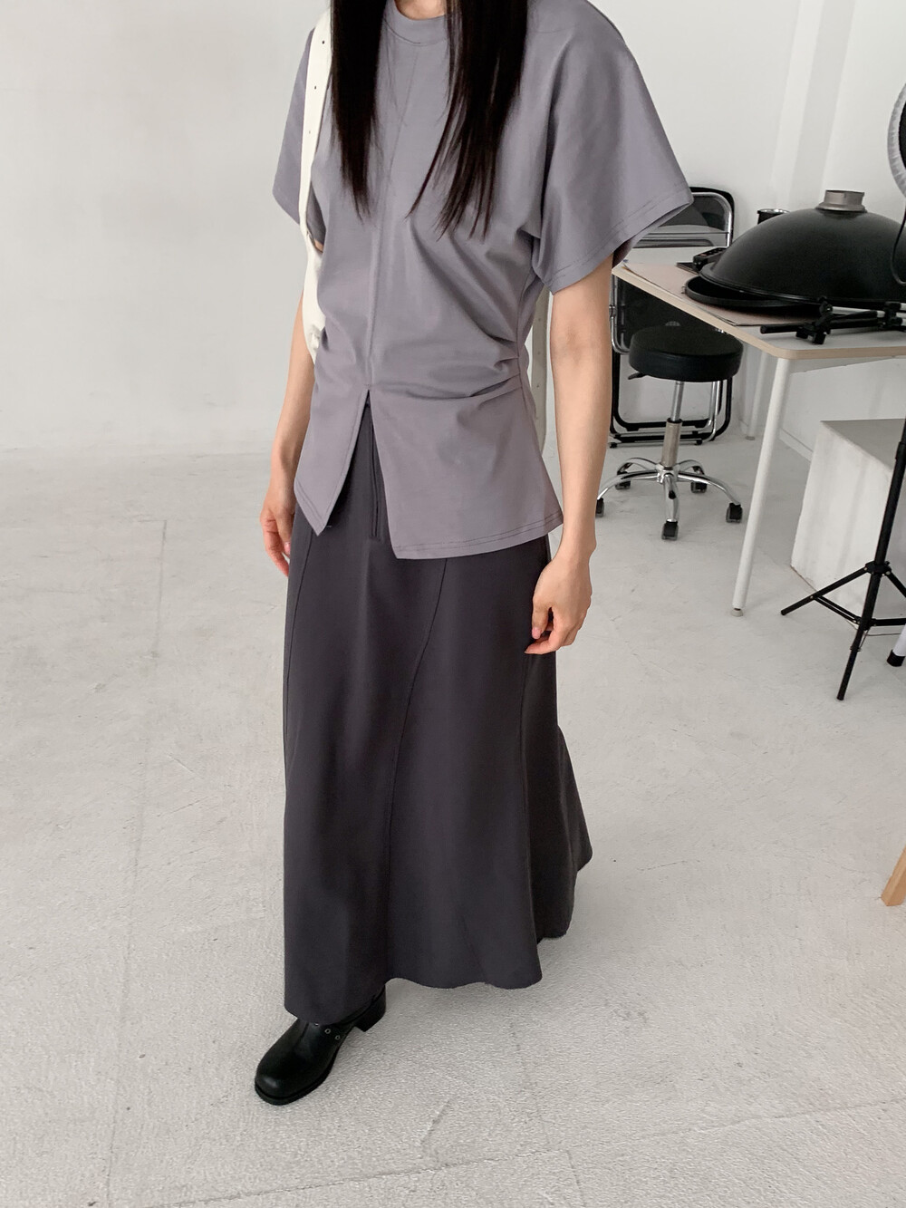 롱한 기장함에 트렌디 무드를 더해준 스커트로,