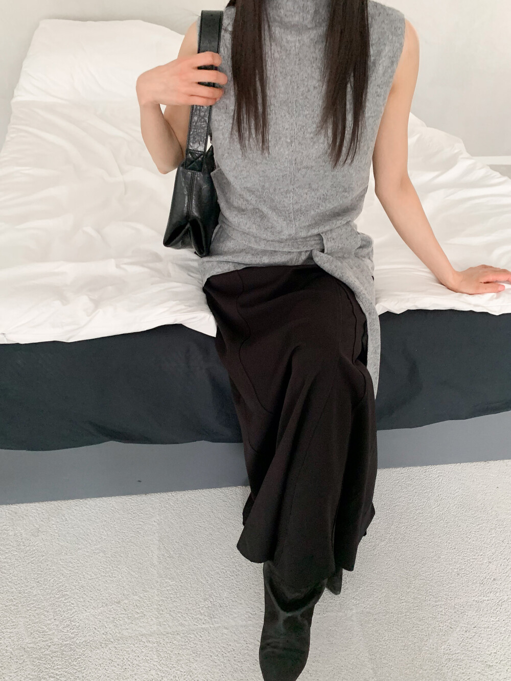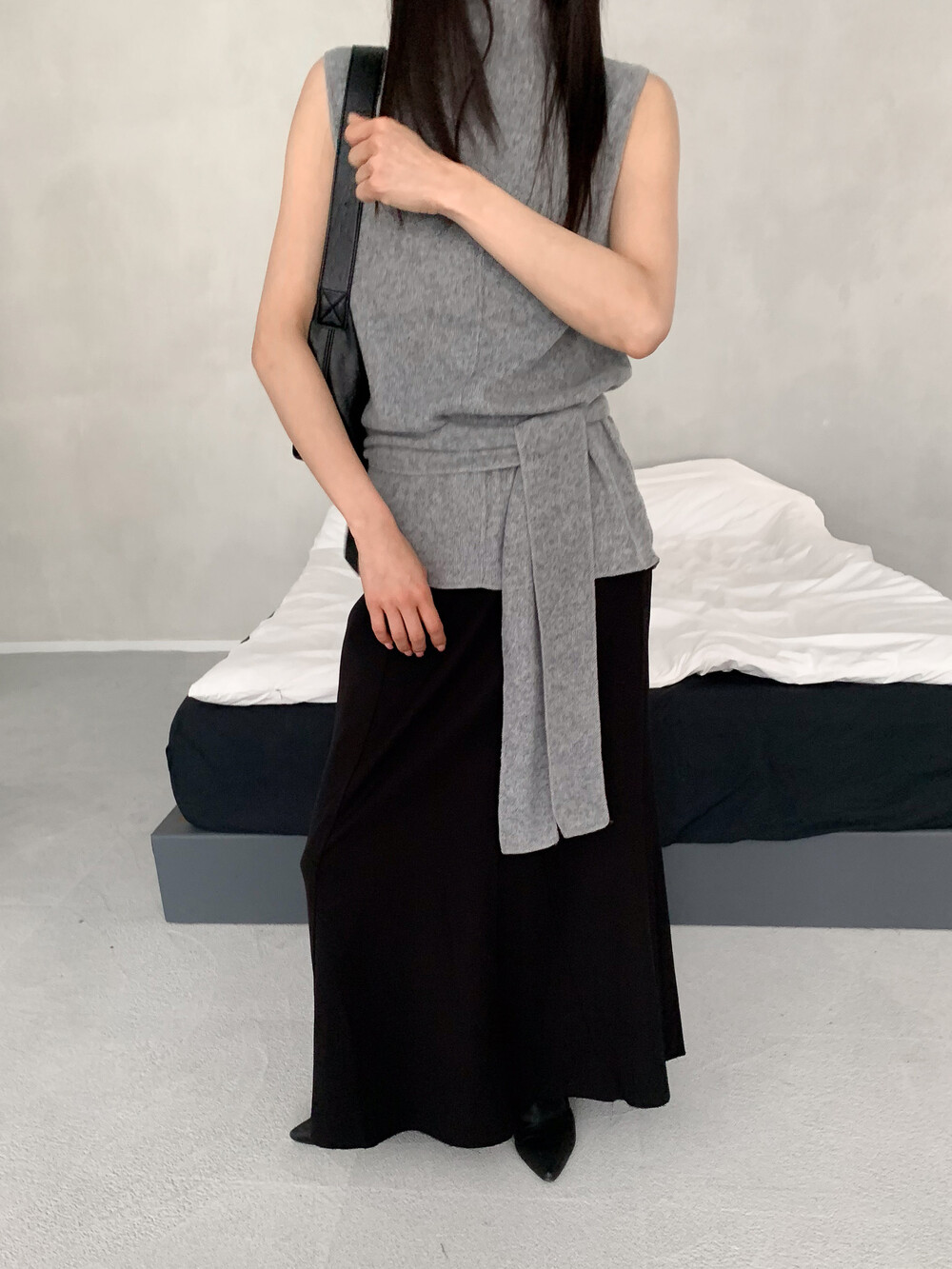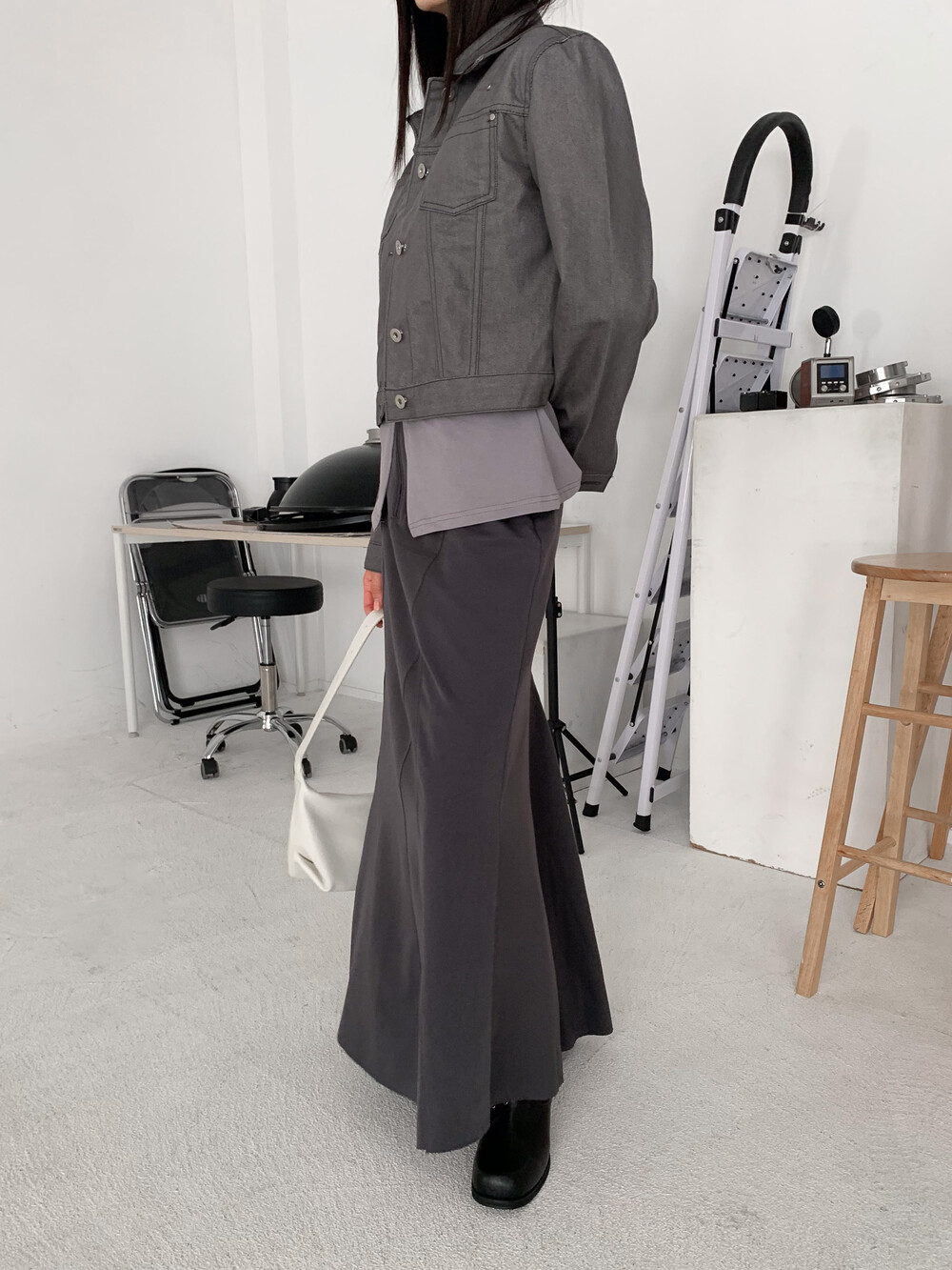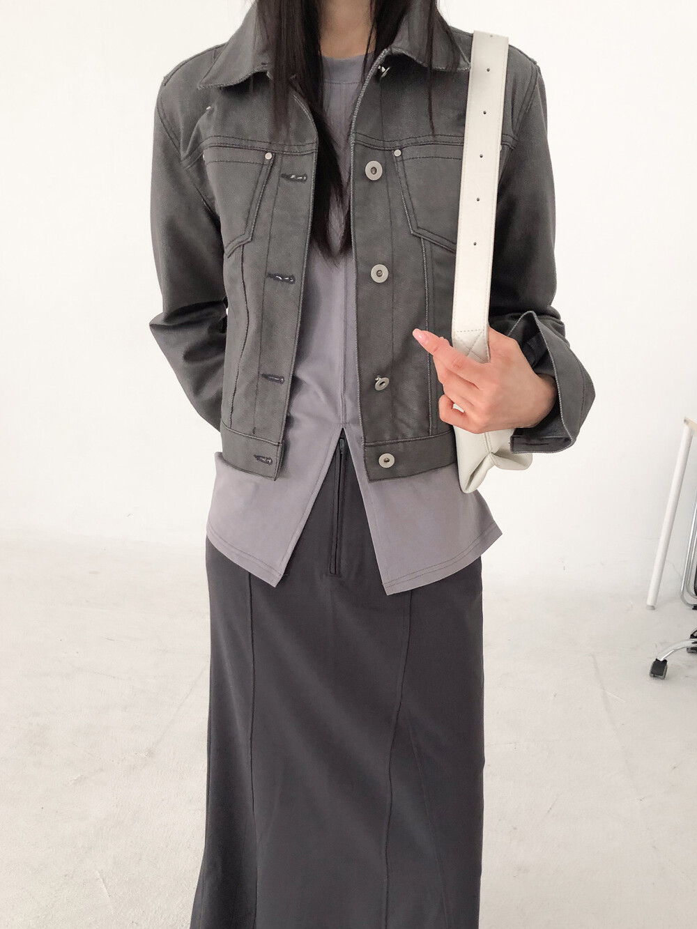 밑단의 기장이 다른 언발 디테일로 유니크한 멋스러움까지 ...
