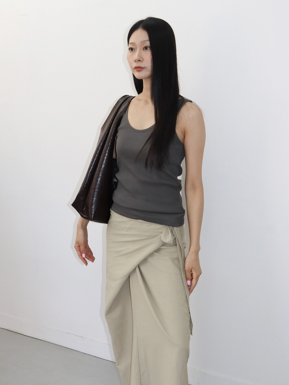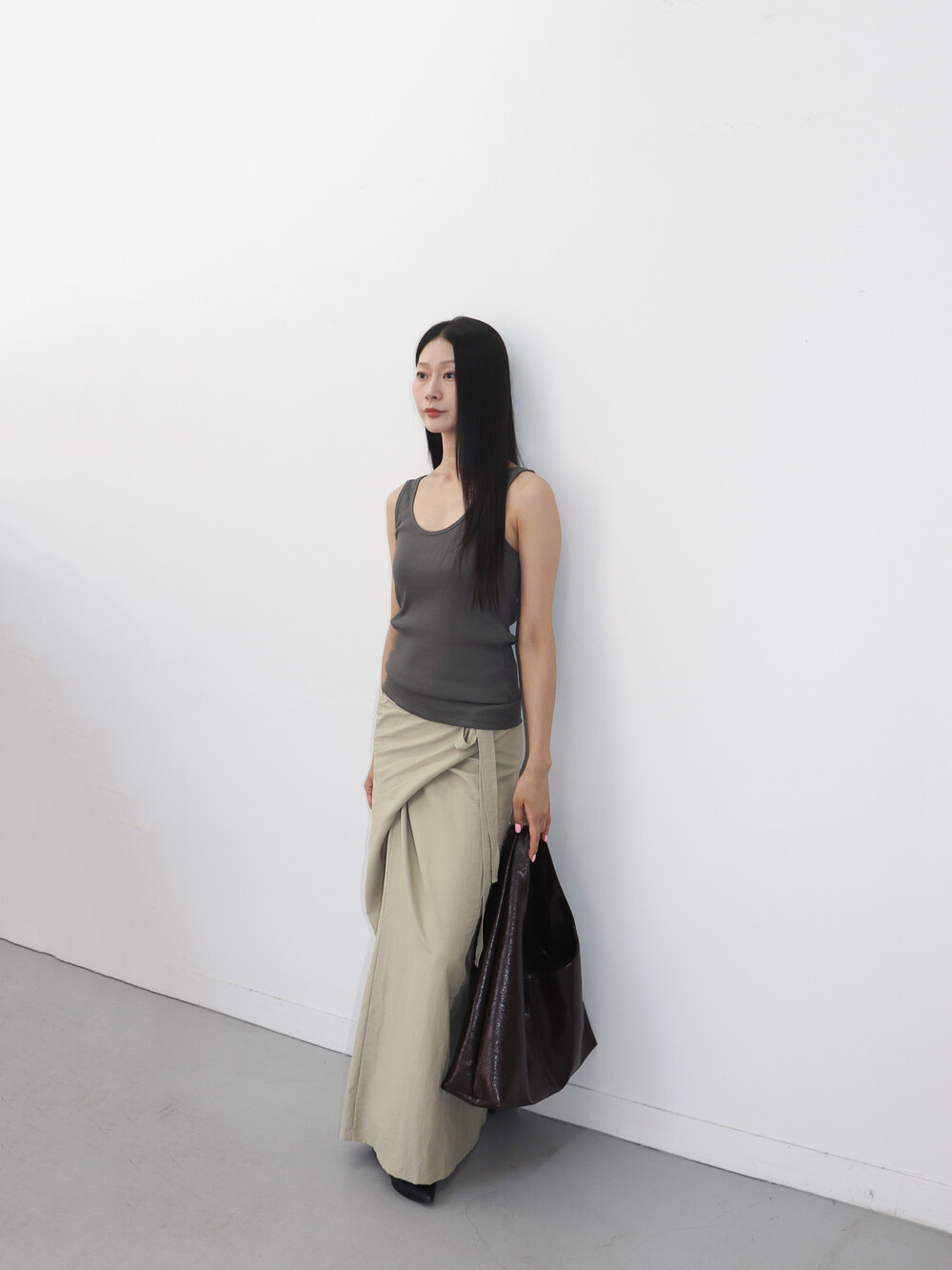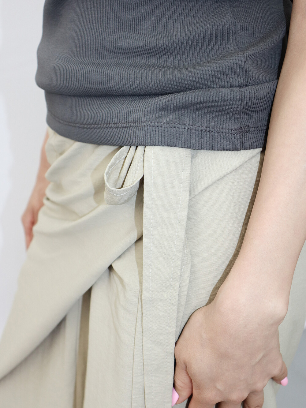 웨이스트 라인에 스트랩을 두르면 맥시스커트로도 !