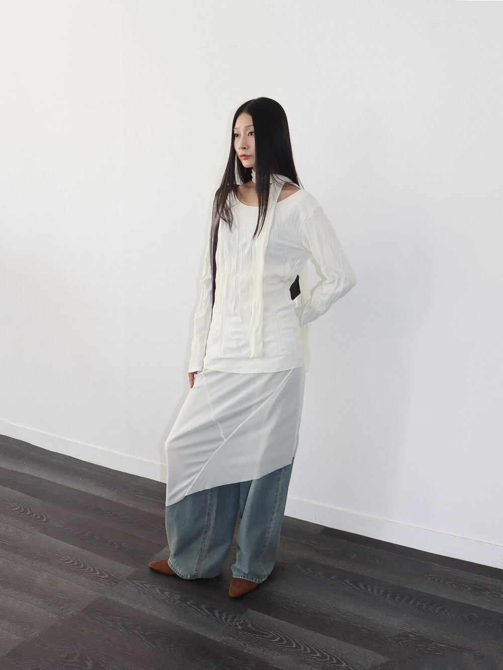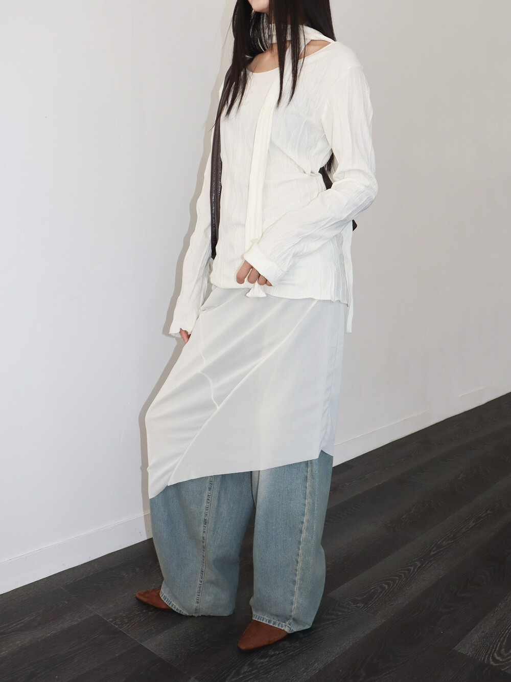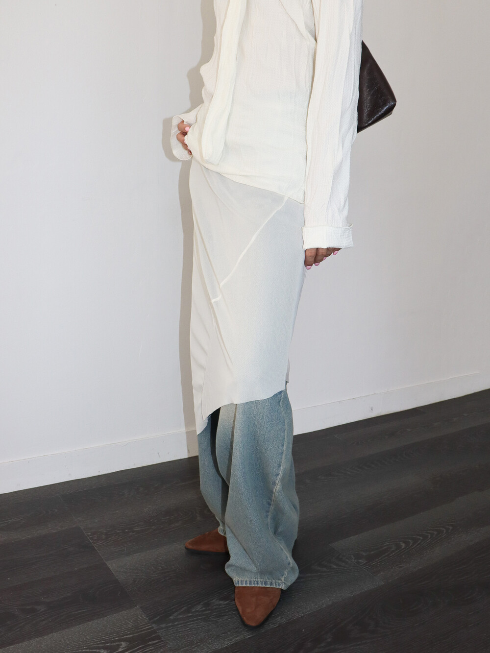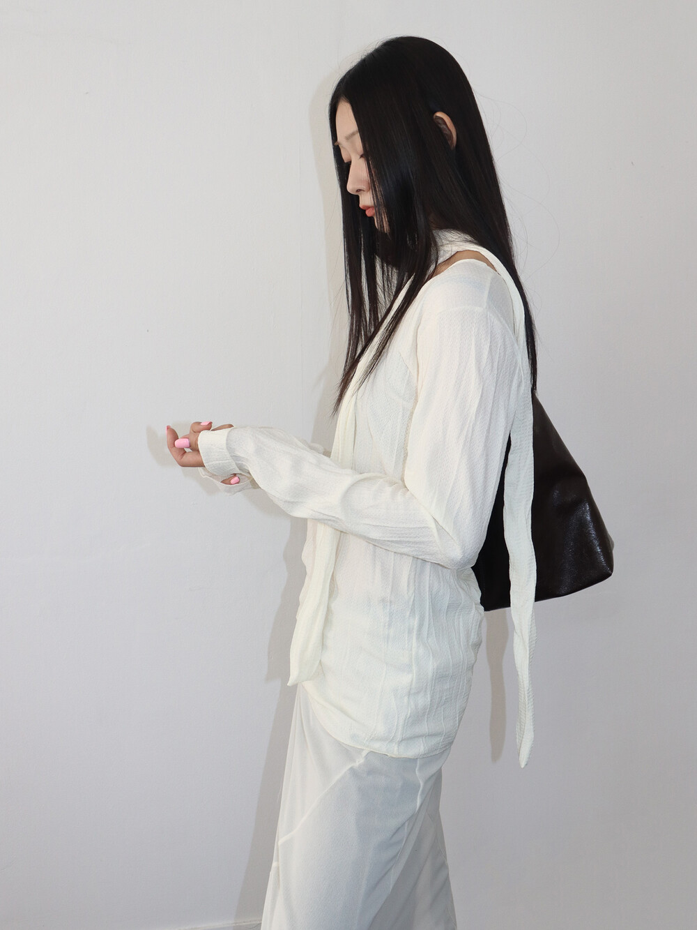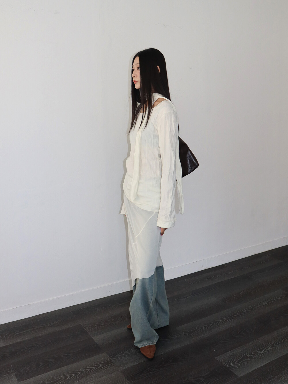 시어한 소재감을 통해 비쳐지는 오묘한 실루엣,