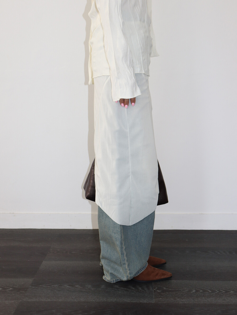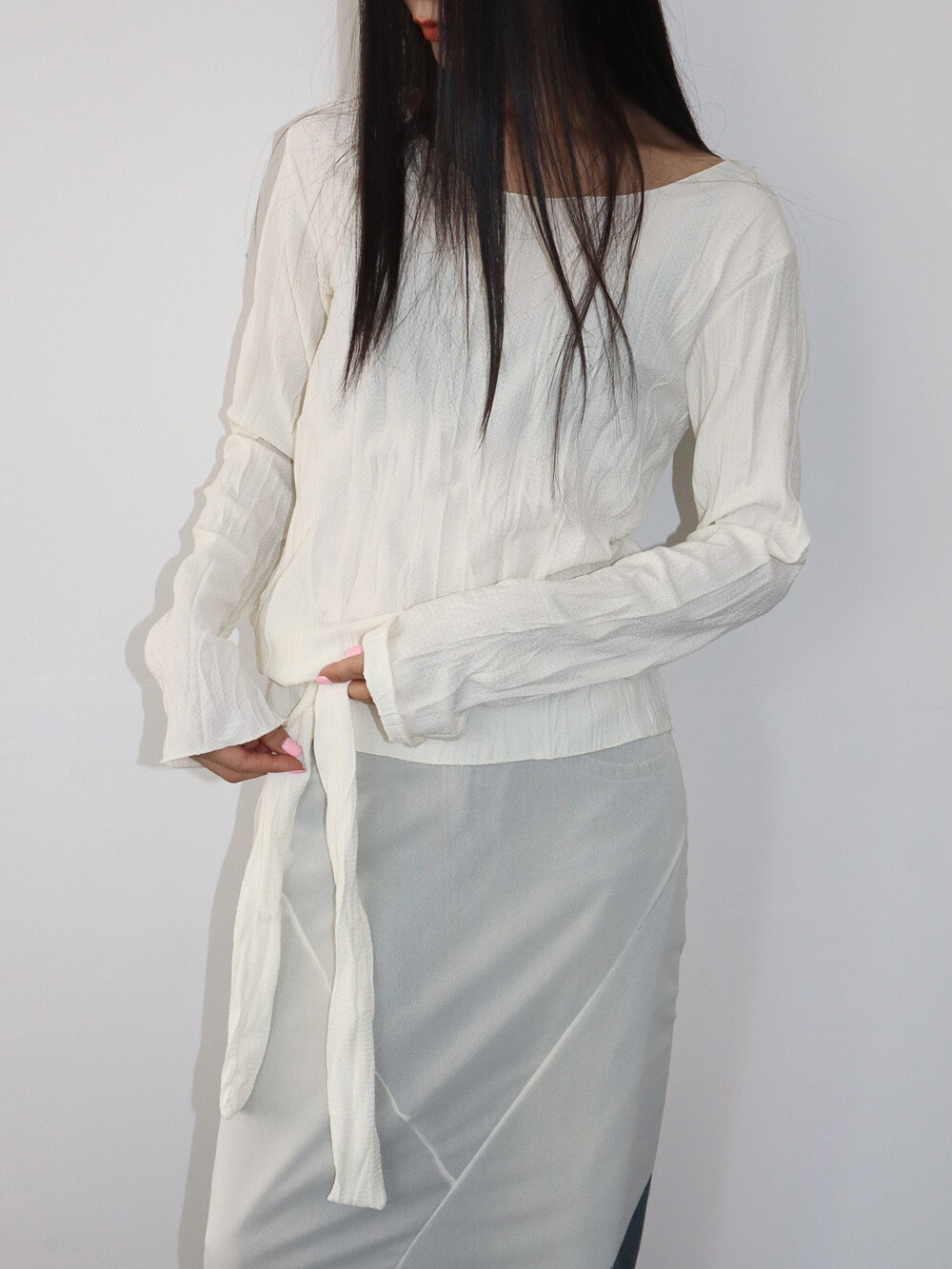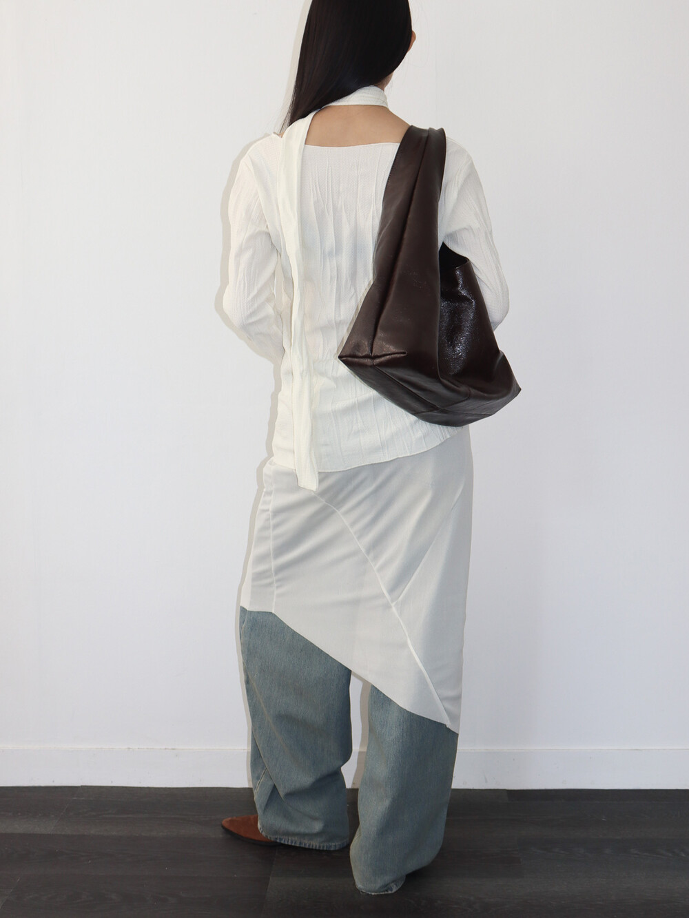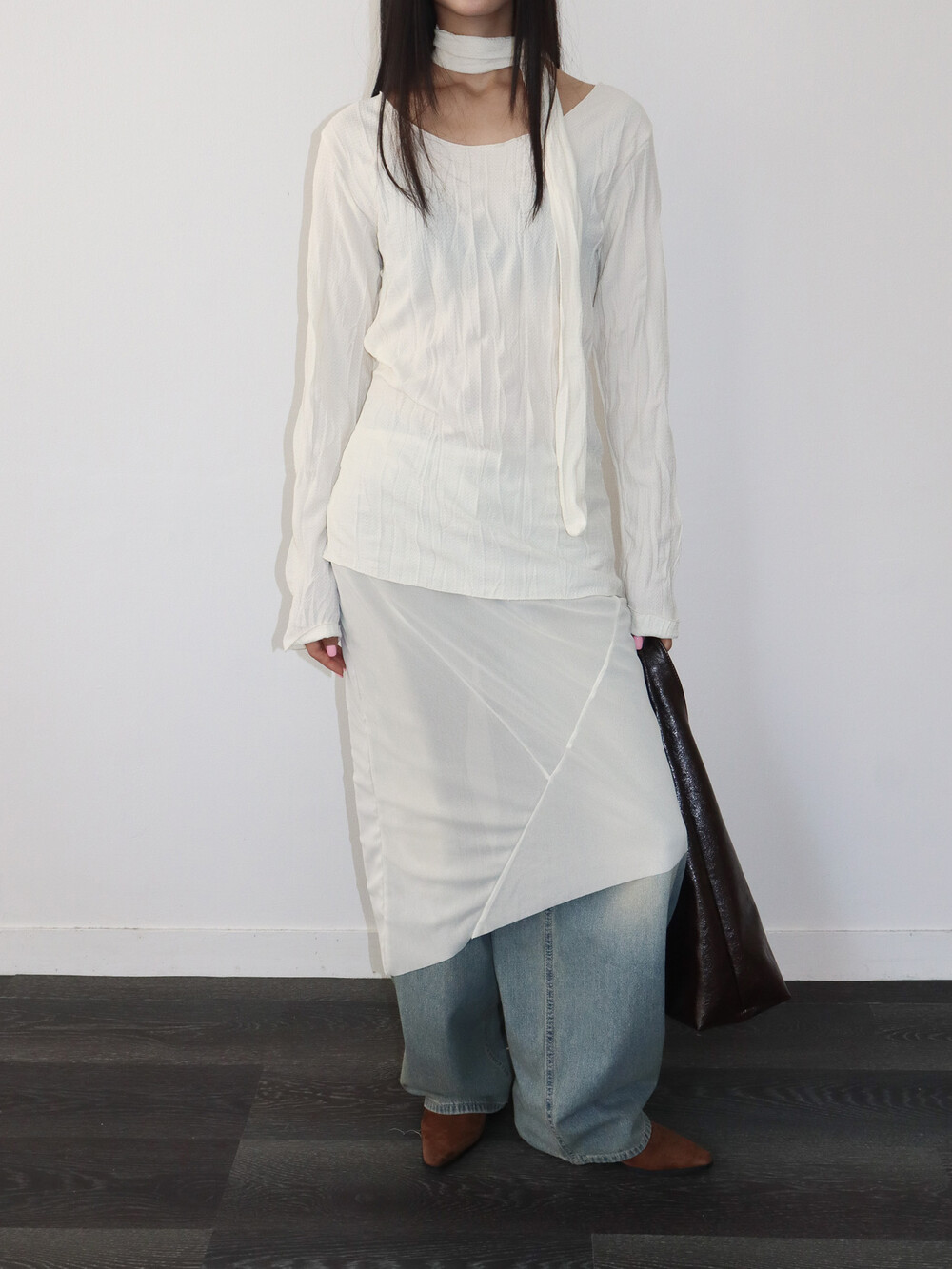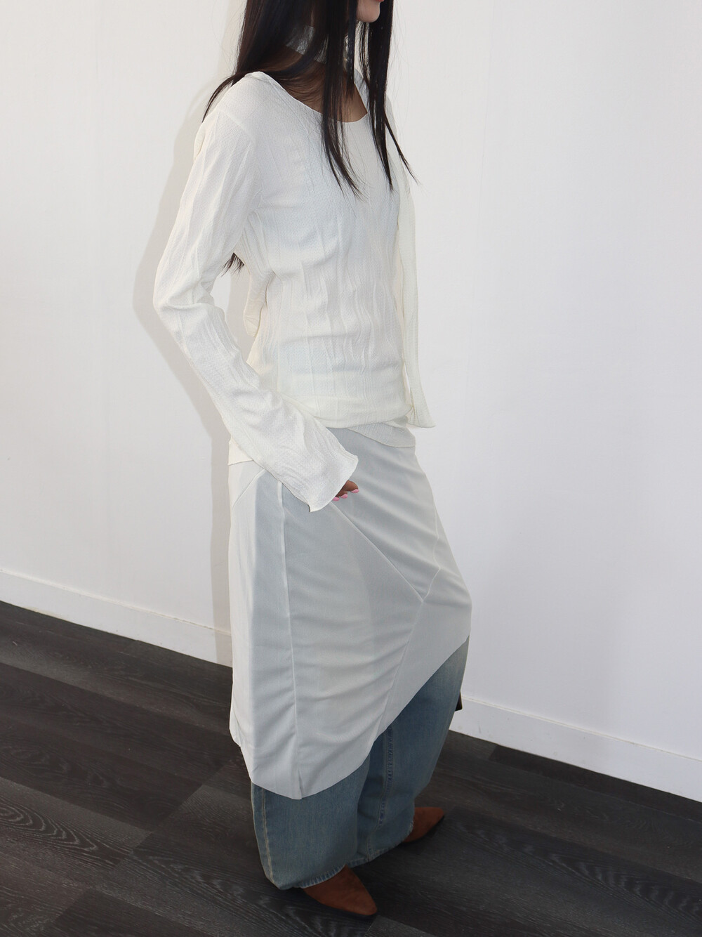 시어한 소재감을 통해 비쳐지는 오묘한 실루엣,