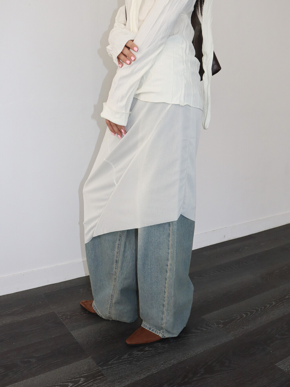 적당한 기장감, 밑단 사선 커팅 및 절개 디테일이