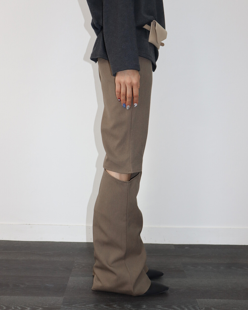 사이드 컷 아웃 디테일이 매력적인 부츠컷 팬츠