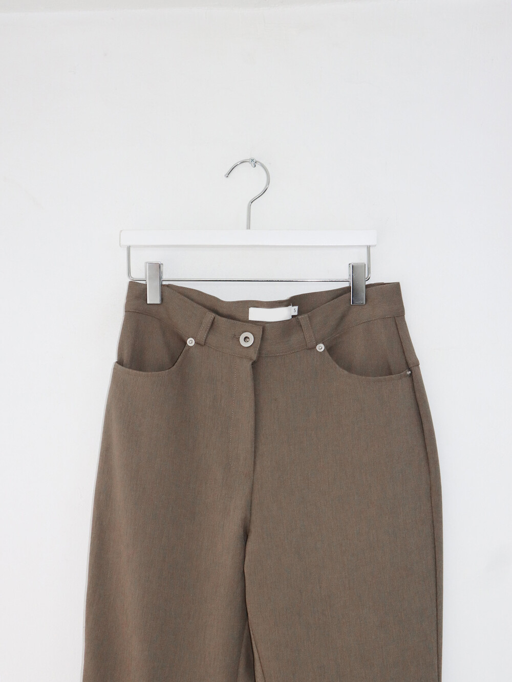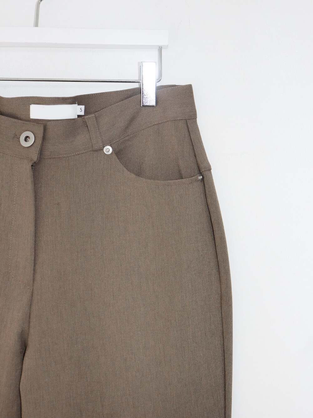 허리 심지가 탄탄하여 허리 라인을 힘 있게 잡아주는 똑똑한 팬츠