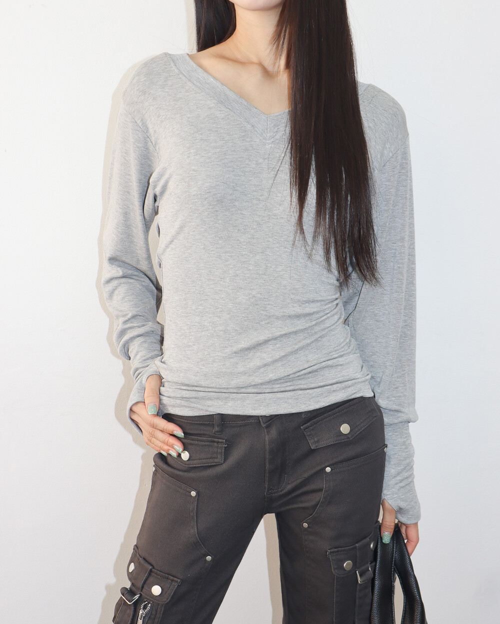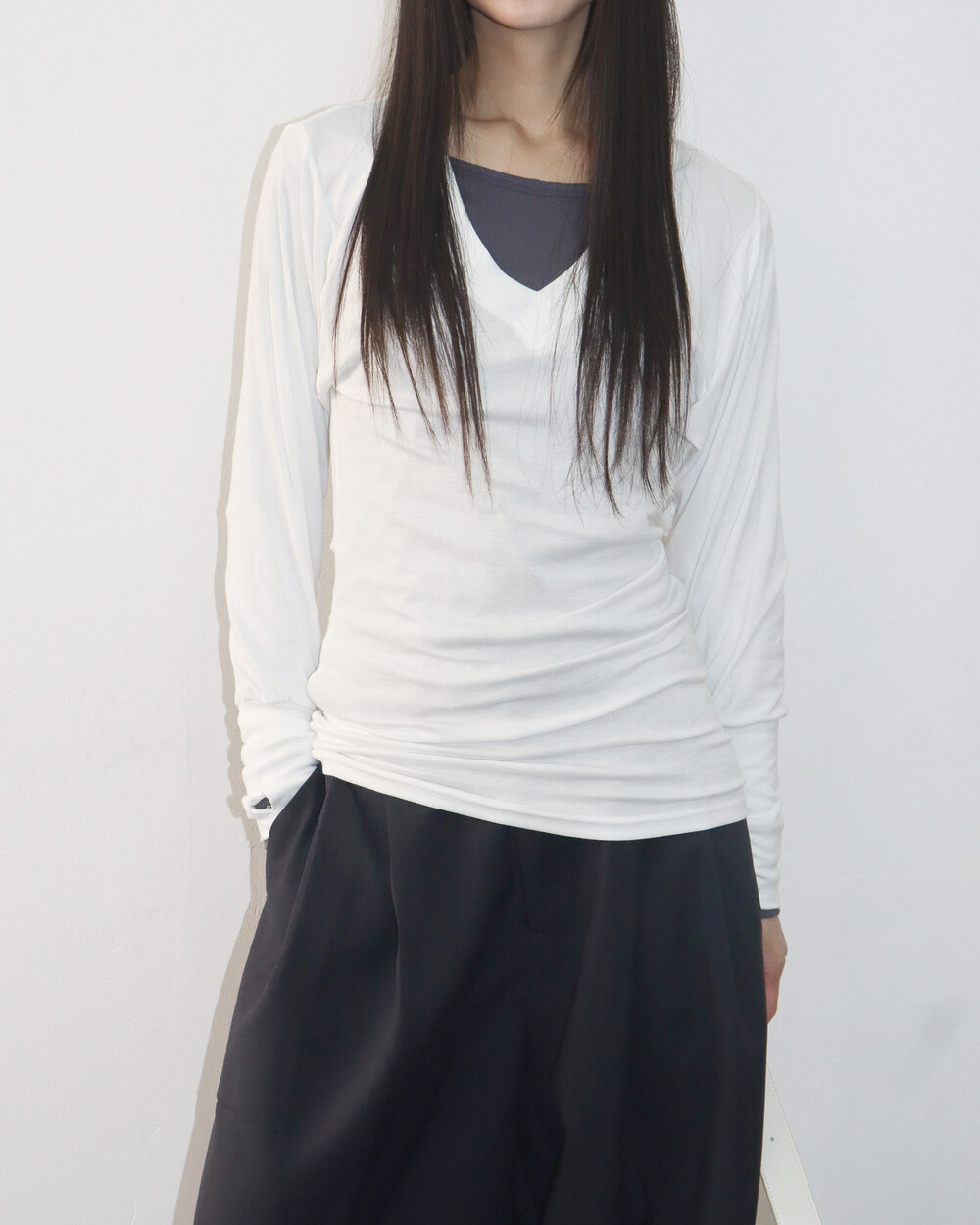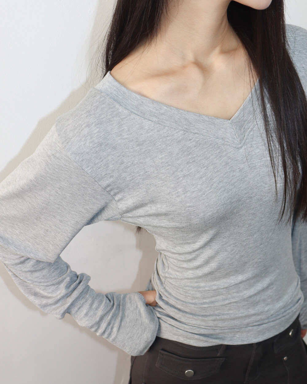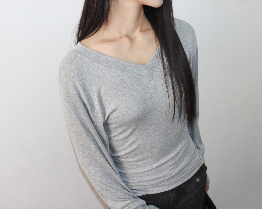 청초하면서도 부드러운 착용감의 V넥 탑