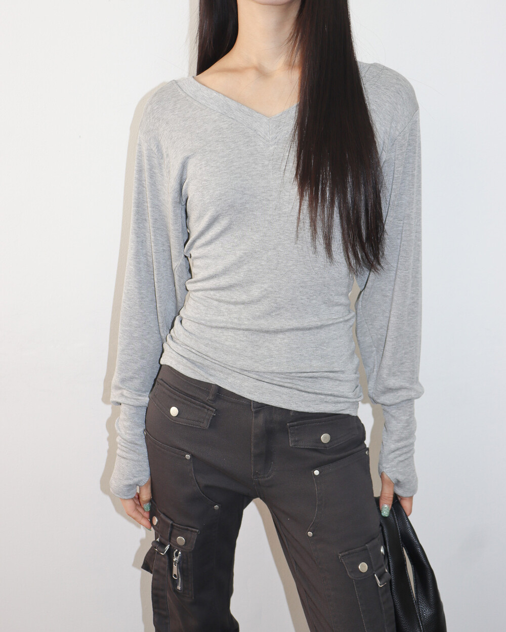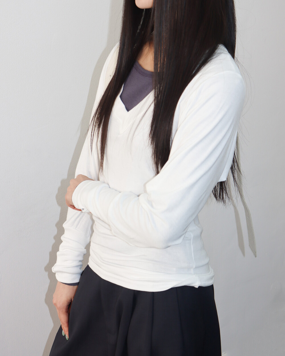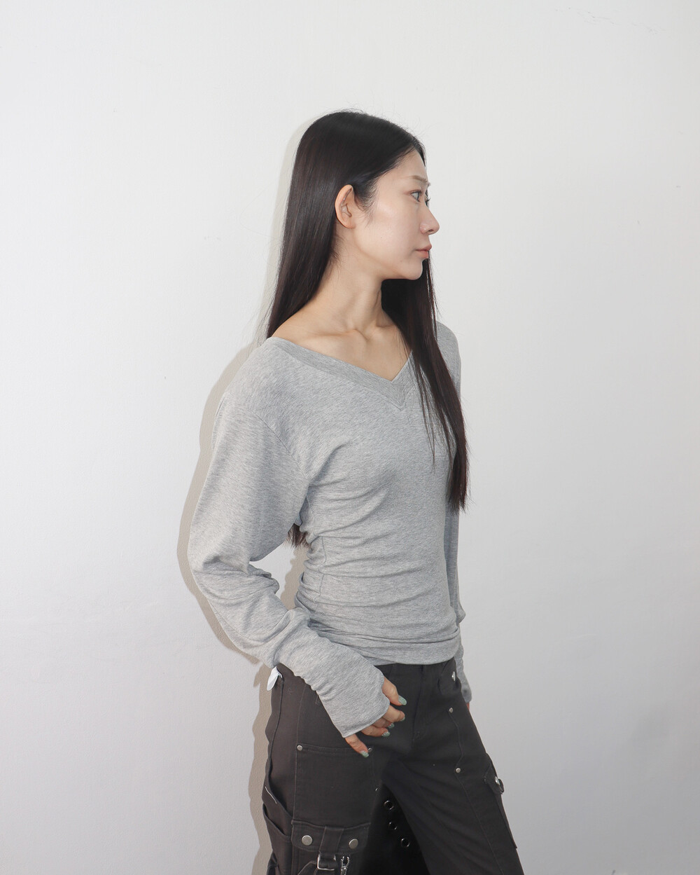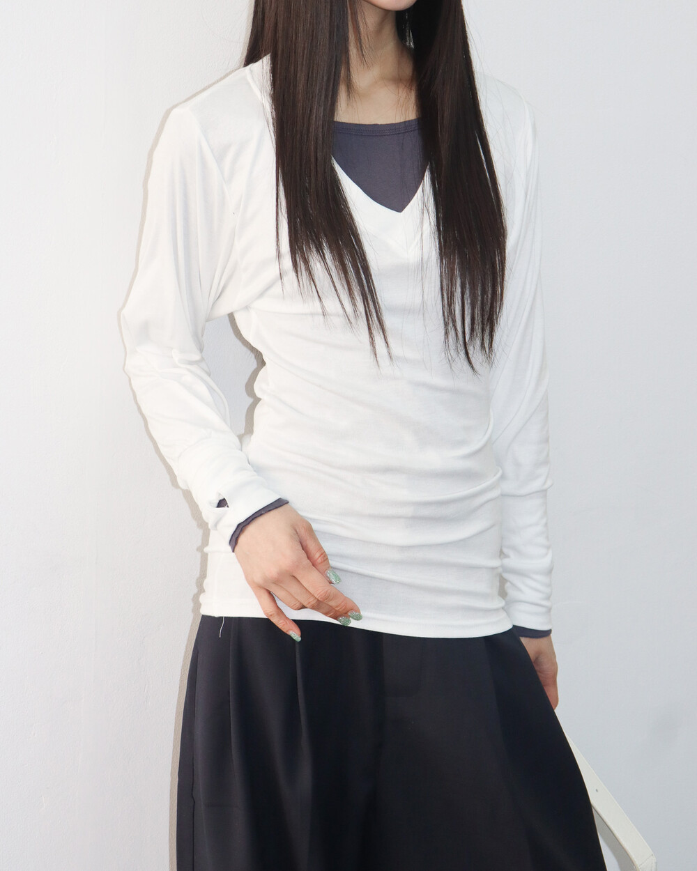 청초하면서도 부드러운 착용감의 V넥 탑