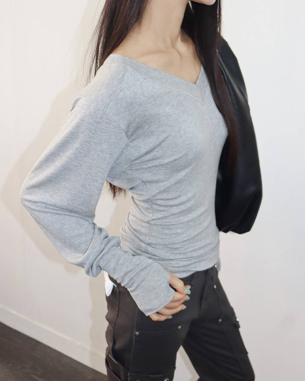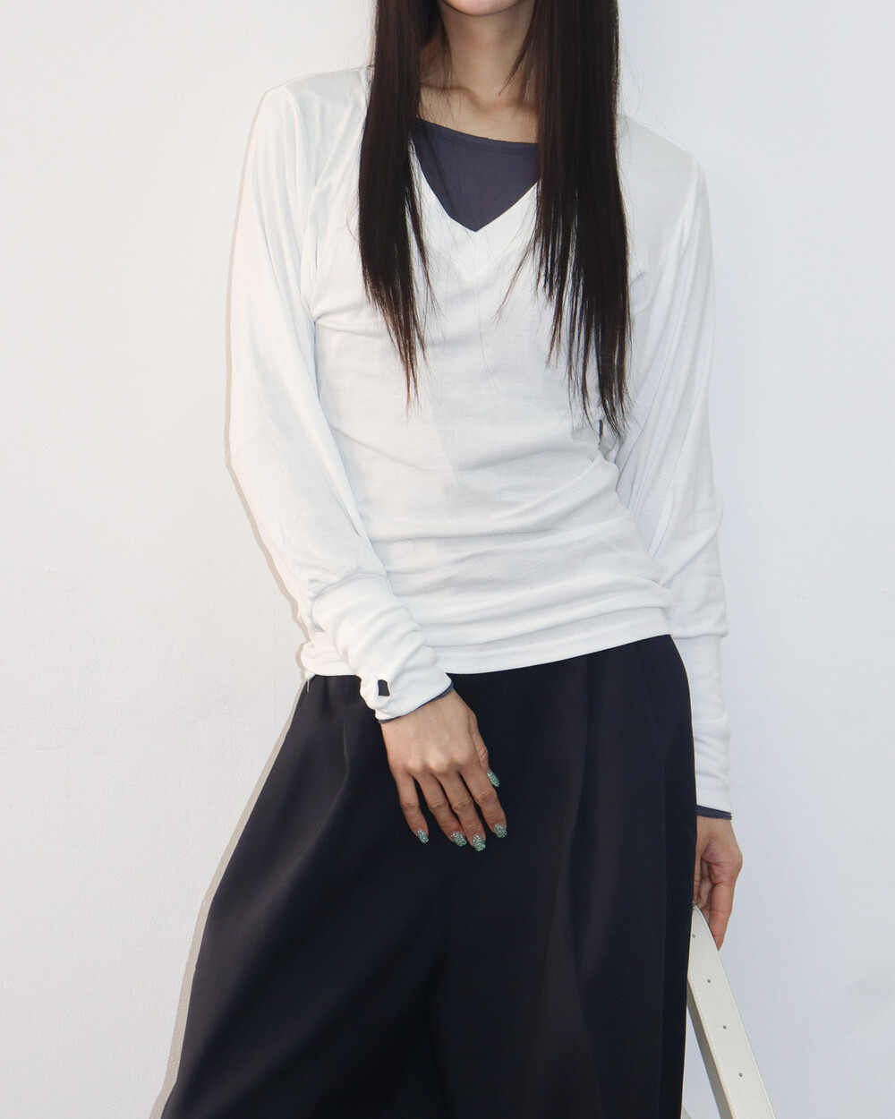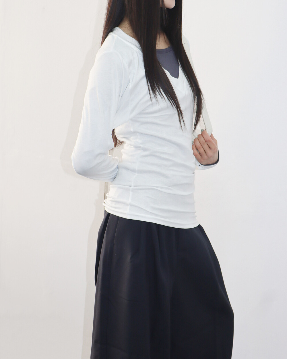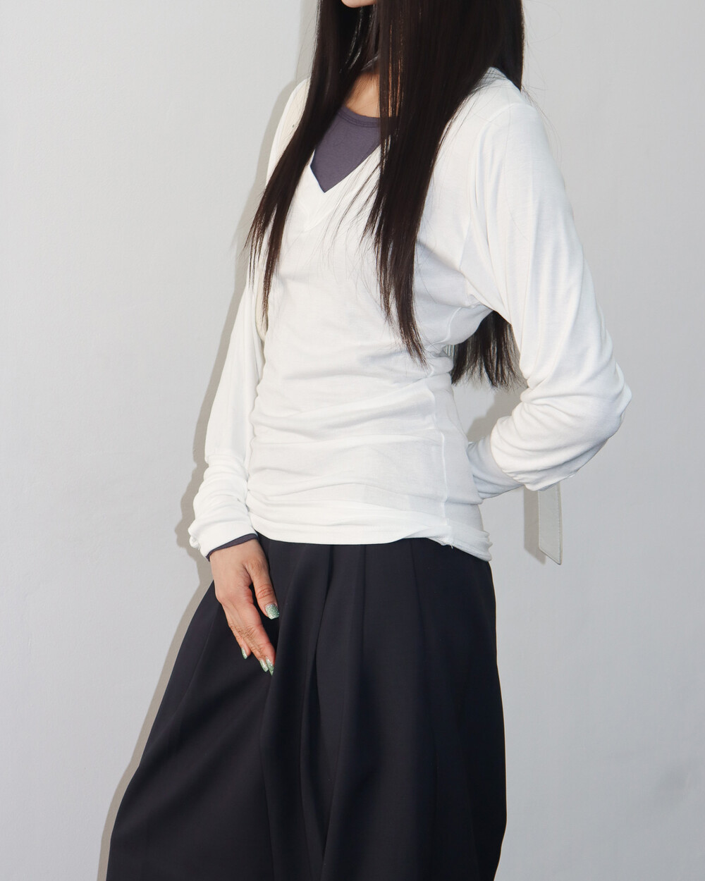 청초하면서도 부드러운 착용감의 V넥 탑