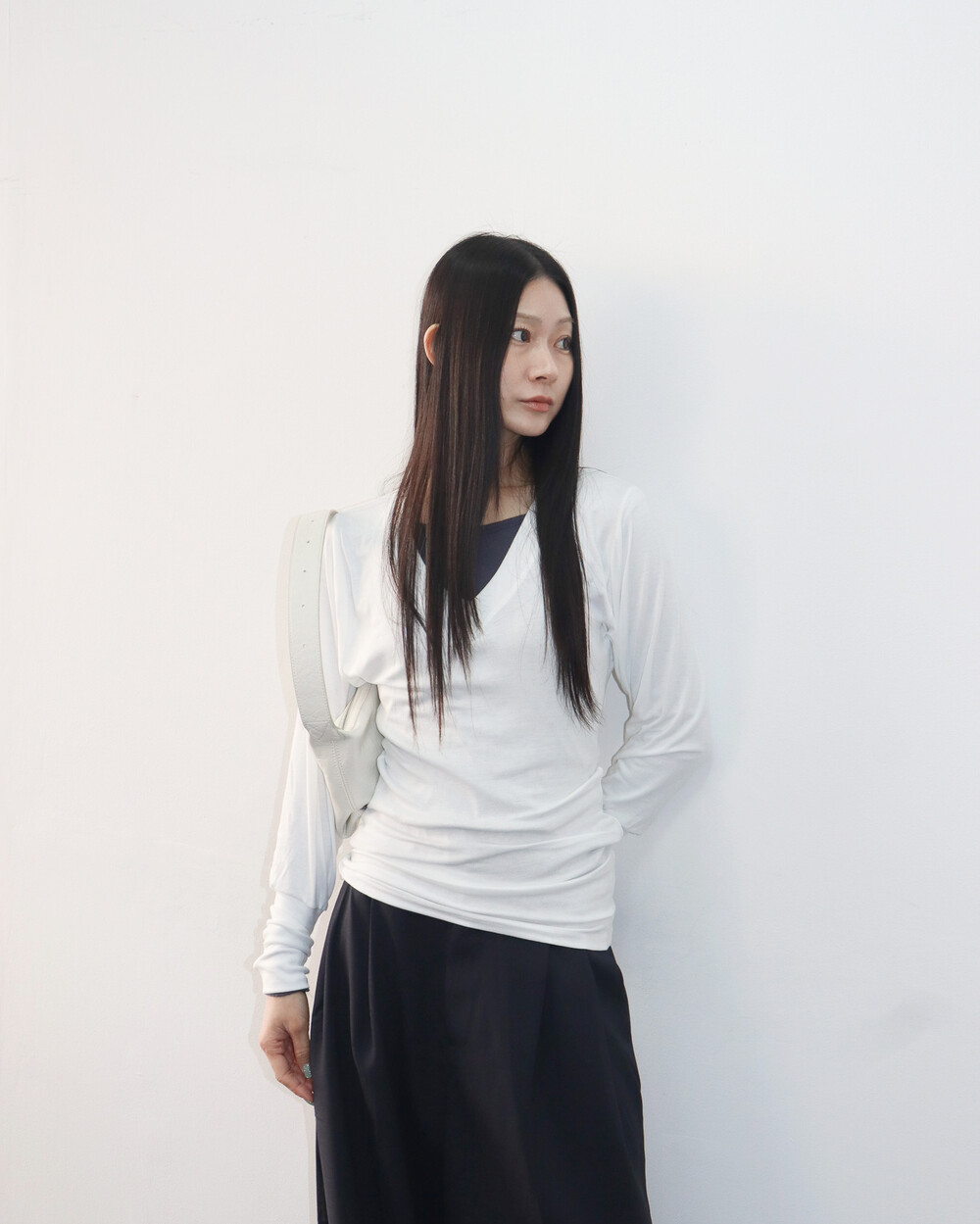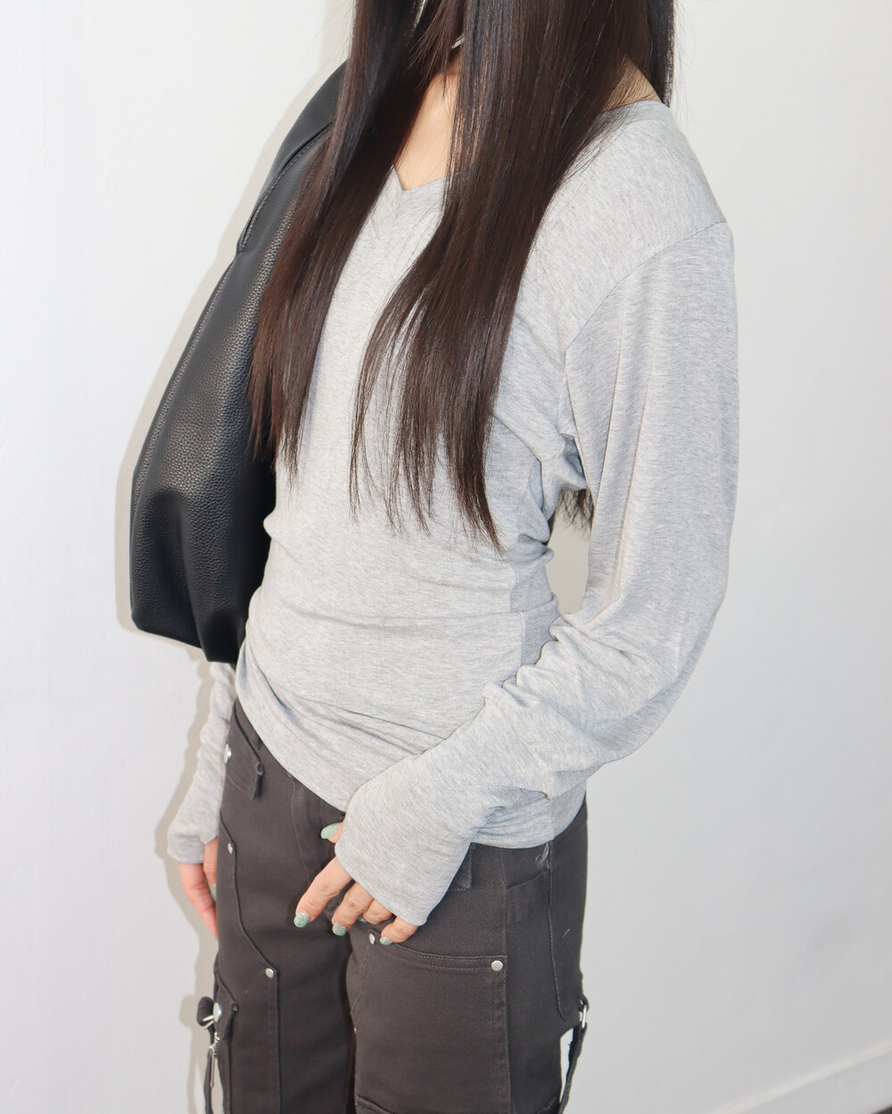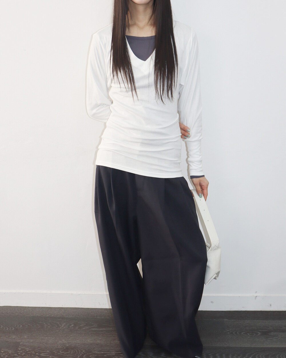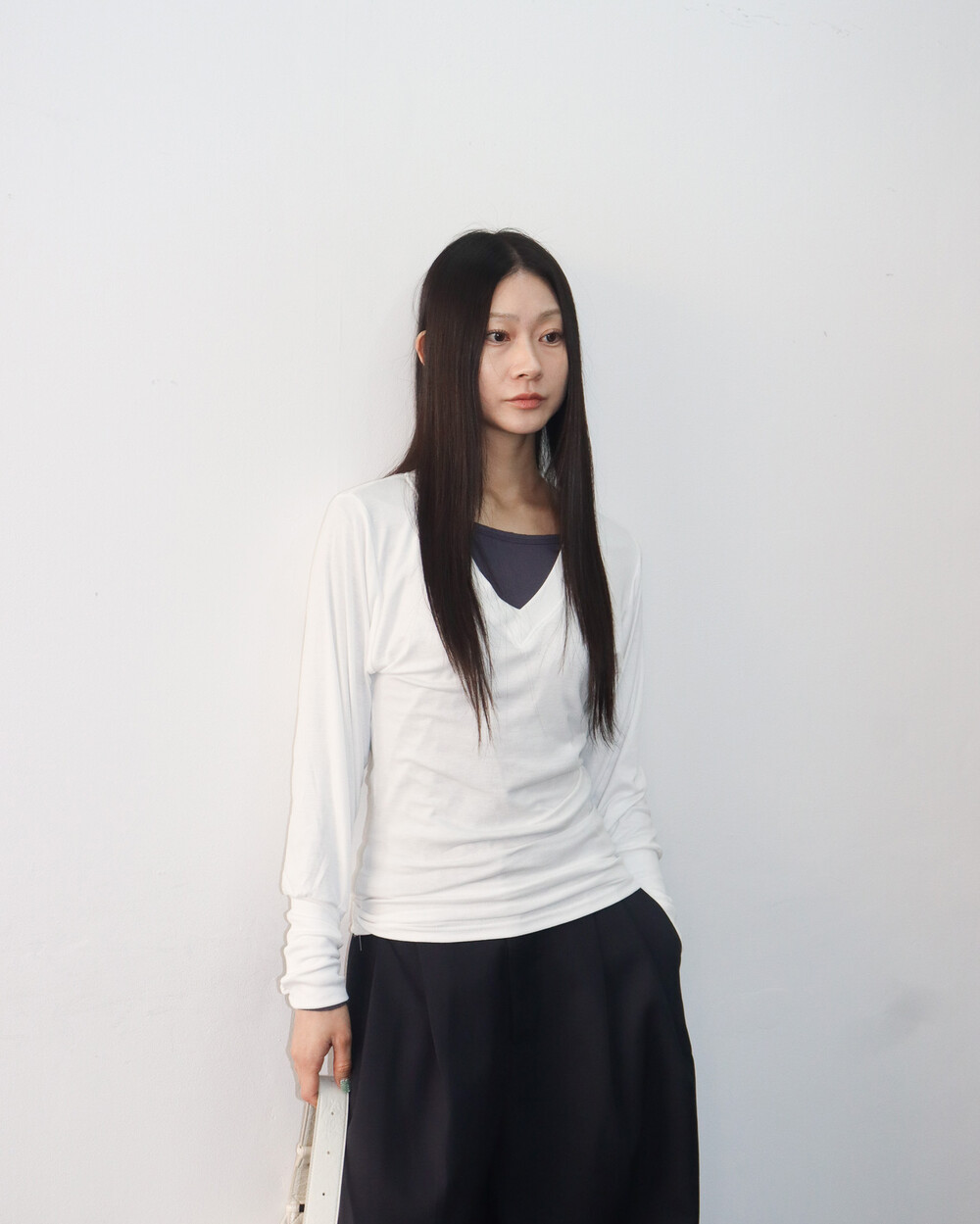 청초하면서도 부드러운 착용감의 V넥 탑