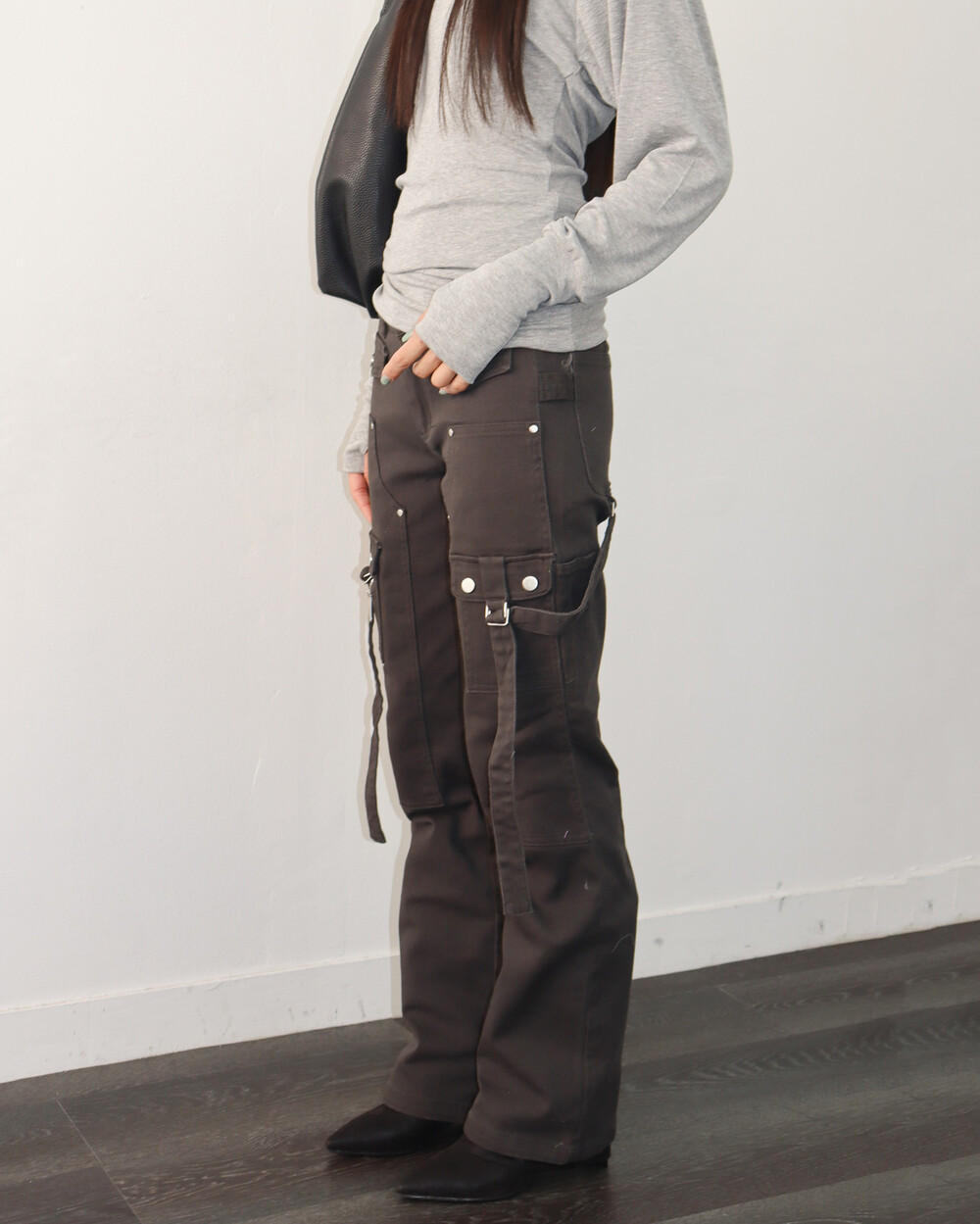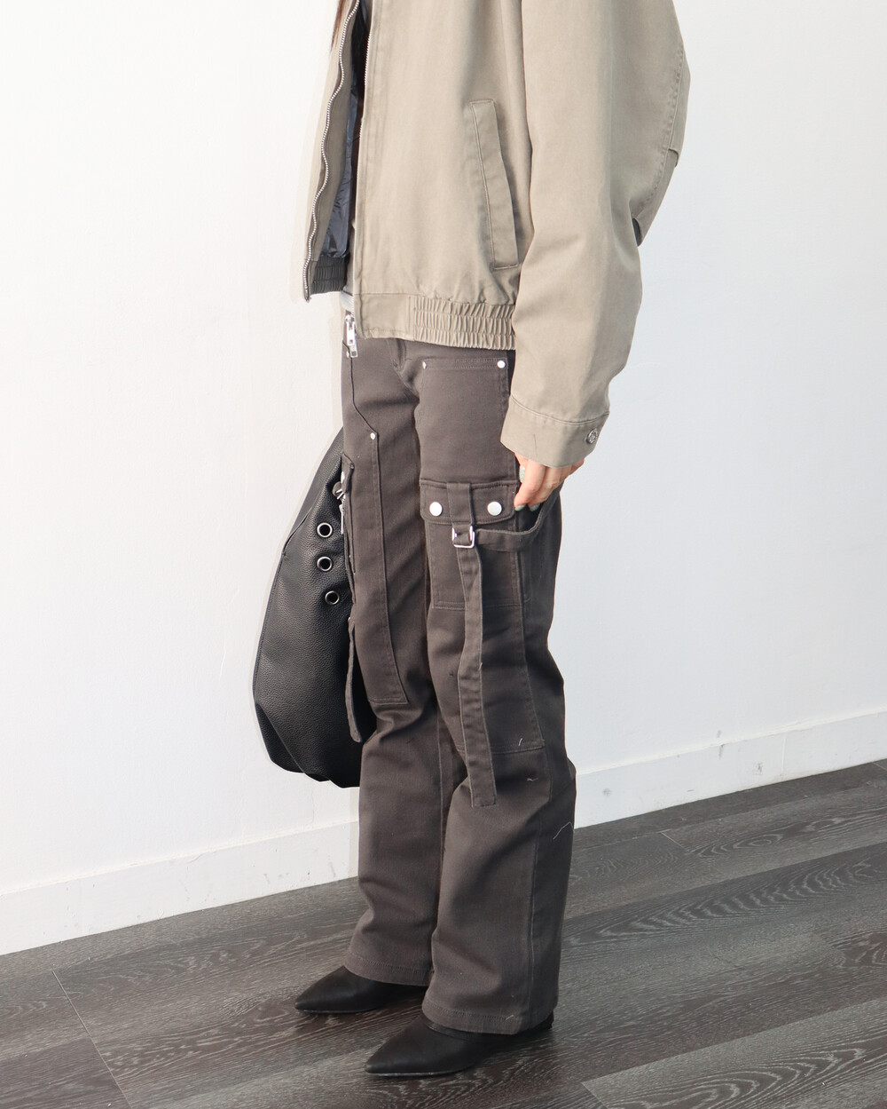 양 사이드 포켓과 버클/카펜더 디테일로 입체감과