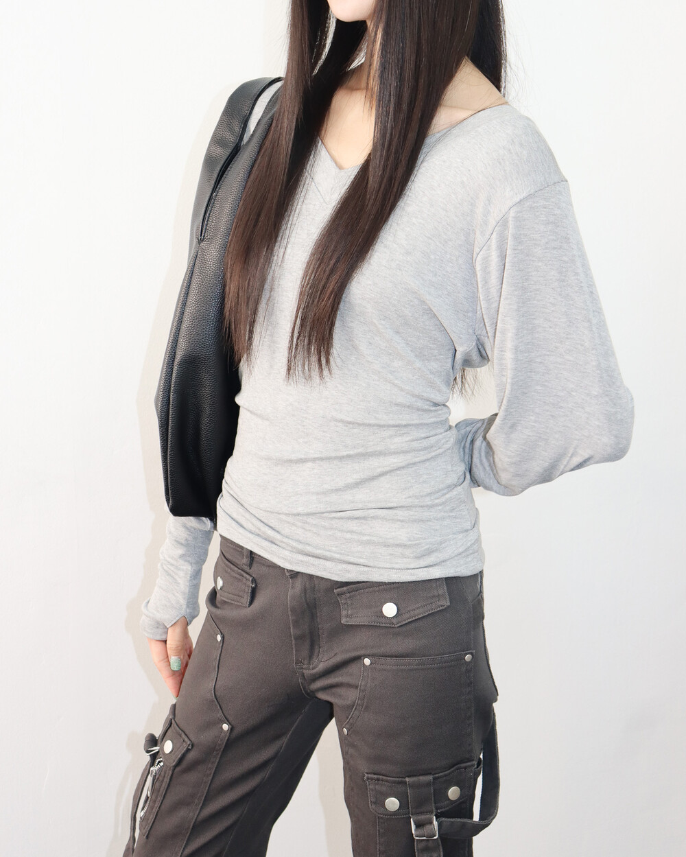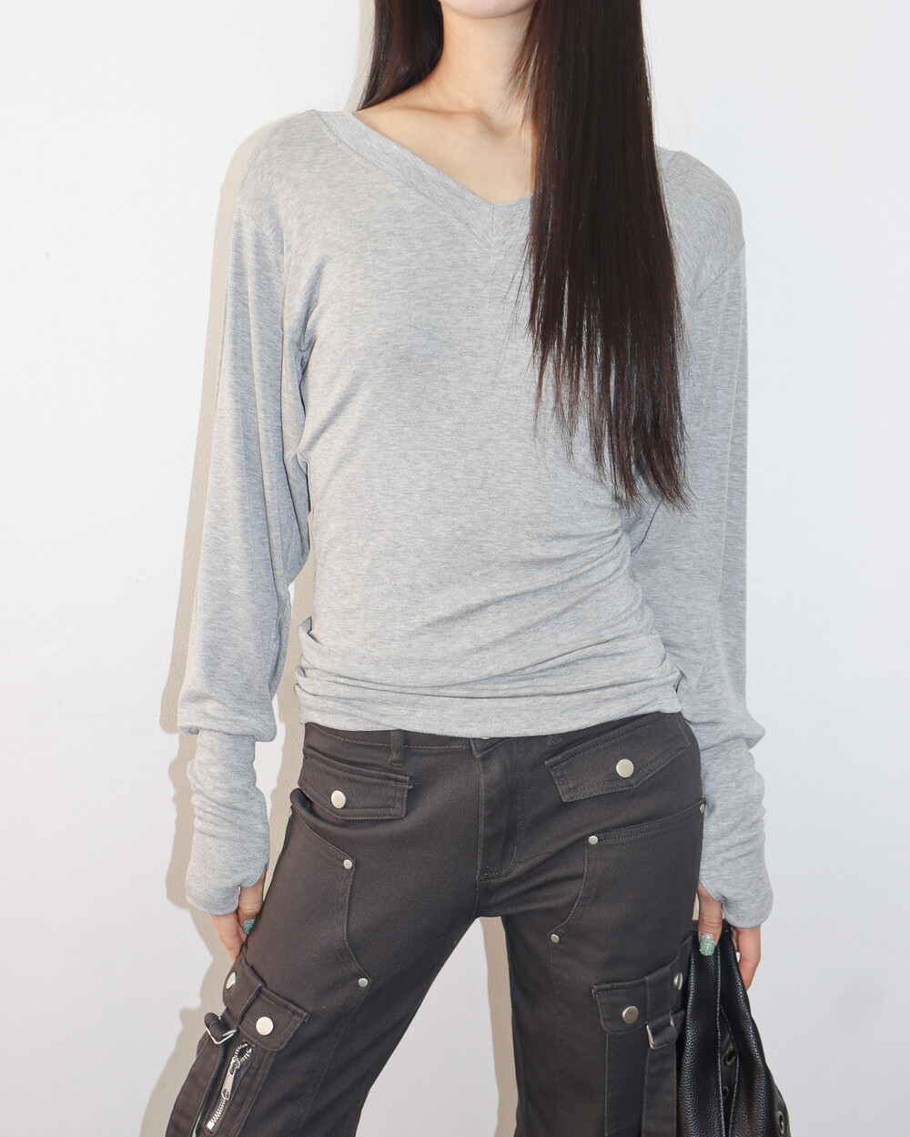 - CYNTH SLIM V-NECK TOP (MELANGE GRAY)