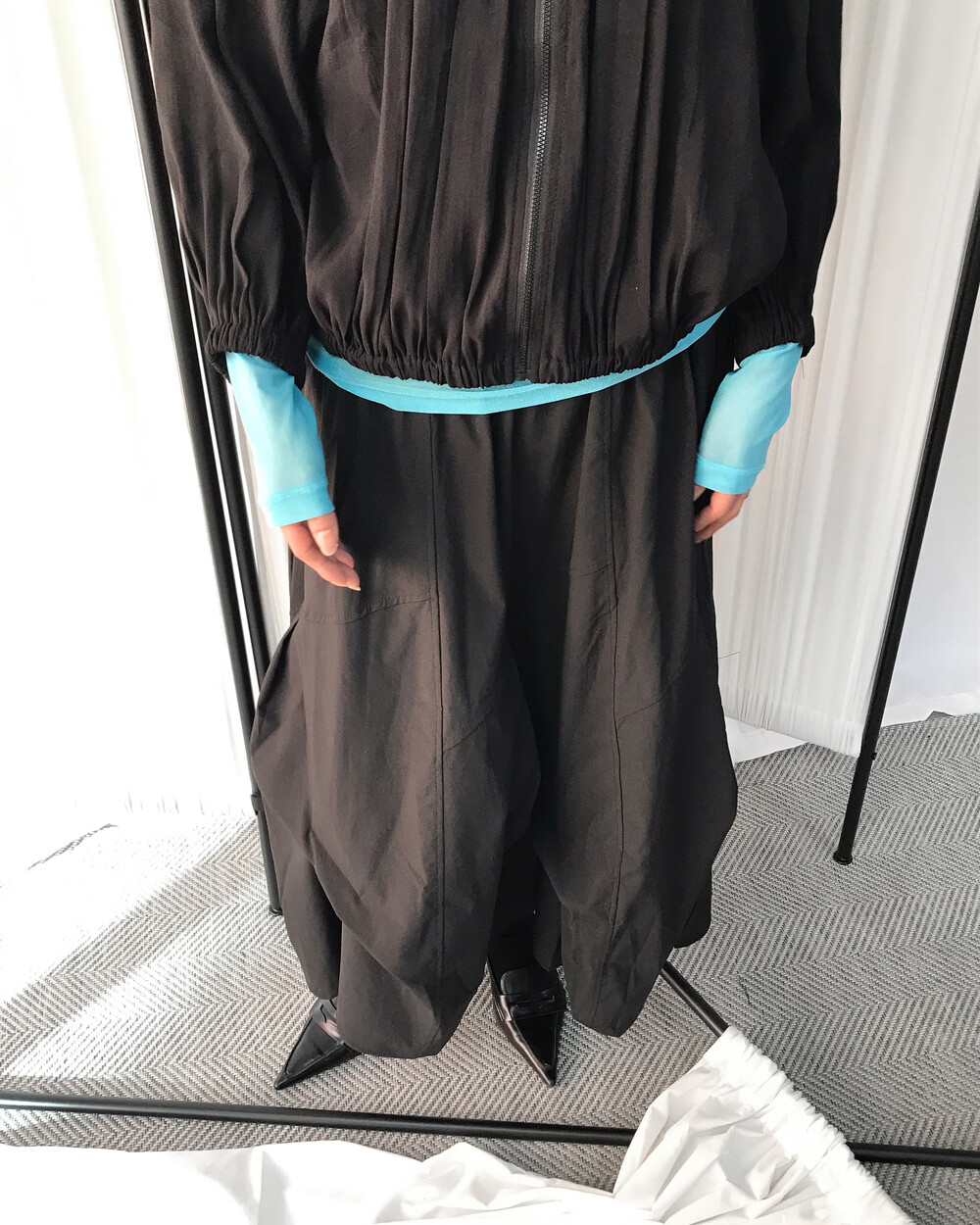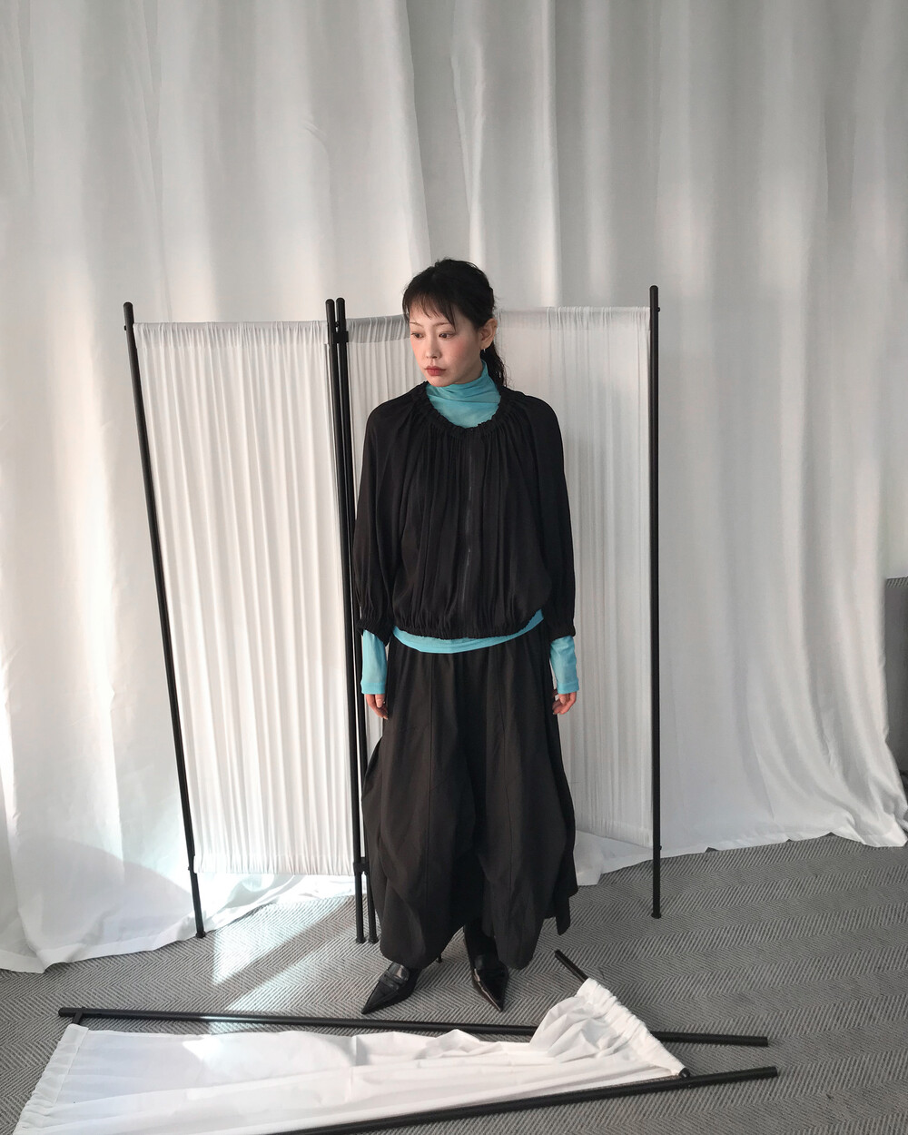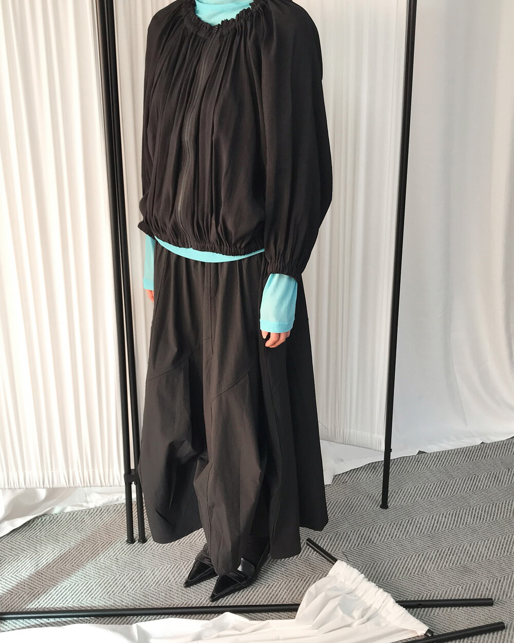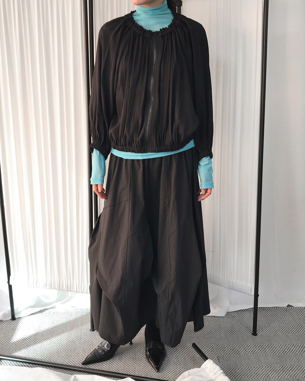 * IM SHIRRING ZIP-UP BLOUSE (BLACK)