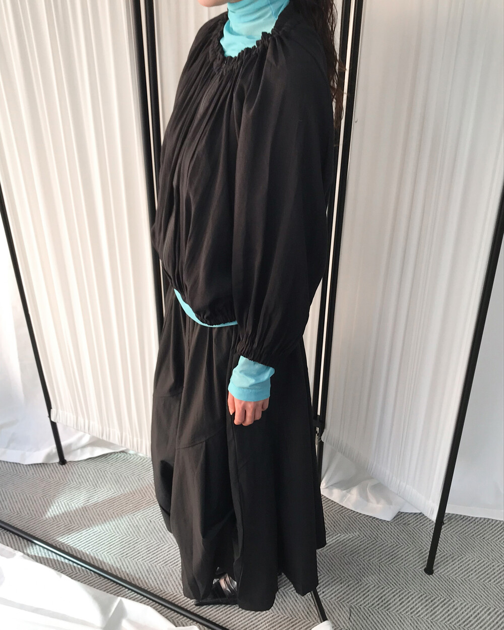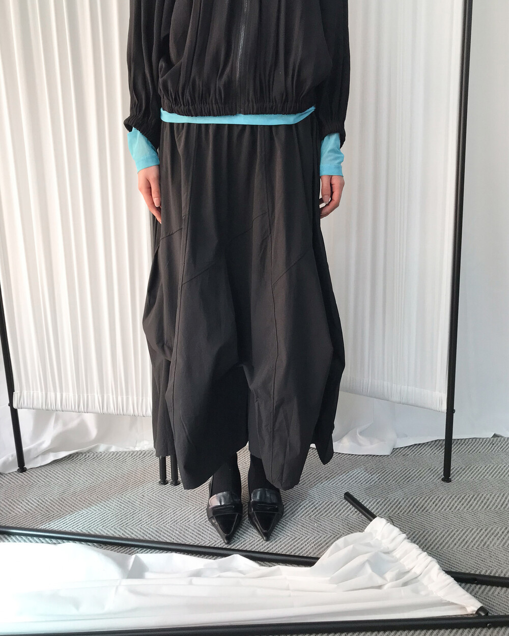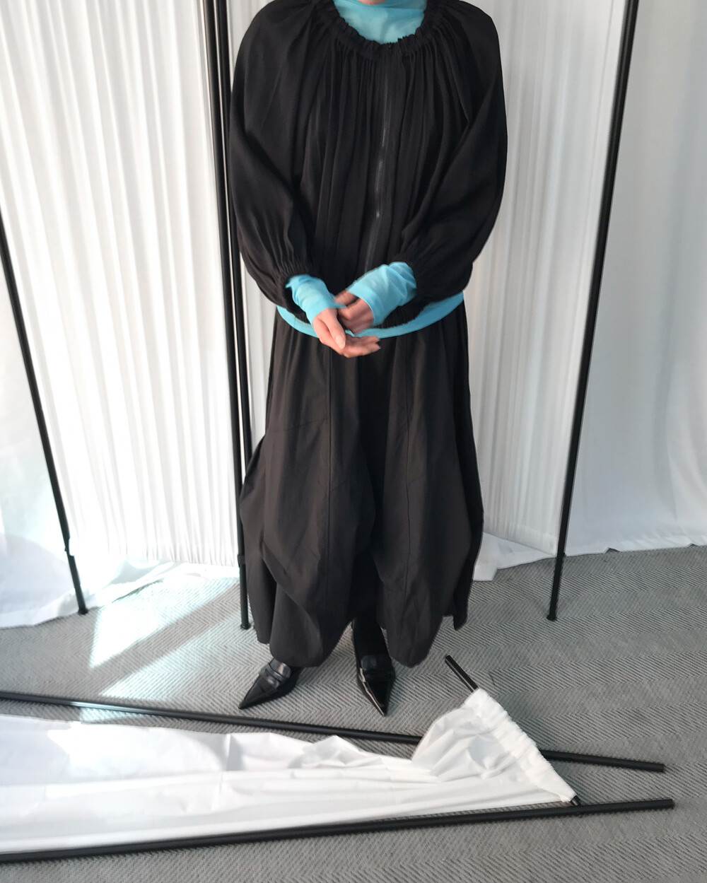* IM SHIRRING ZIP-UP BLOUSE (BLACK)