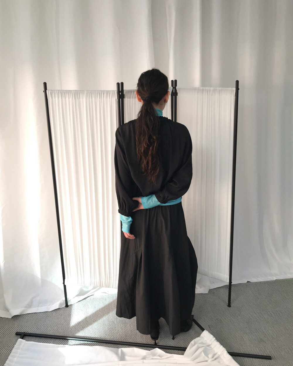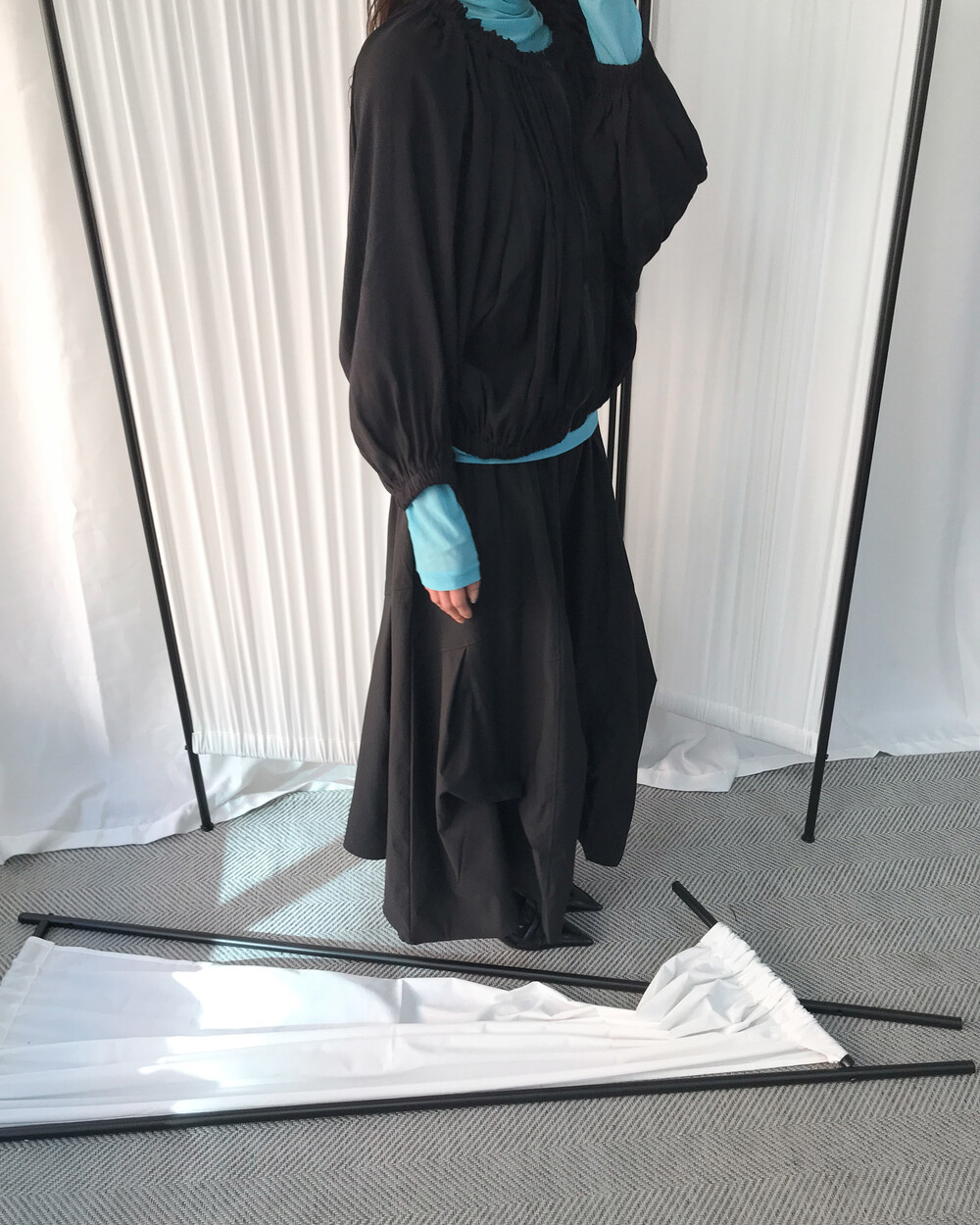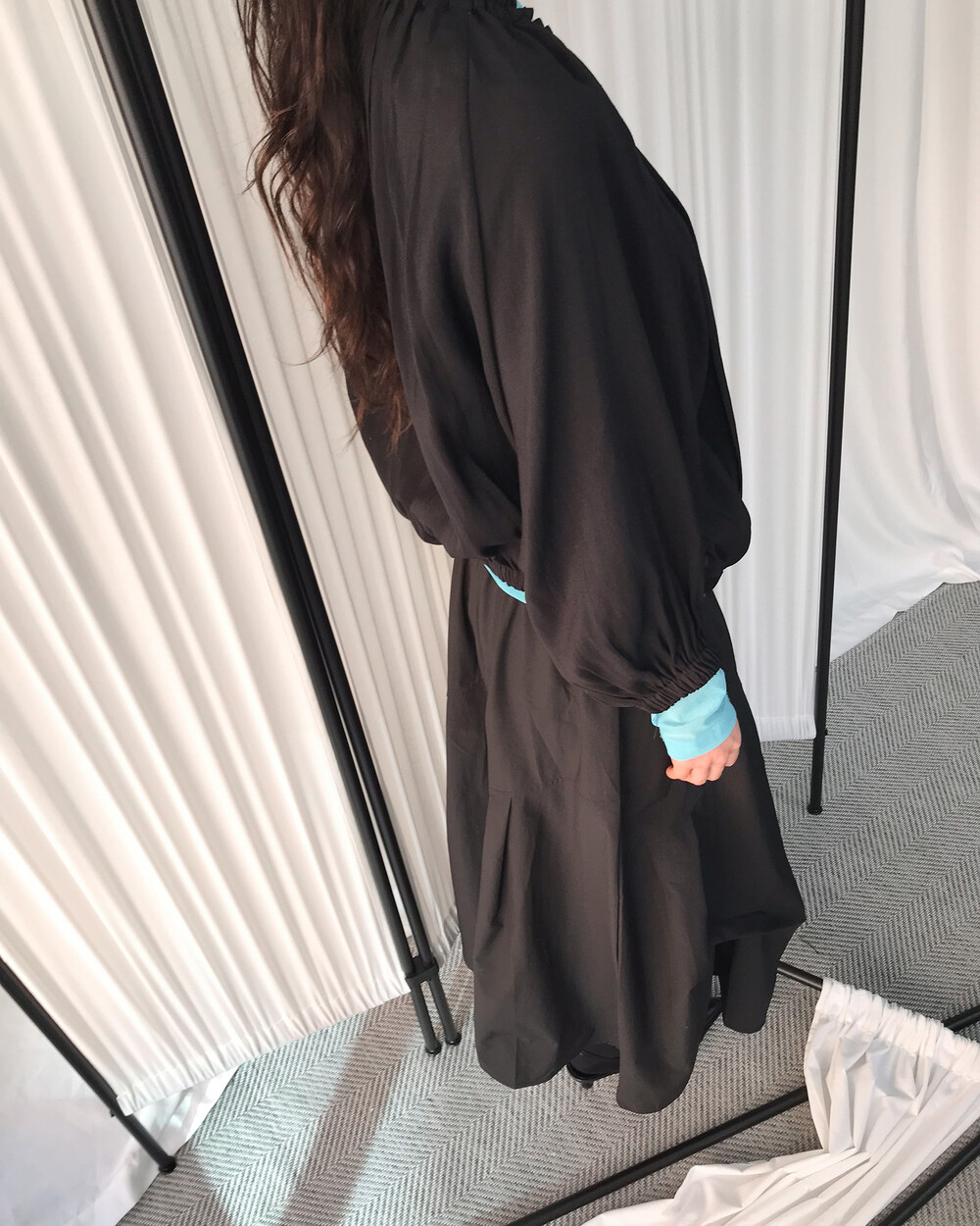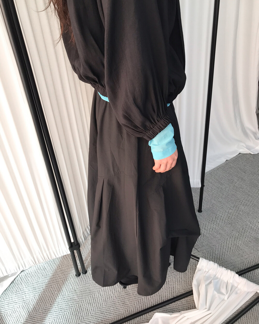 * IM SHIRRING ZIP-UP BLOUSE (BLACK)