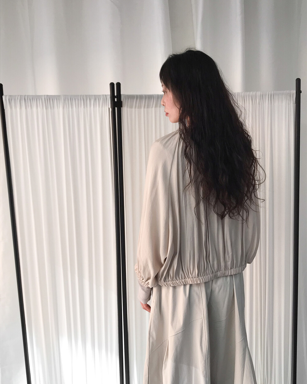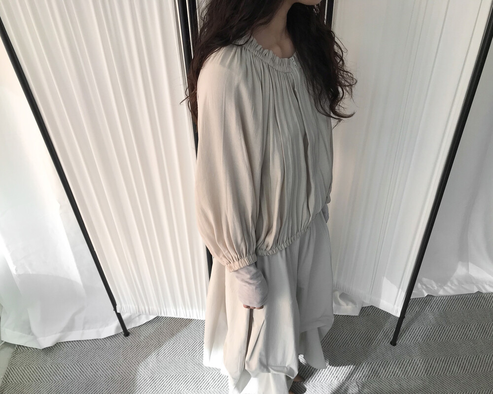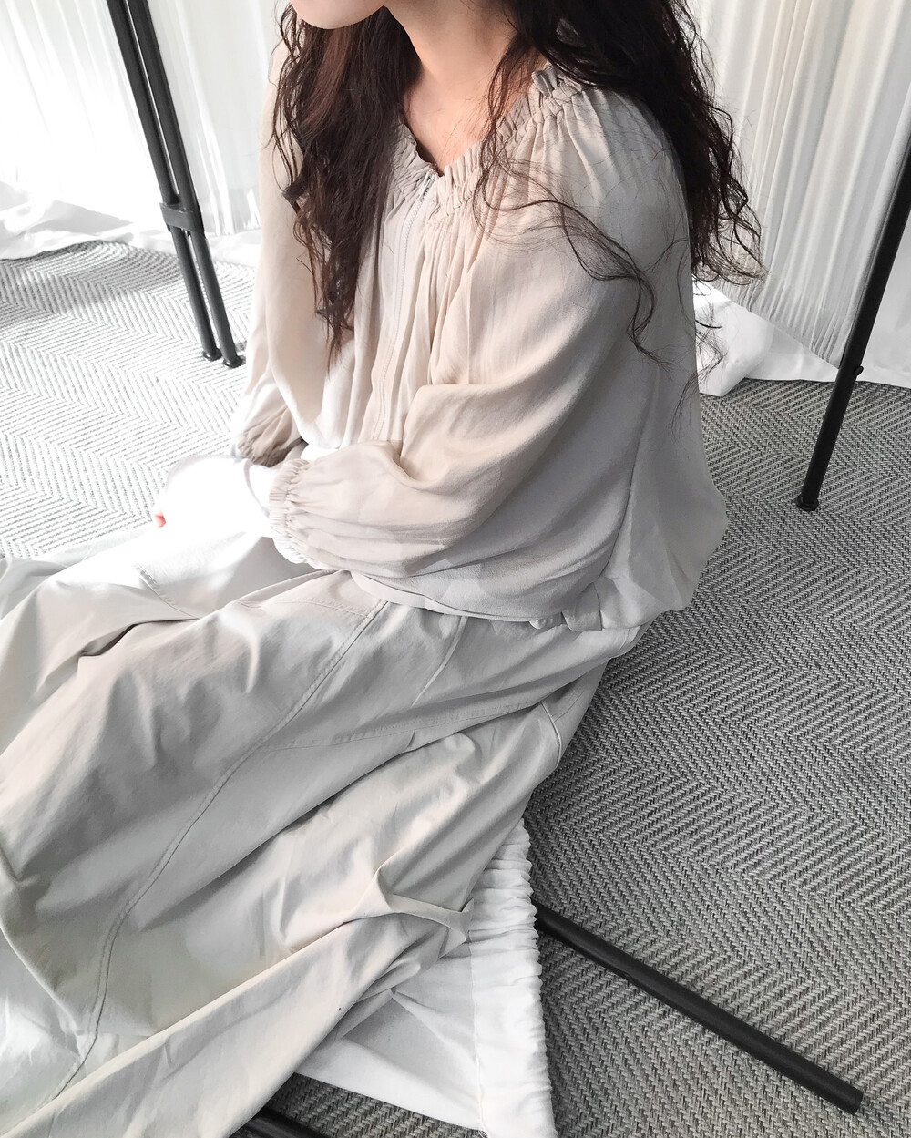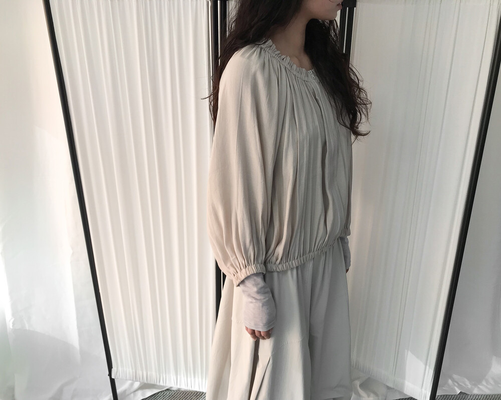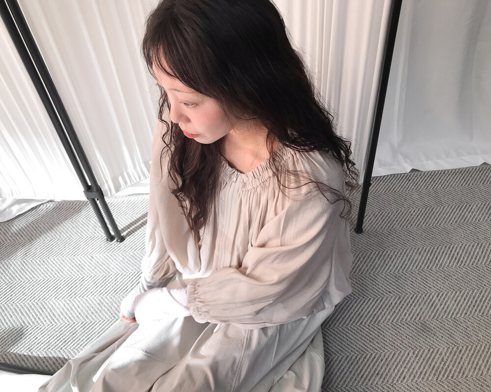 * IM SHIRRING ZIP-UP BLOUSE (ASH BEIGE)
