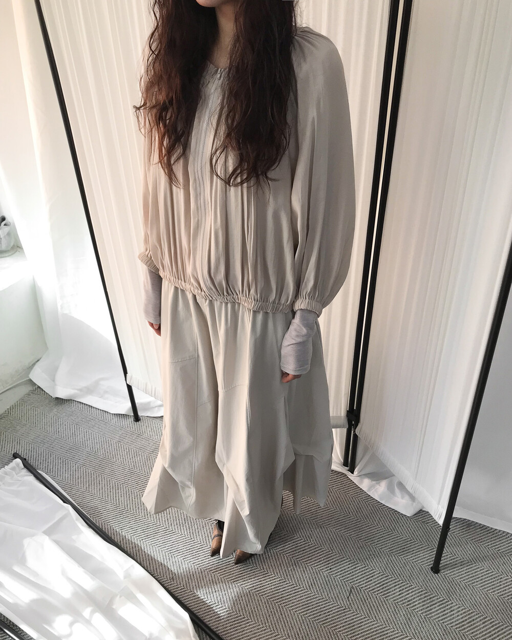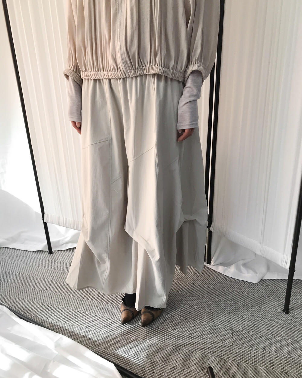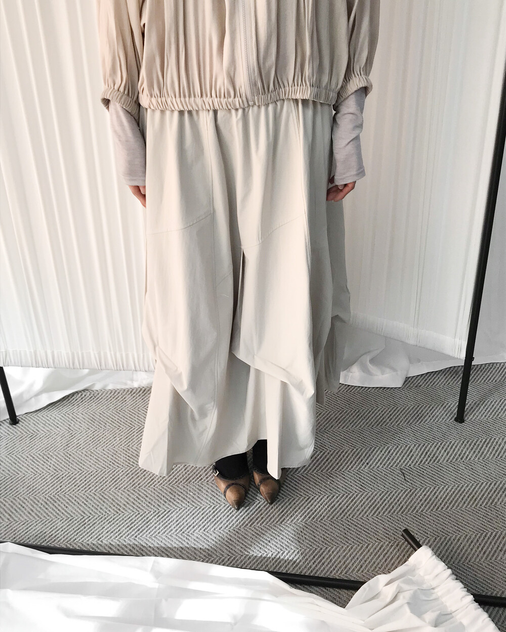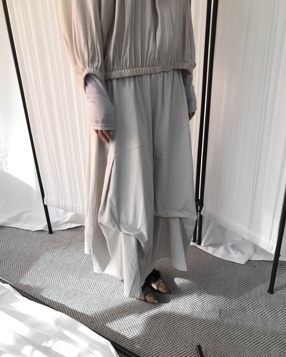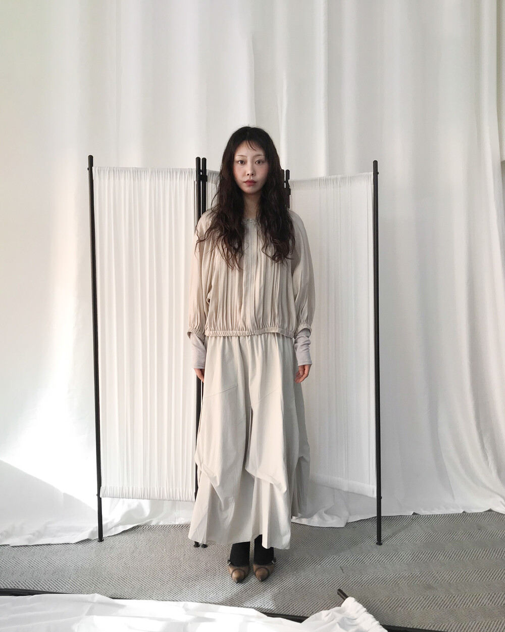 * IM SHIRRING ZIP-UP BLOUSE (ASH BEIGE)