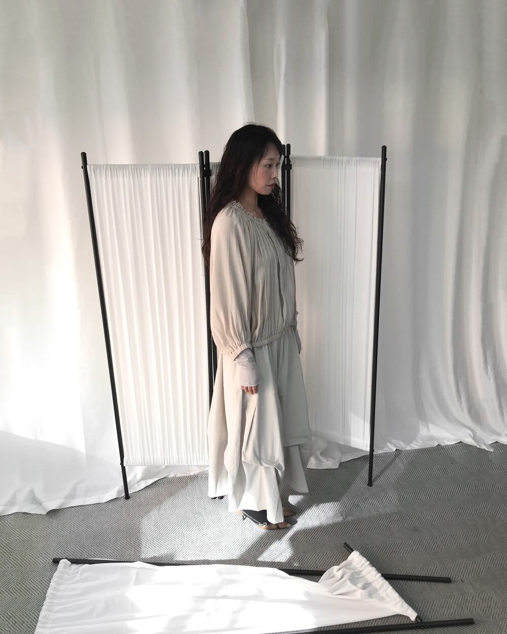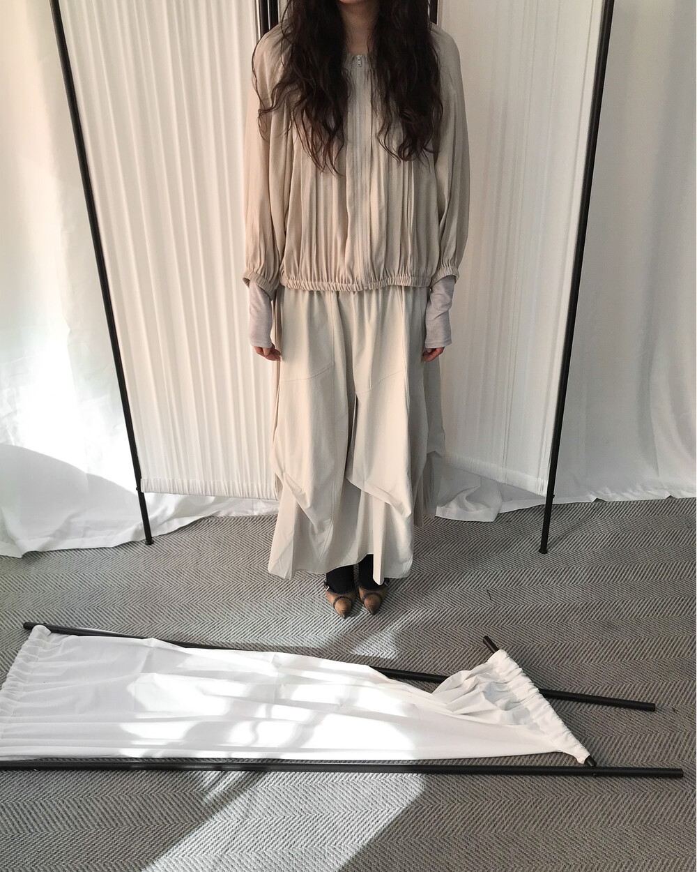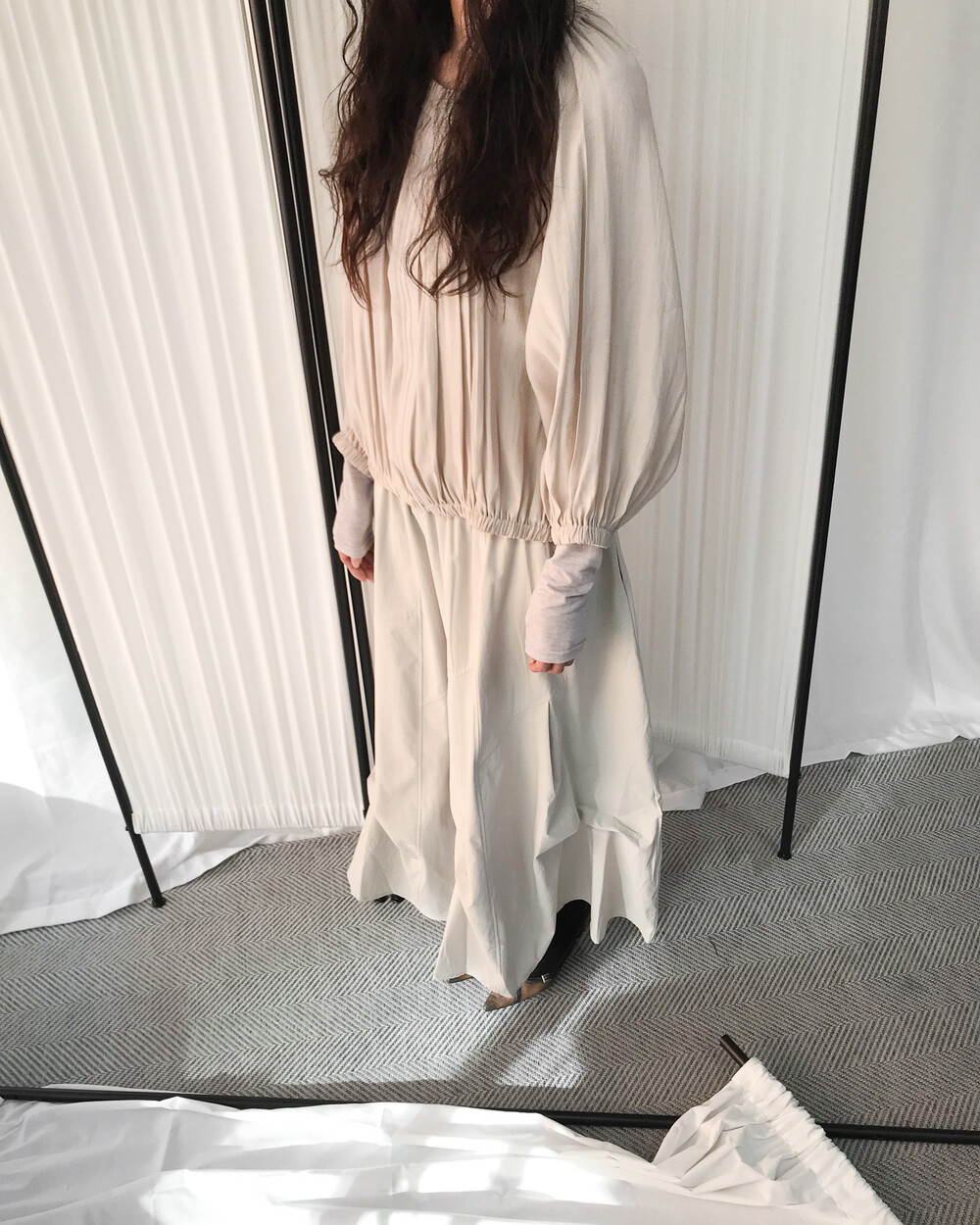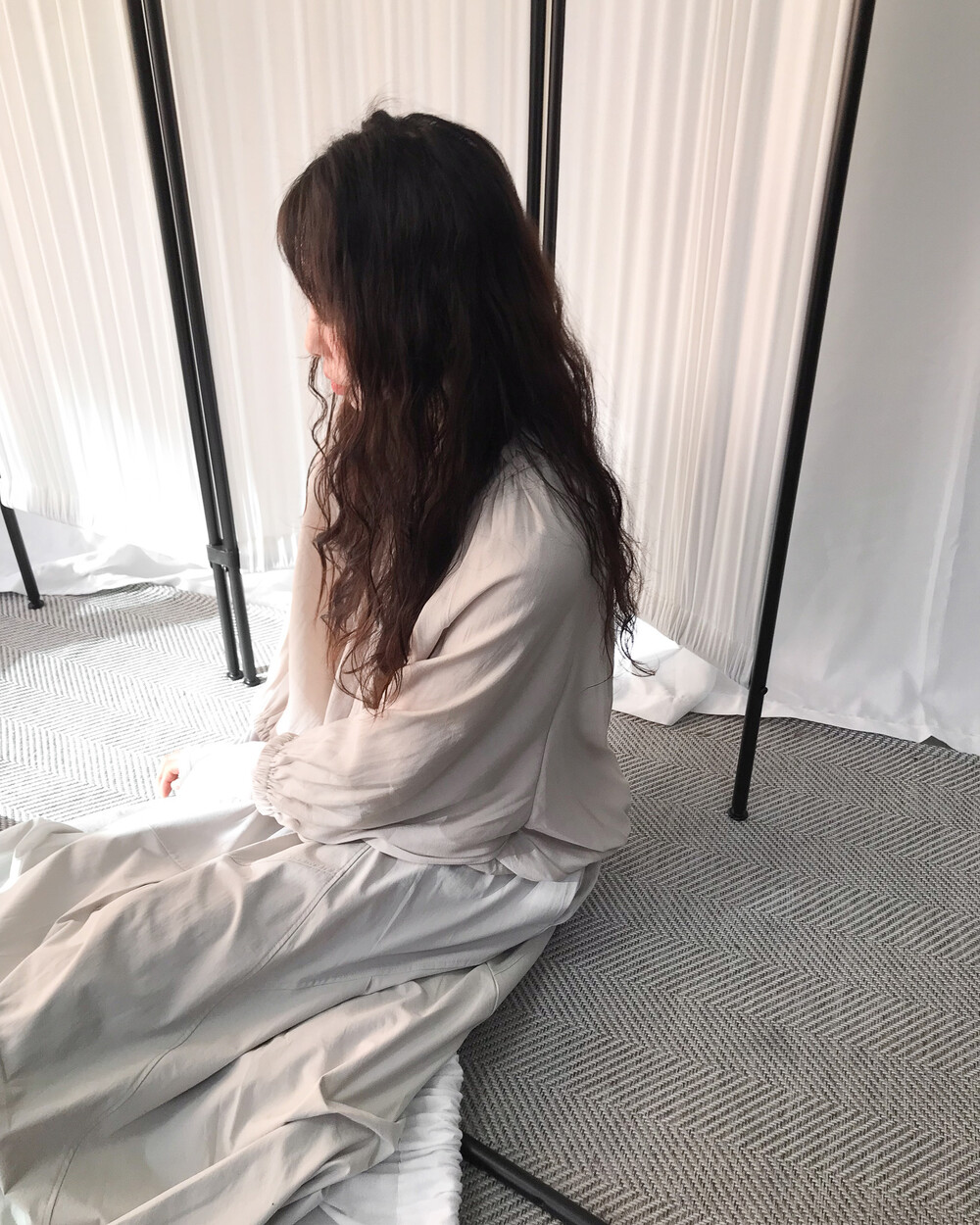 * IM SHIRRING ZIP-UP BLOUSE (ASH BEIGE)