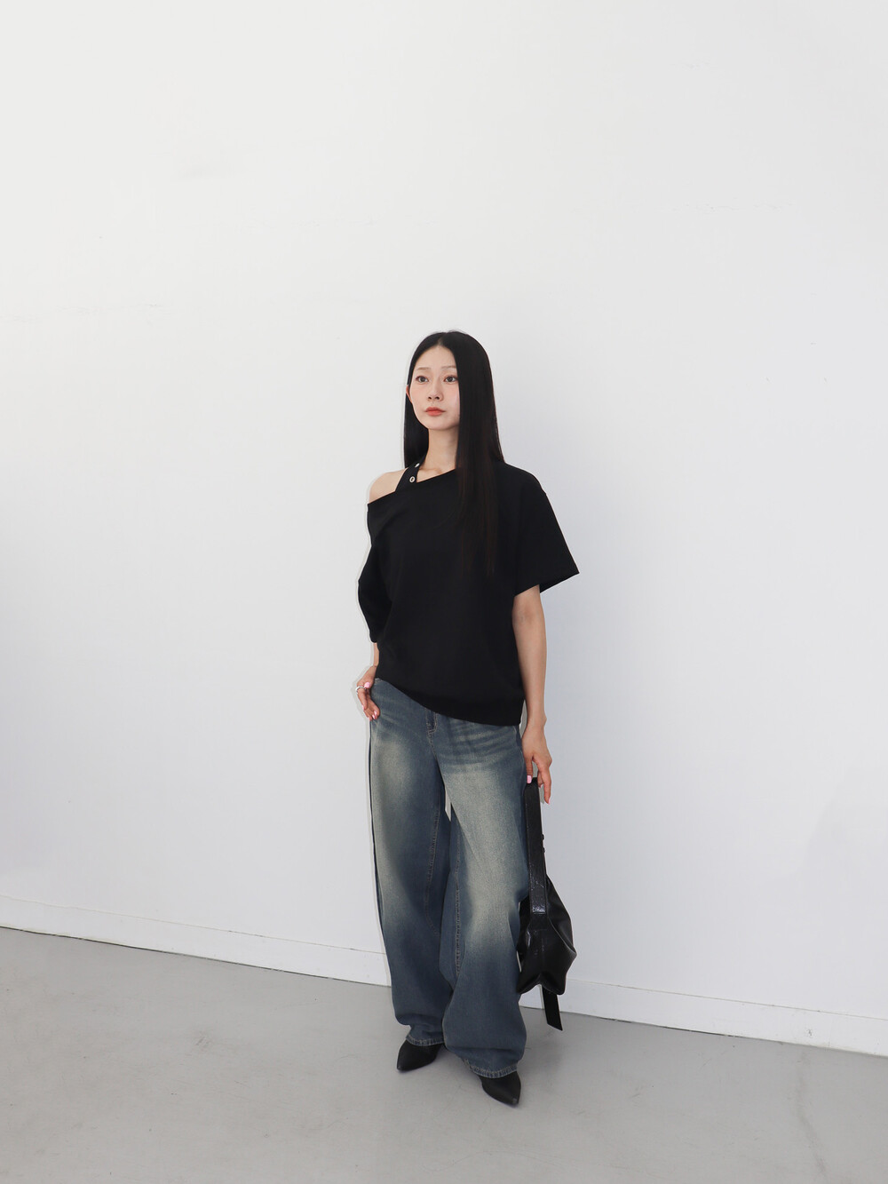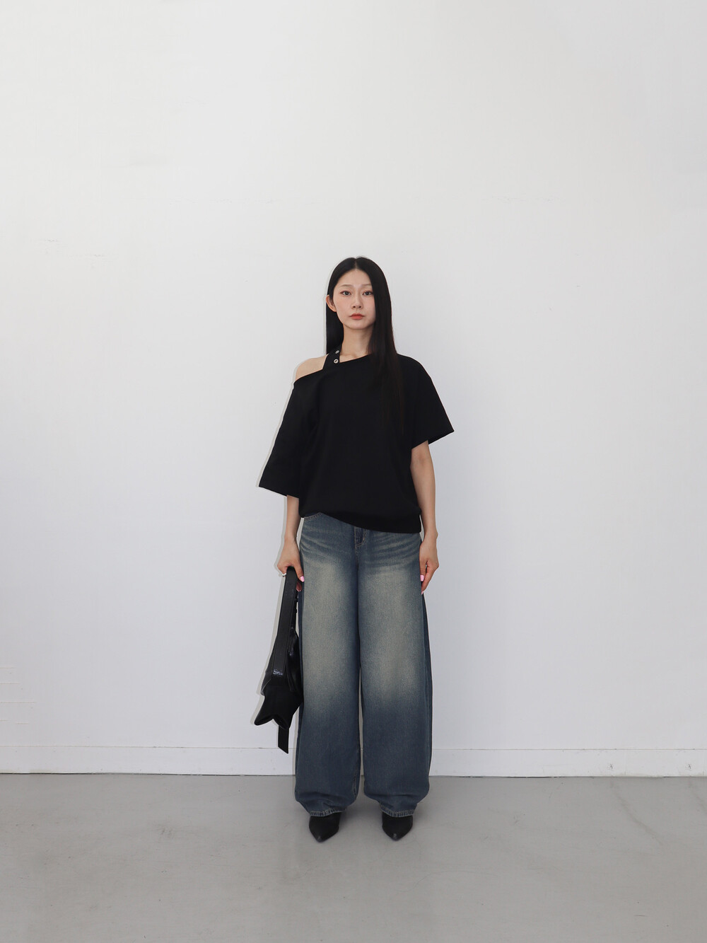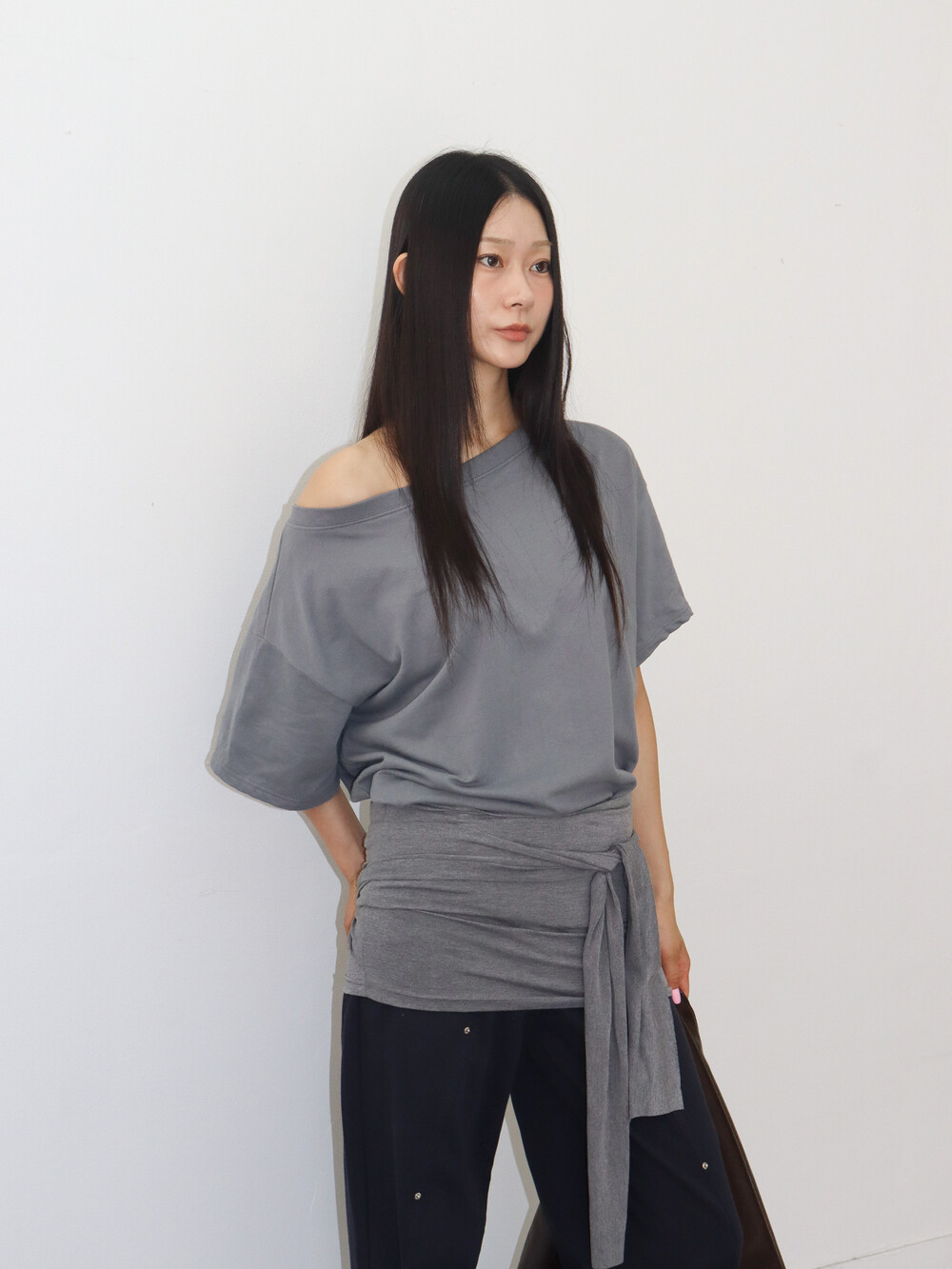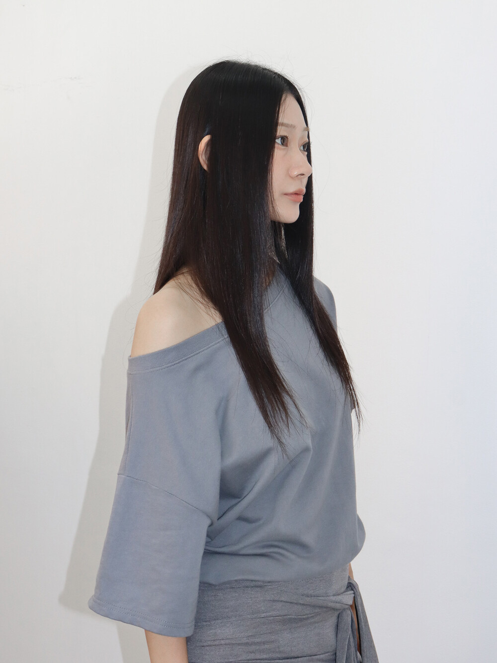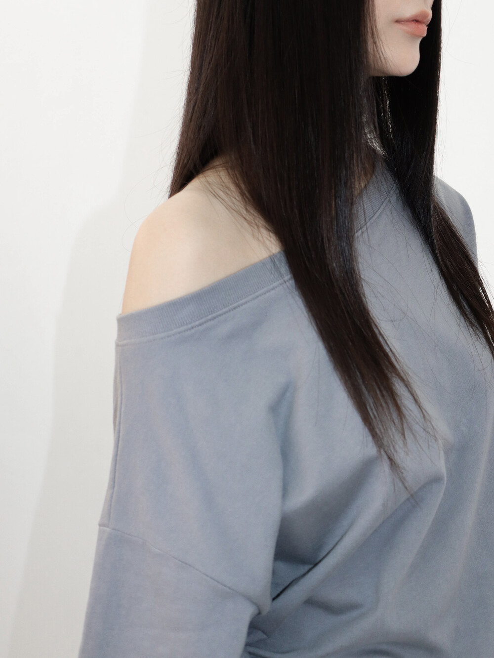 여유 있는 넥 라인으로 상체가 여리여리하게 표현되며