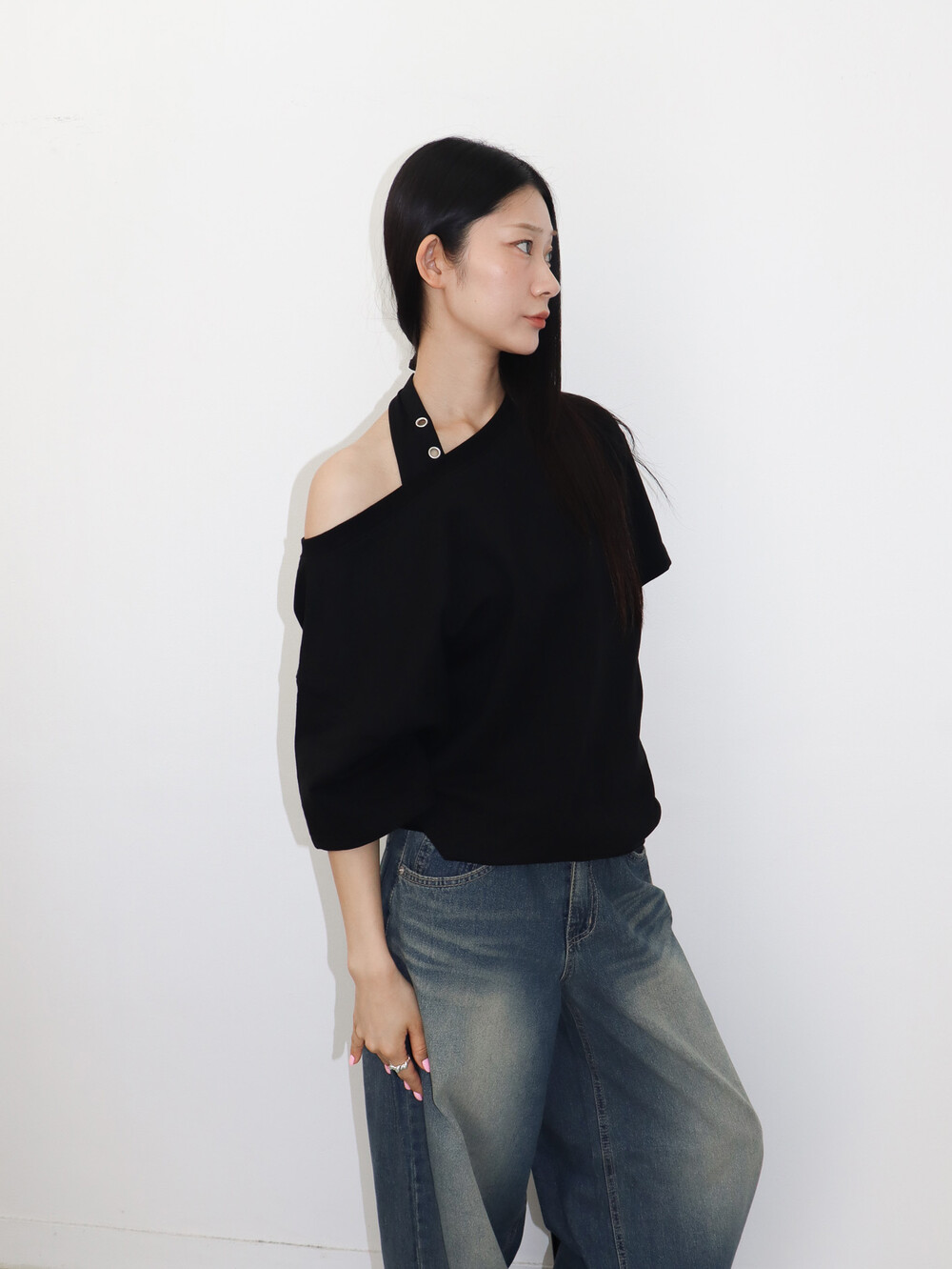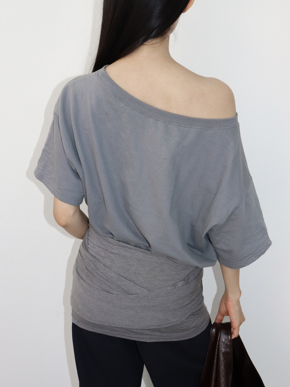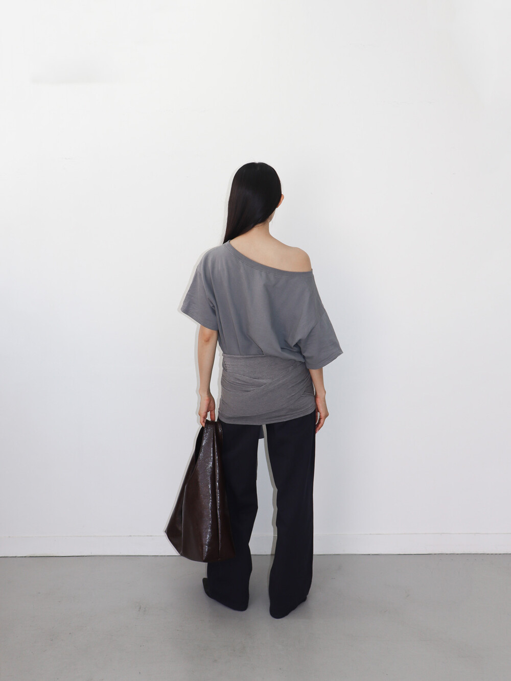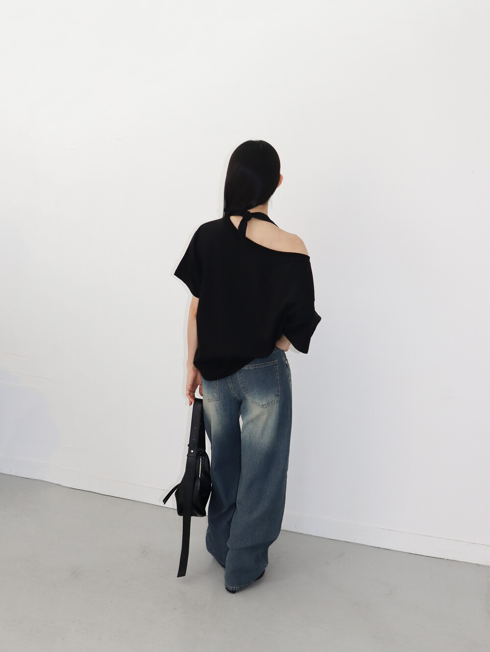 여유 있는 넥 라인으로 상체가 여리여리하게 표현되며