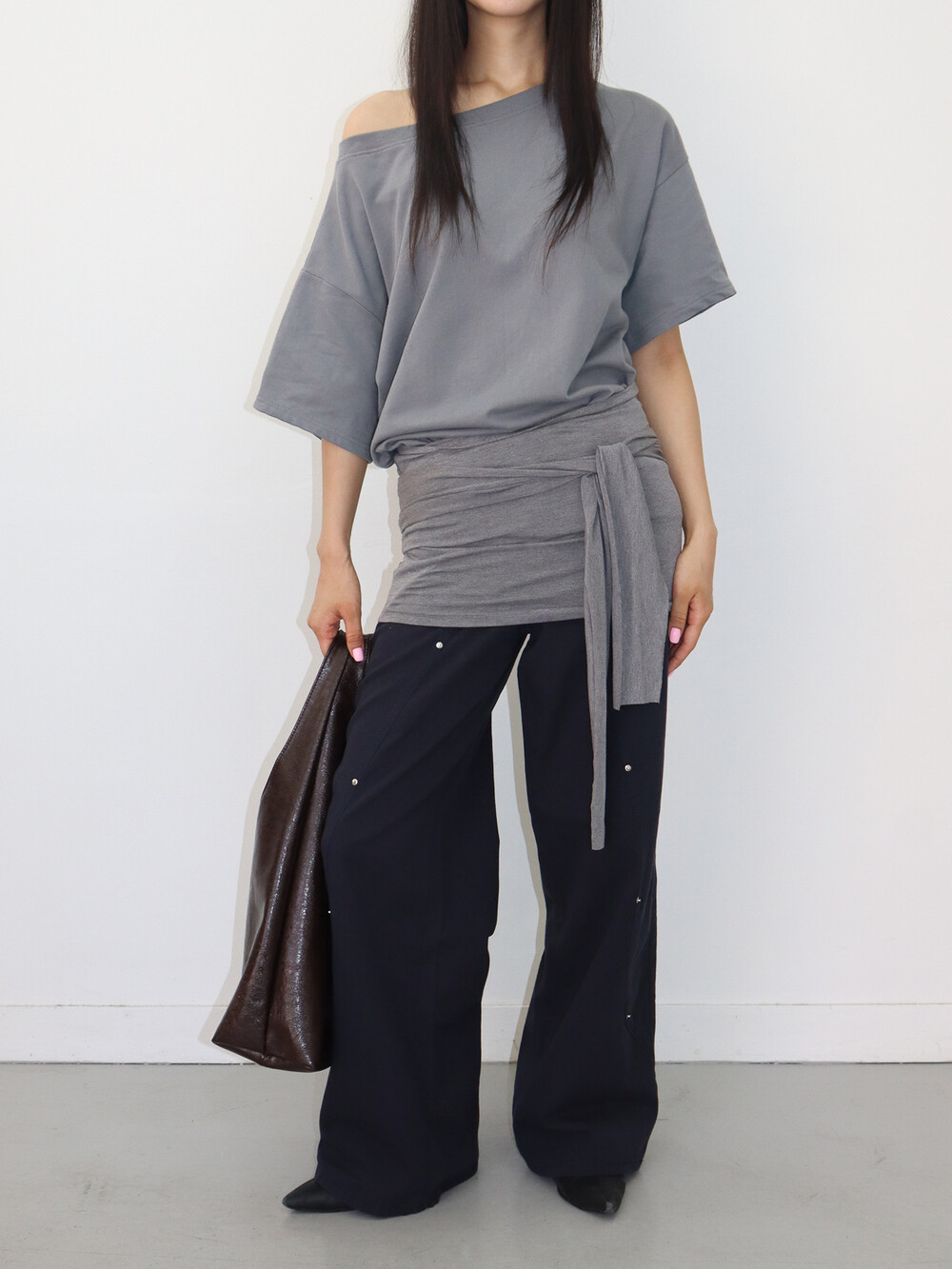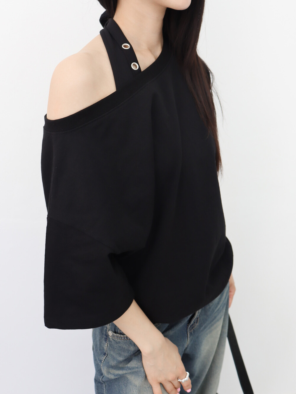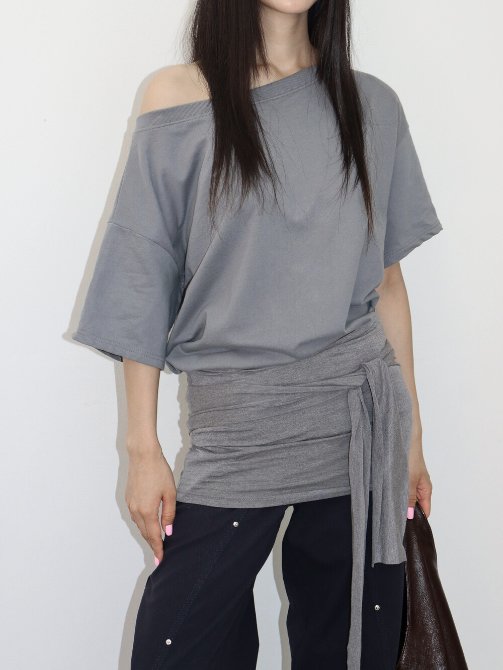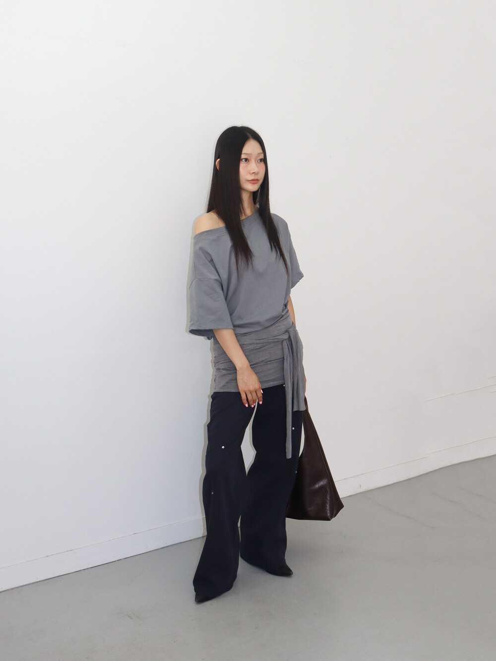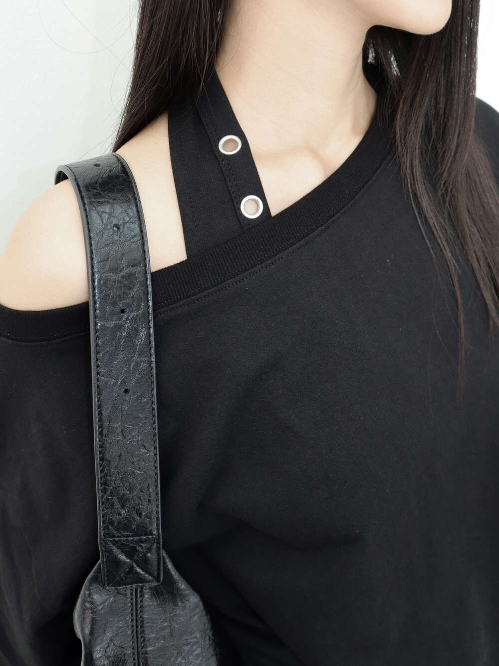 여유 있는 넥 라인으로 상체가 여리여리하게 표현되며