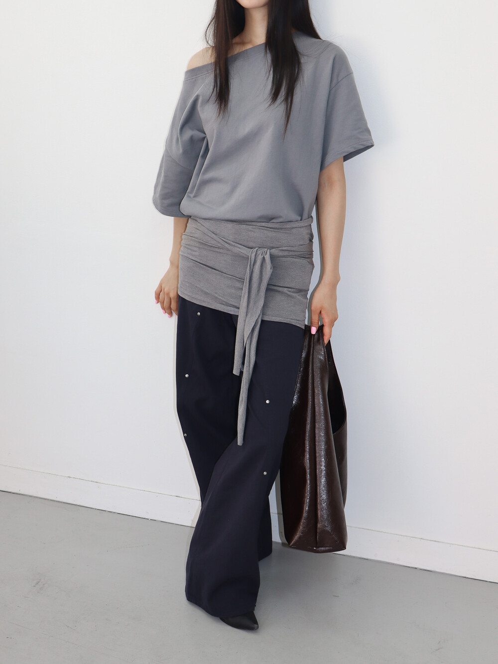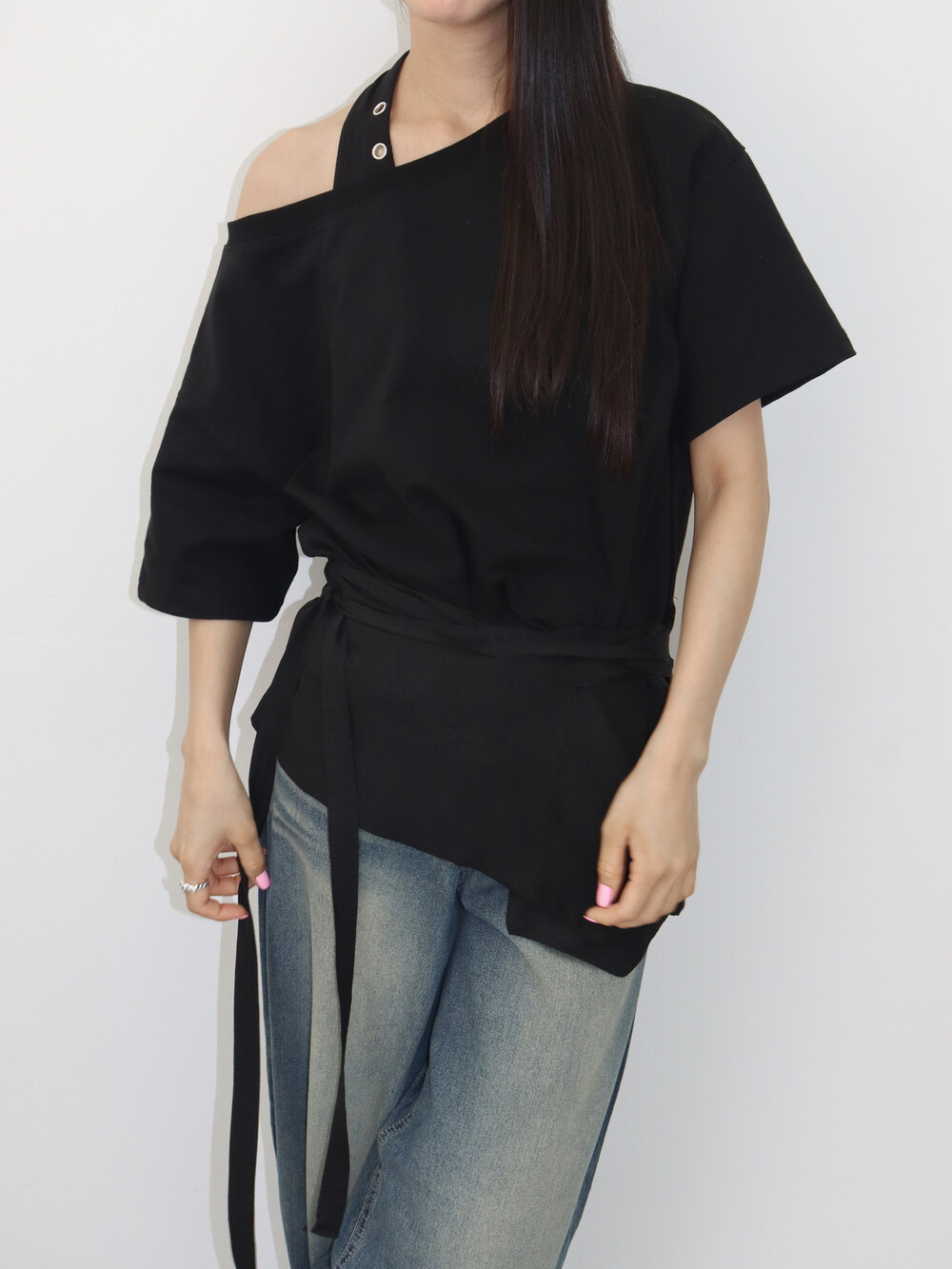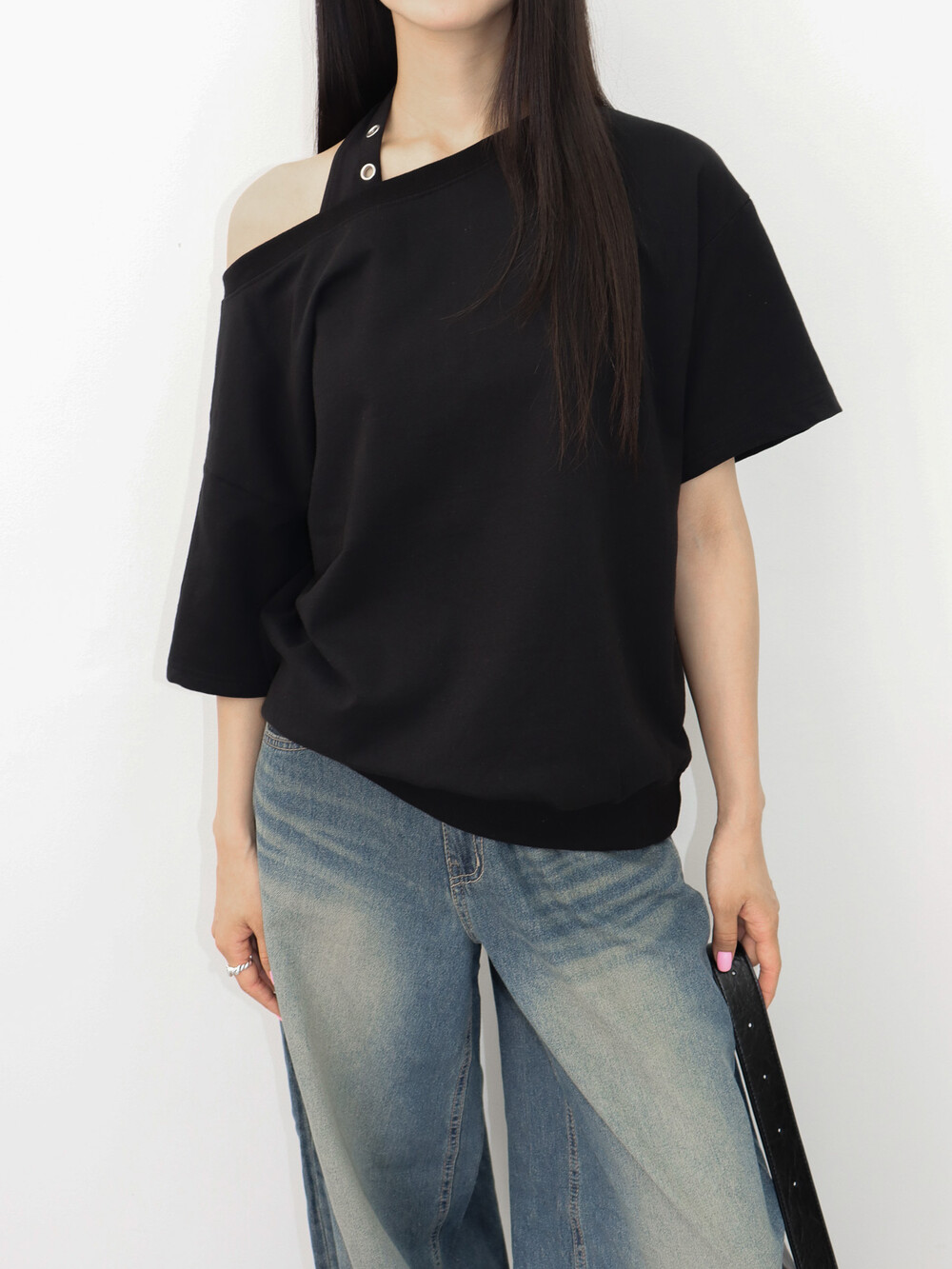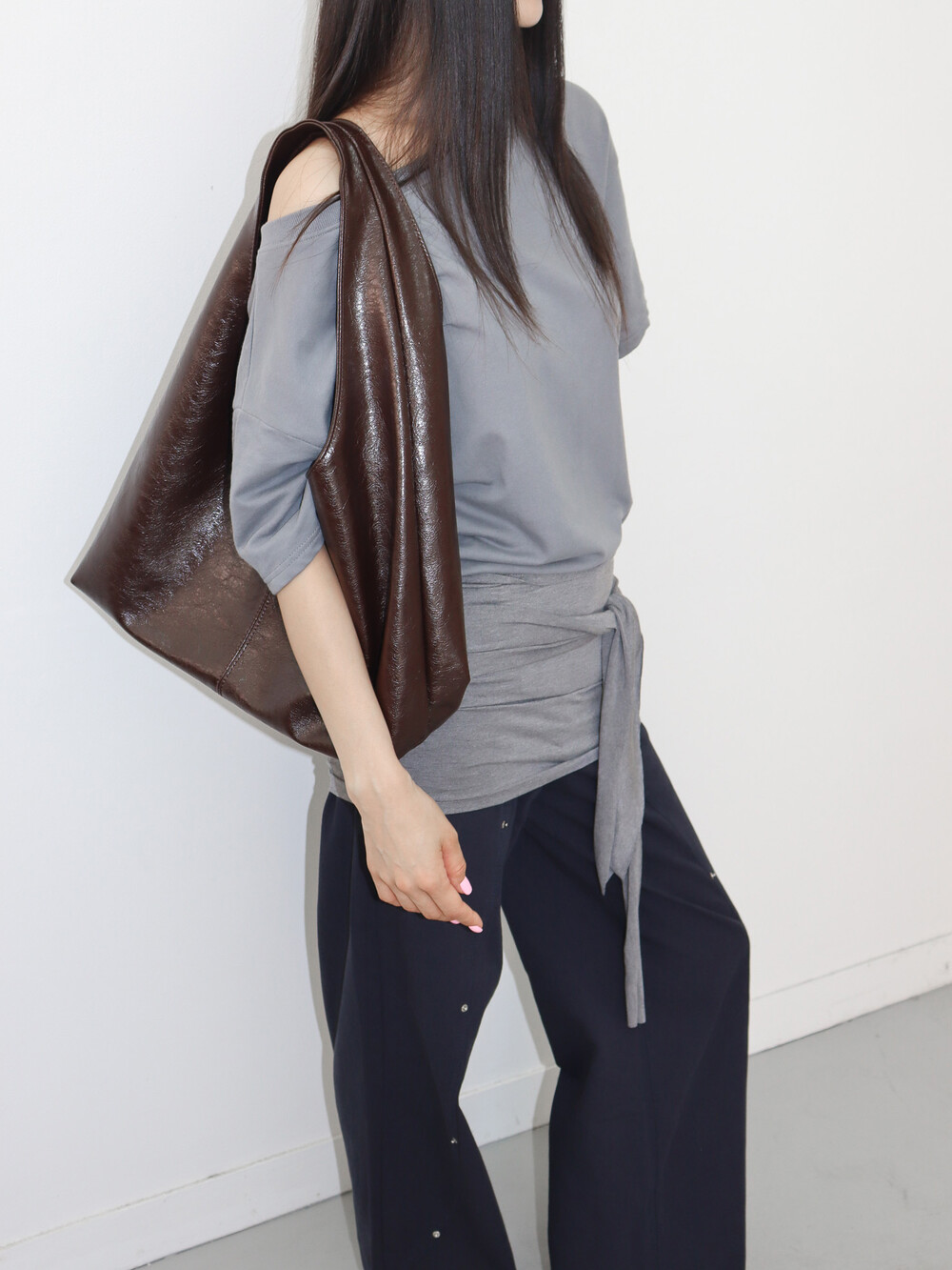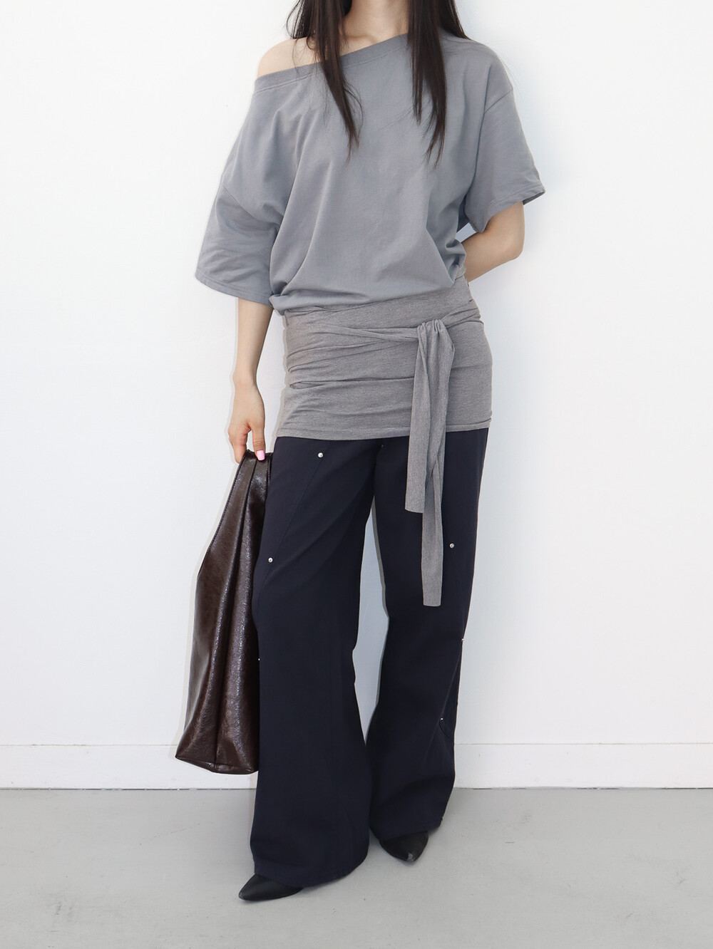 여유 있는 넥 라인으로 상체가 여리여리하게 표현되며