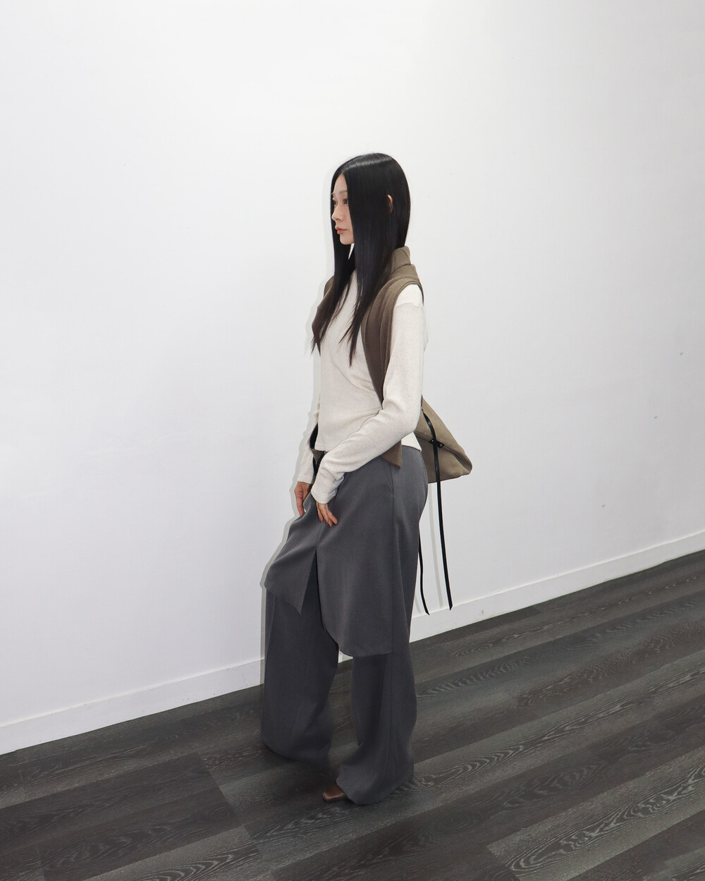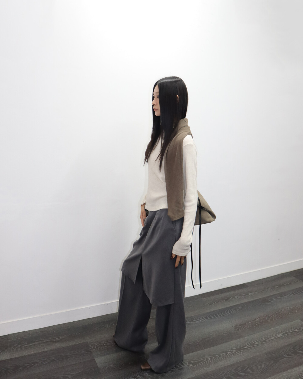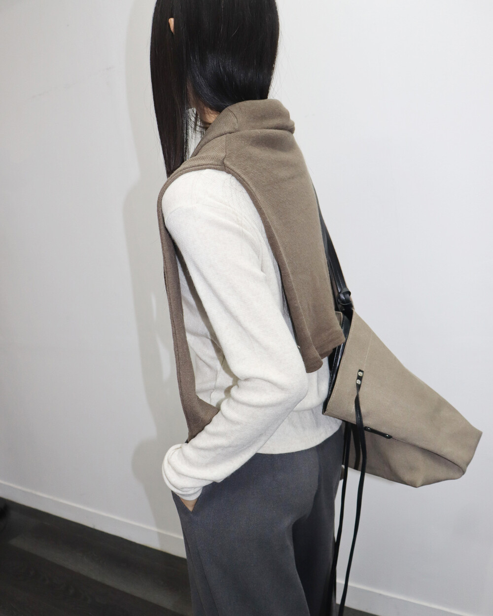 쿨하게 툭 다른 컬러를 숄처럼 얹어 줬는데.. 멋스럽죠 !