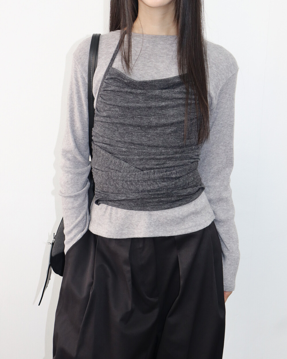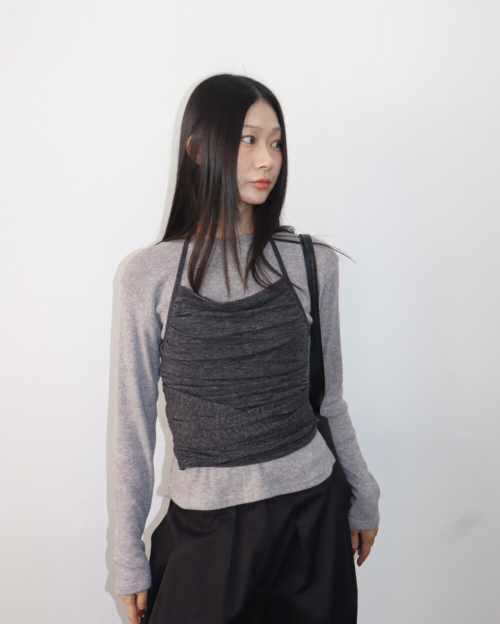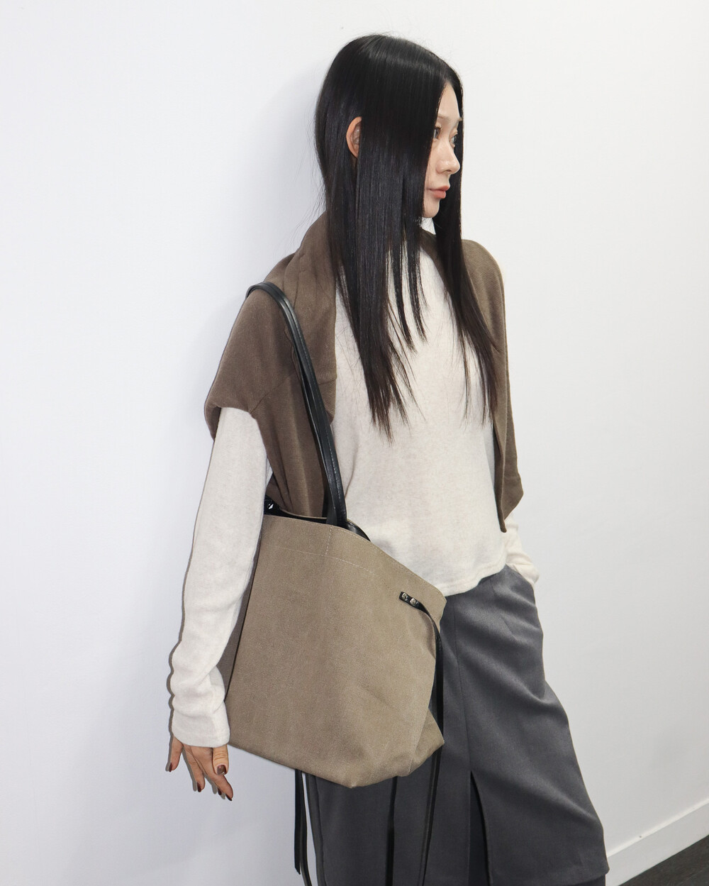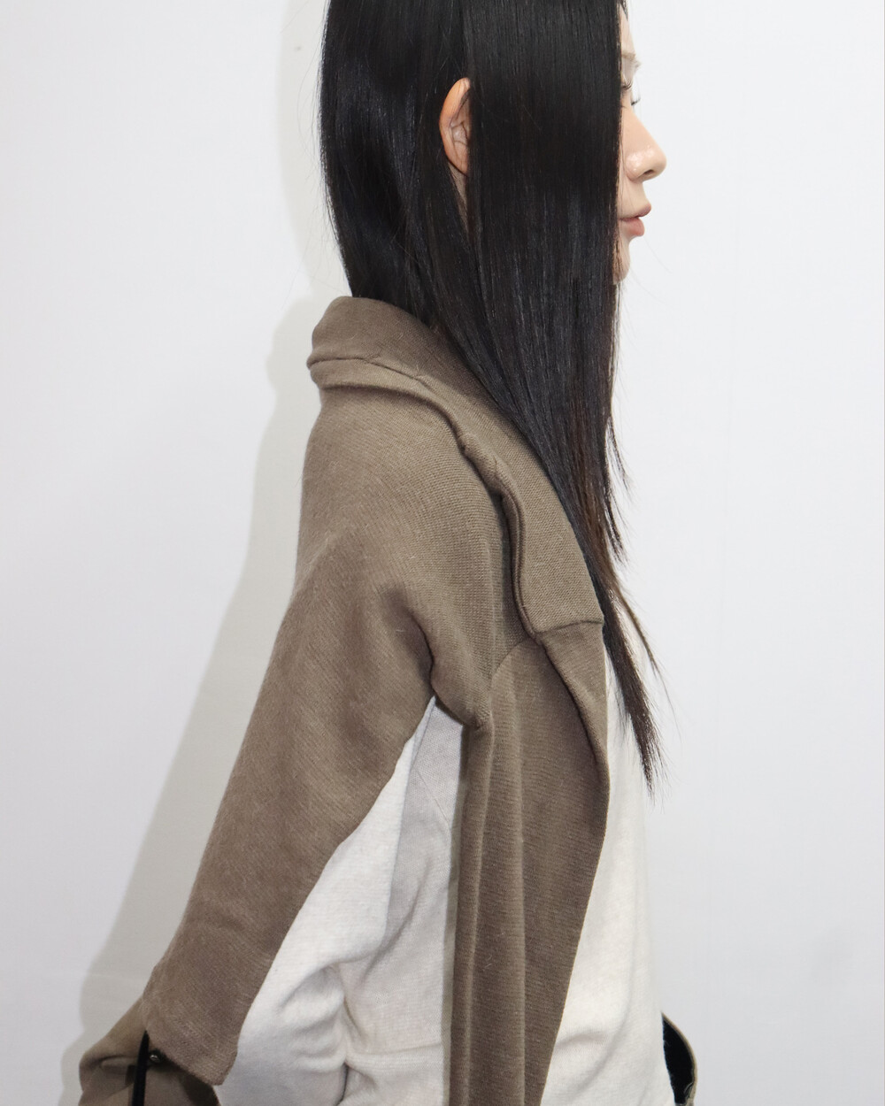 쿨하게 툭 다른 컬러를 숄처럼 얹어 줬는데.. 멋스럽죠 !