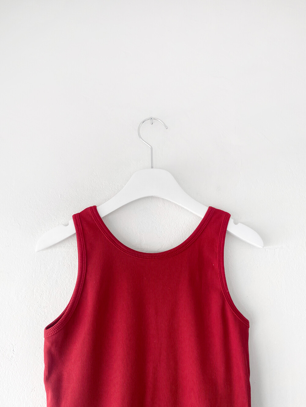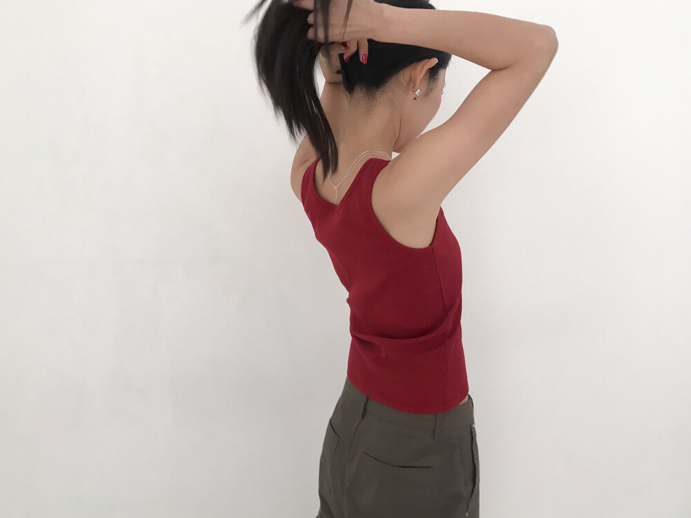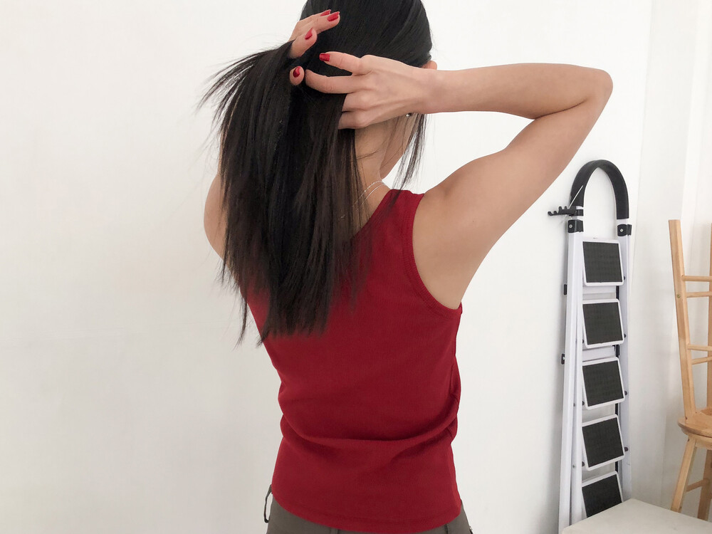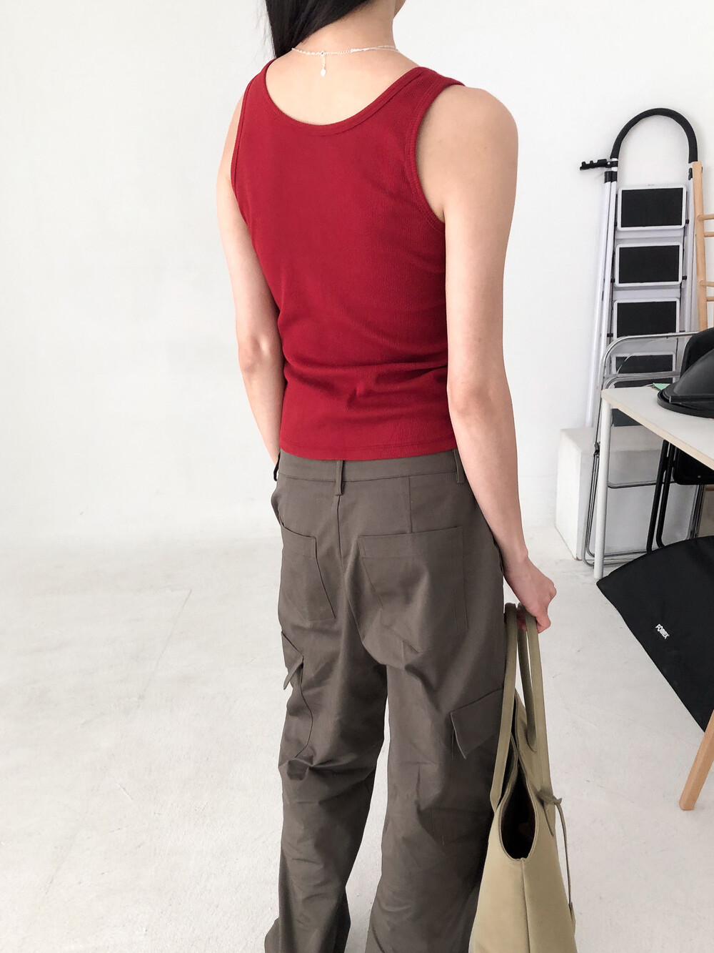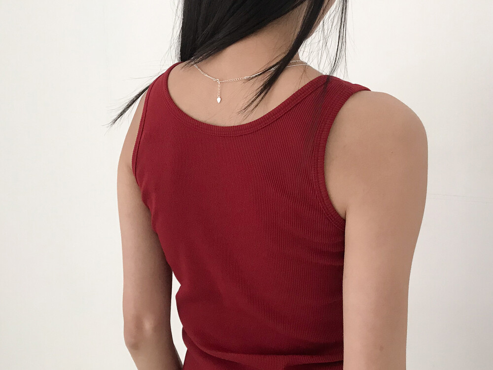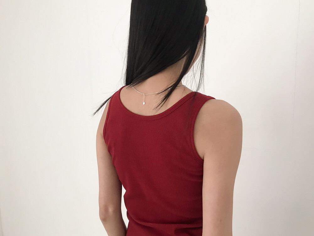 적당히 파인 네크라인이 깔끔하게 떨어지는 슬리브리스