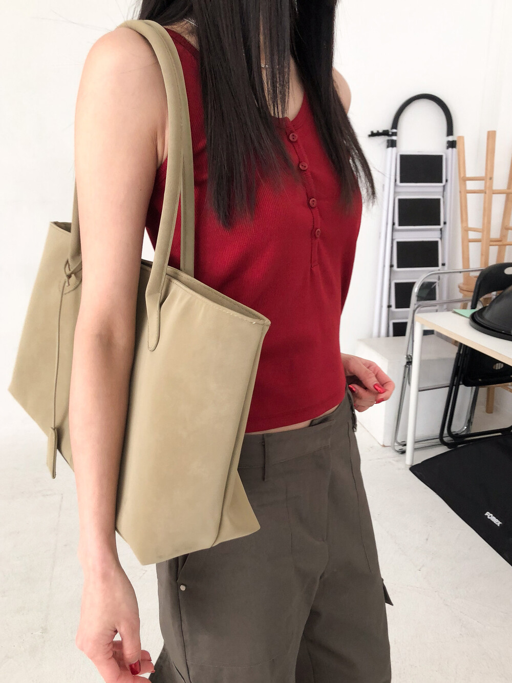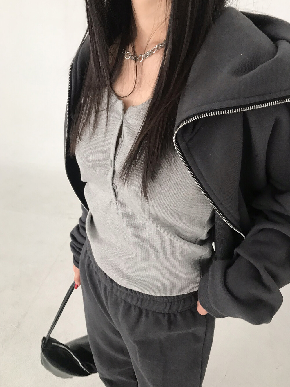 버튼 장식을 더해 단독 착용만으로도 포인트가 되어줘요