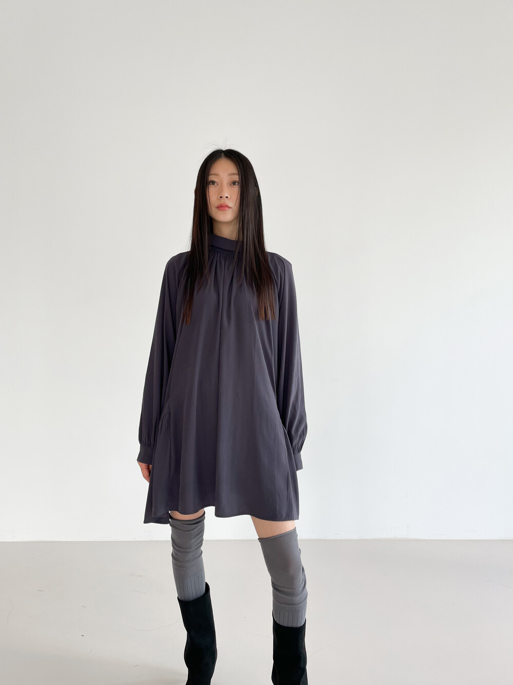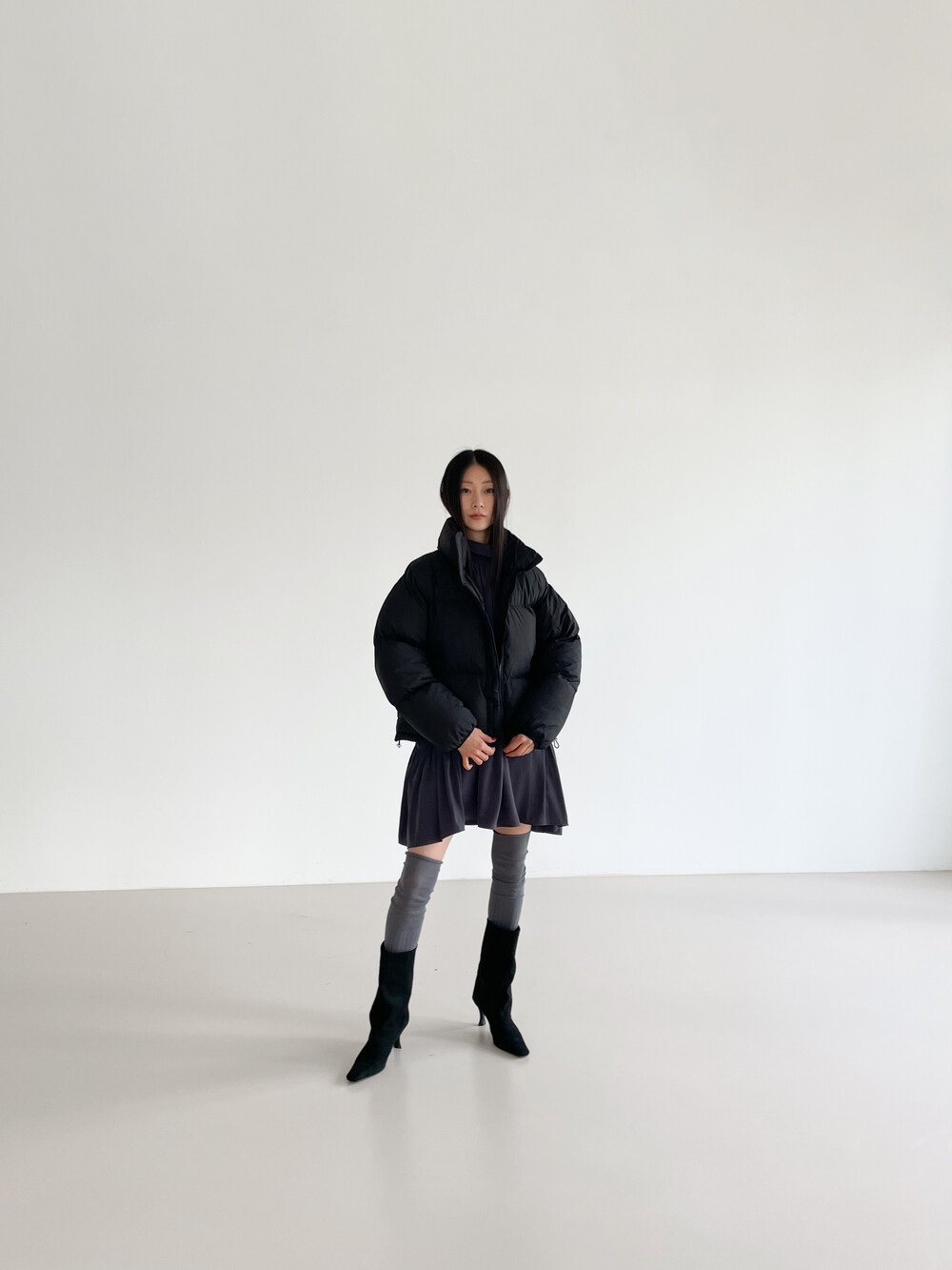 넥라인을 감싸주는 하이넥 디자인으로 보온성을 더해주고