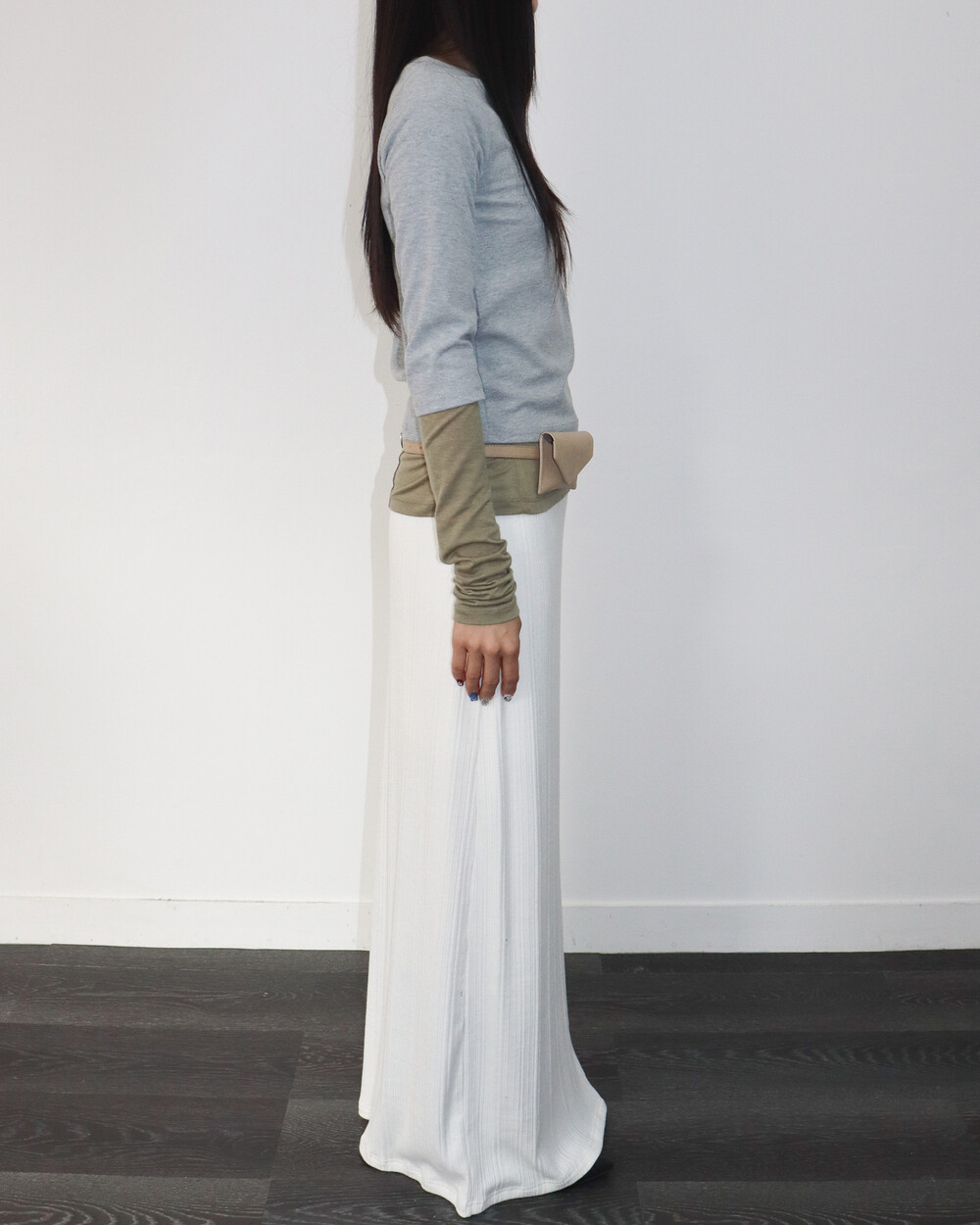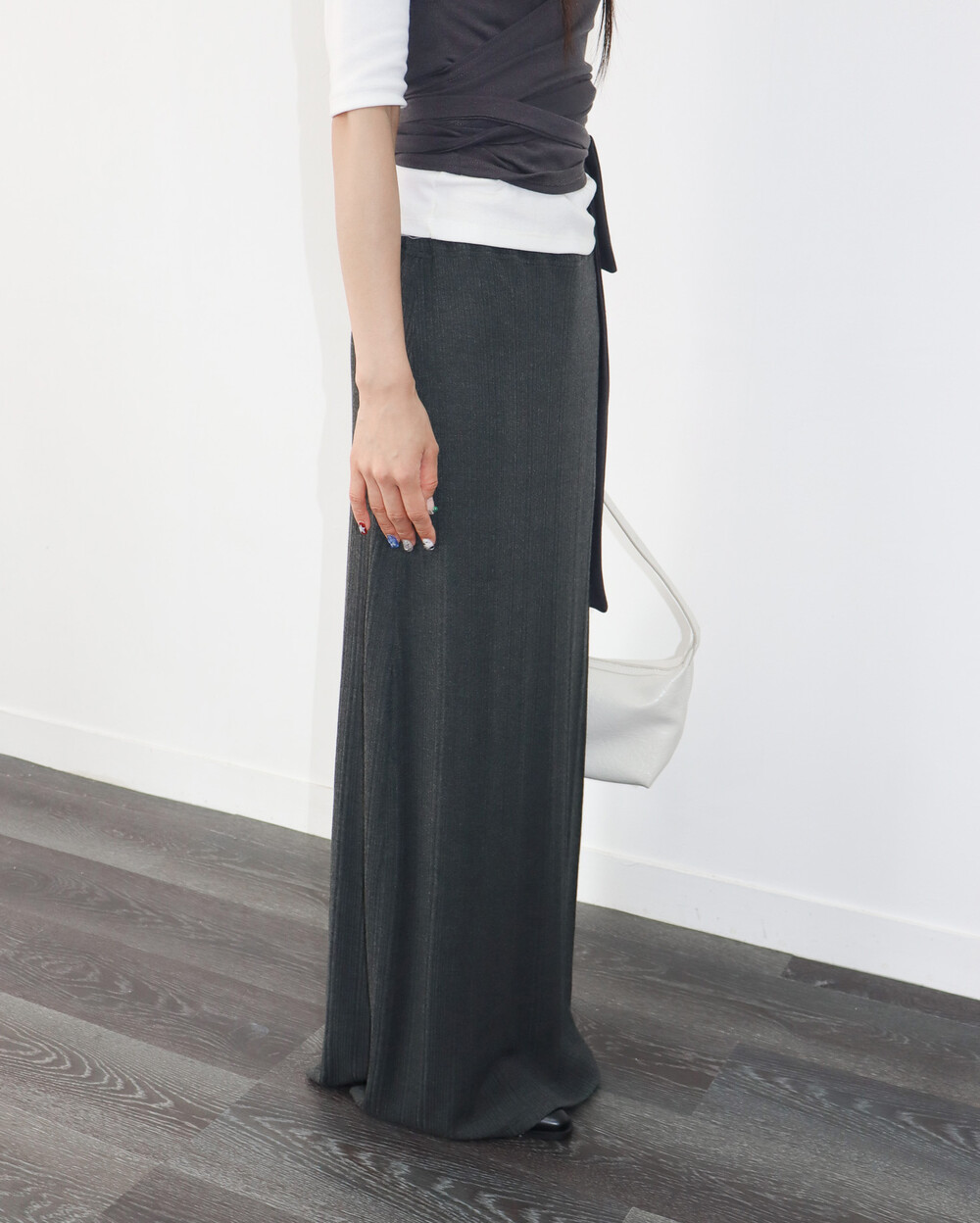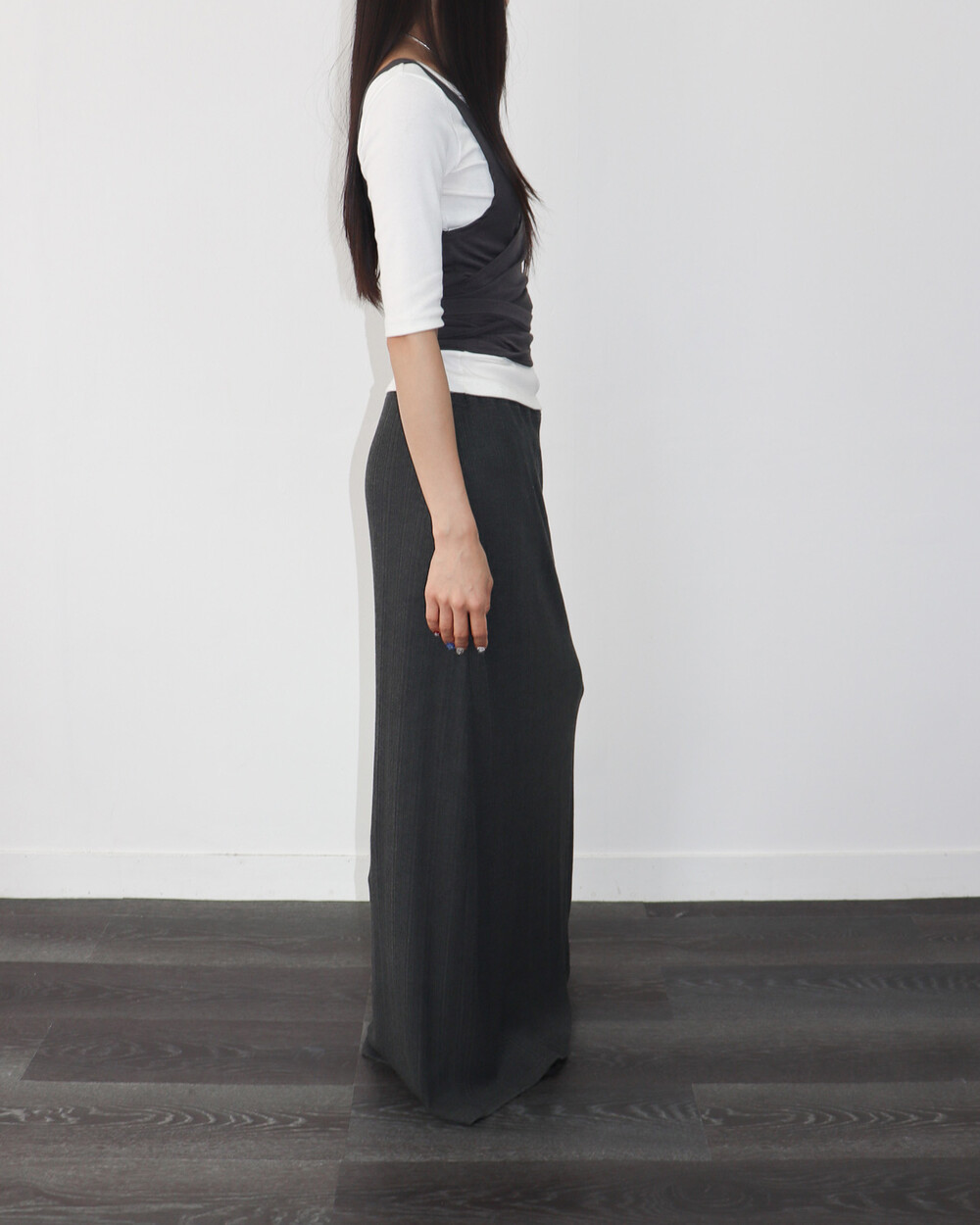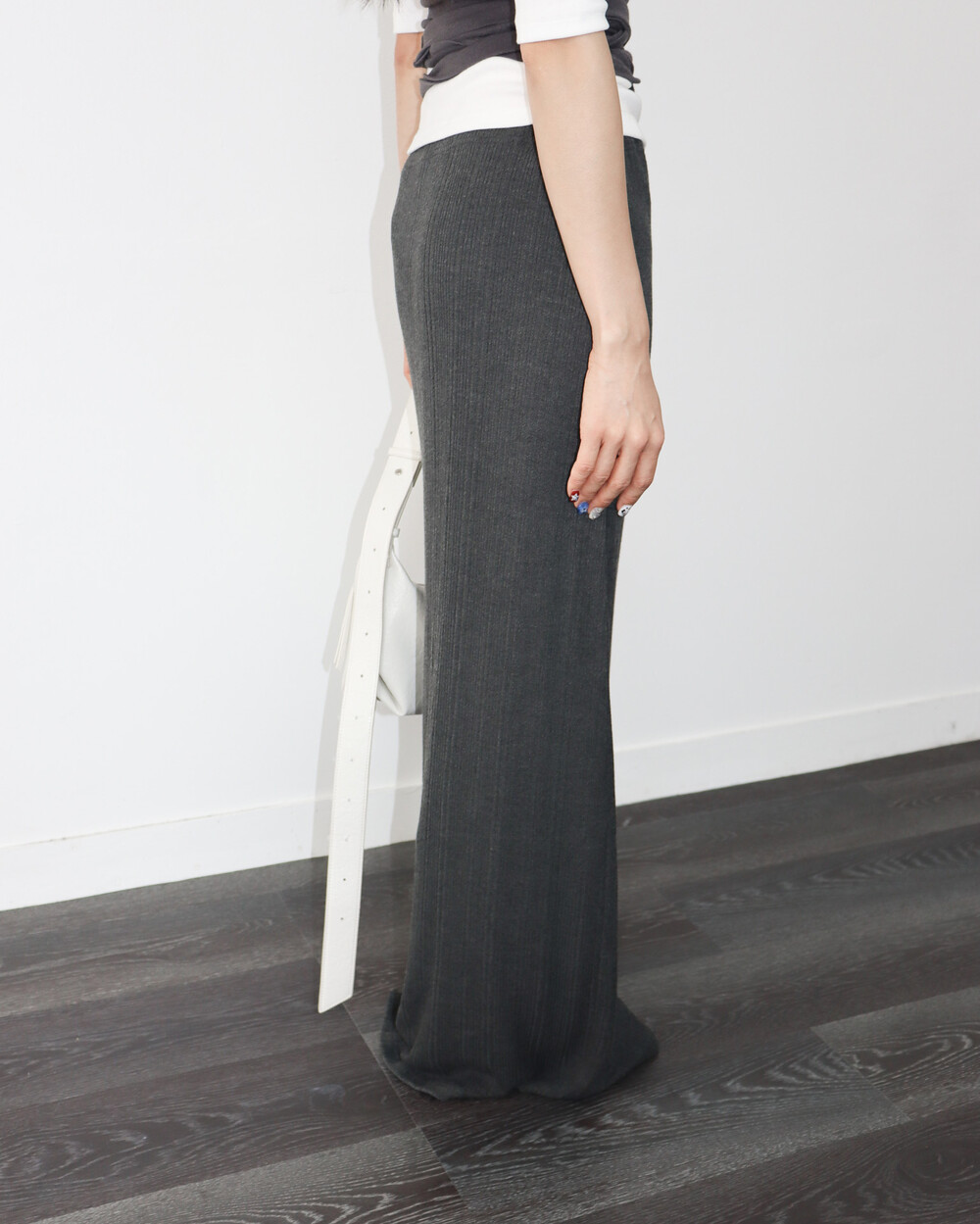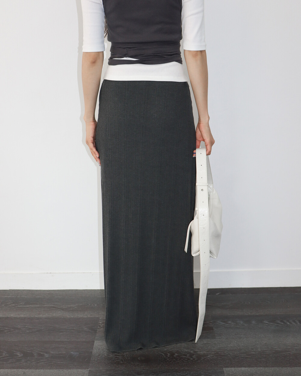 맥시한 기장감의 골지 결 스커트