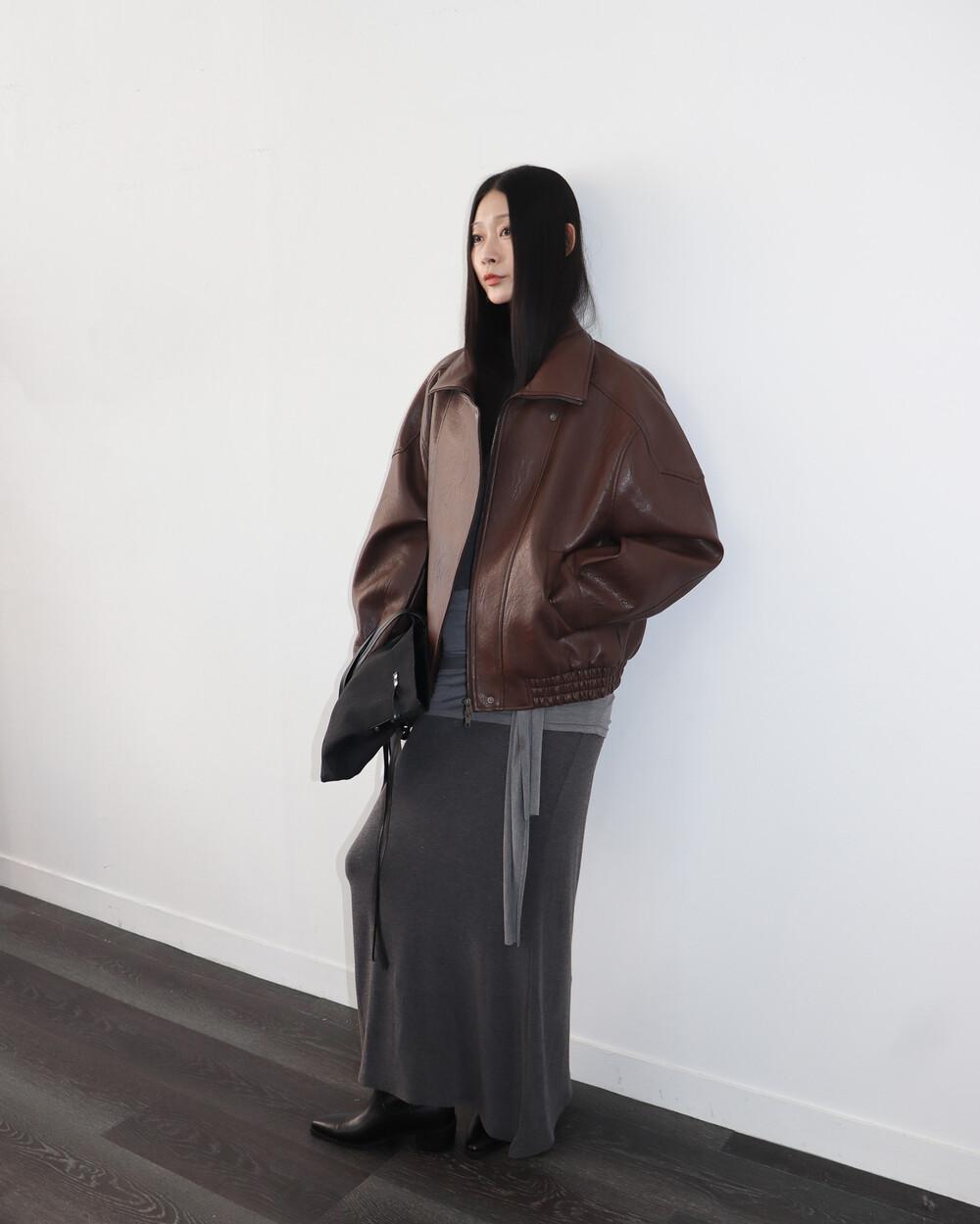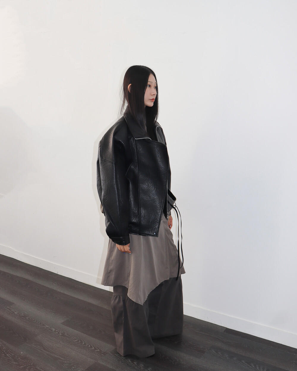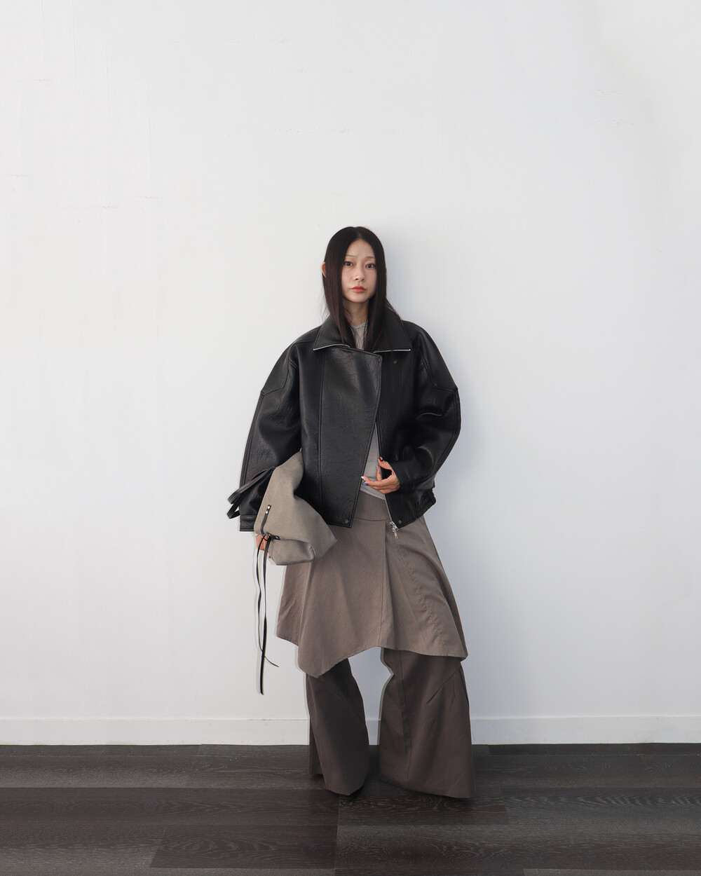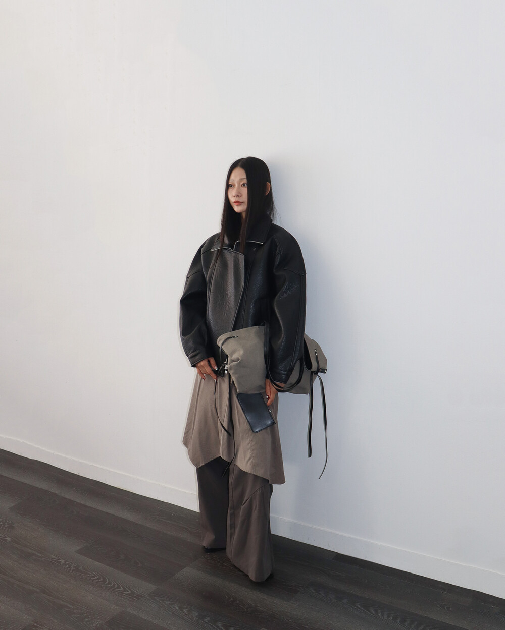 전체적으로 옷이 묵직하고 몸을 감싸는 느낌이라