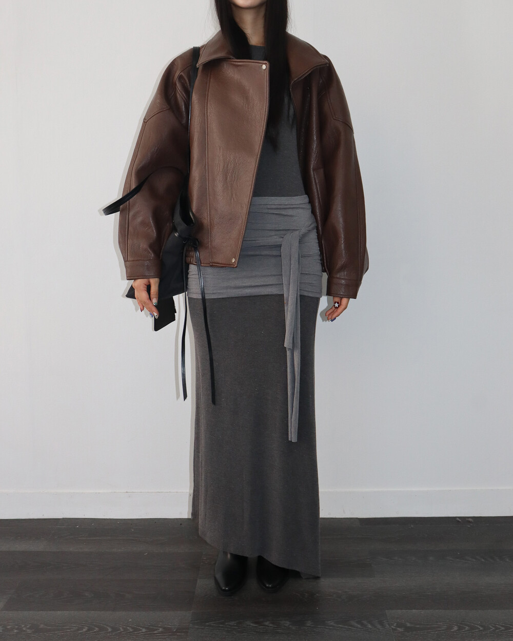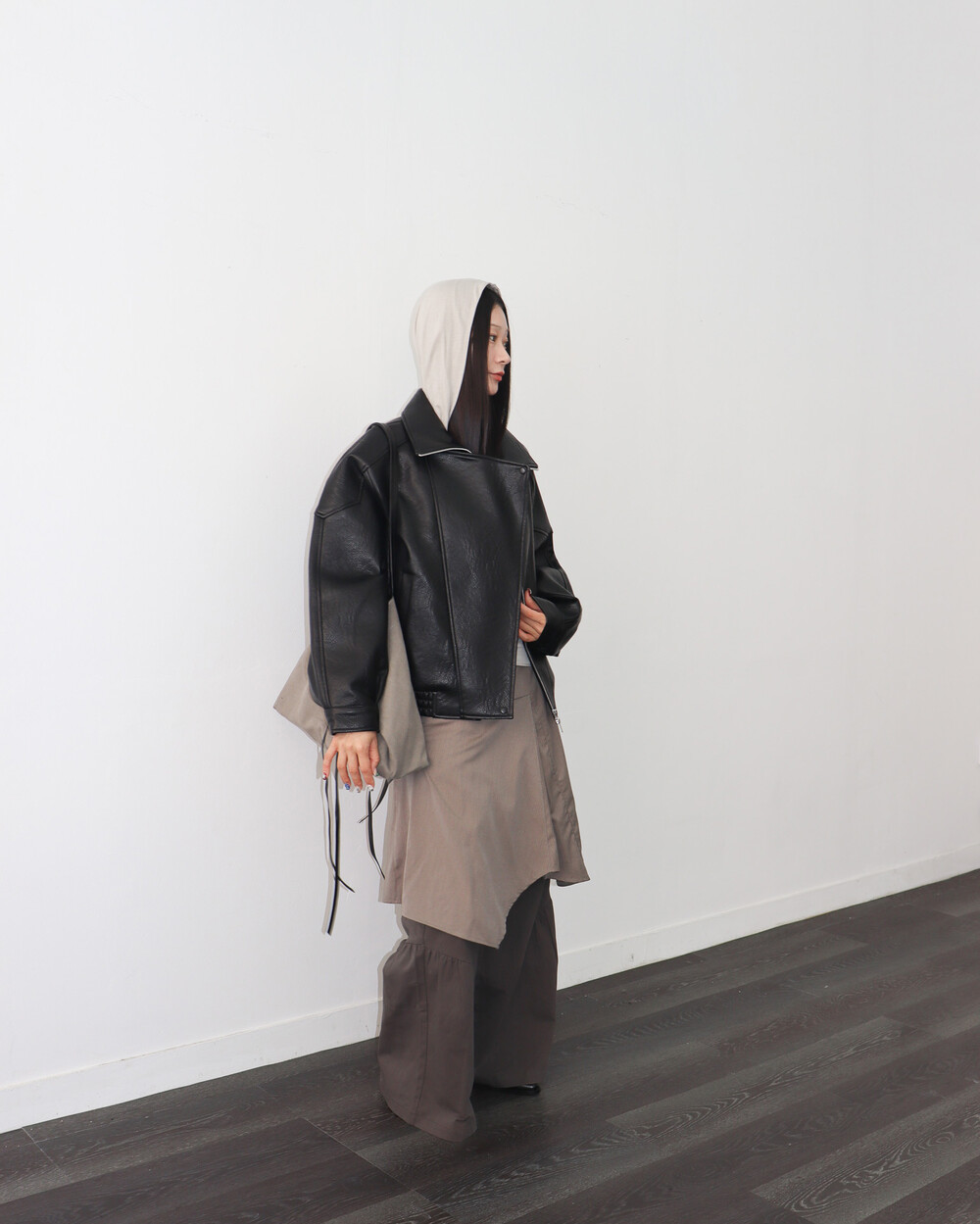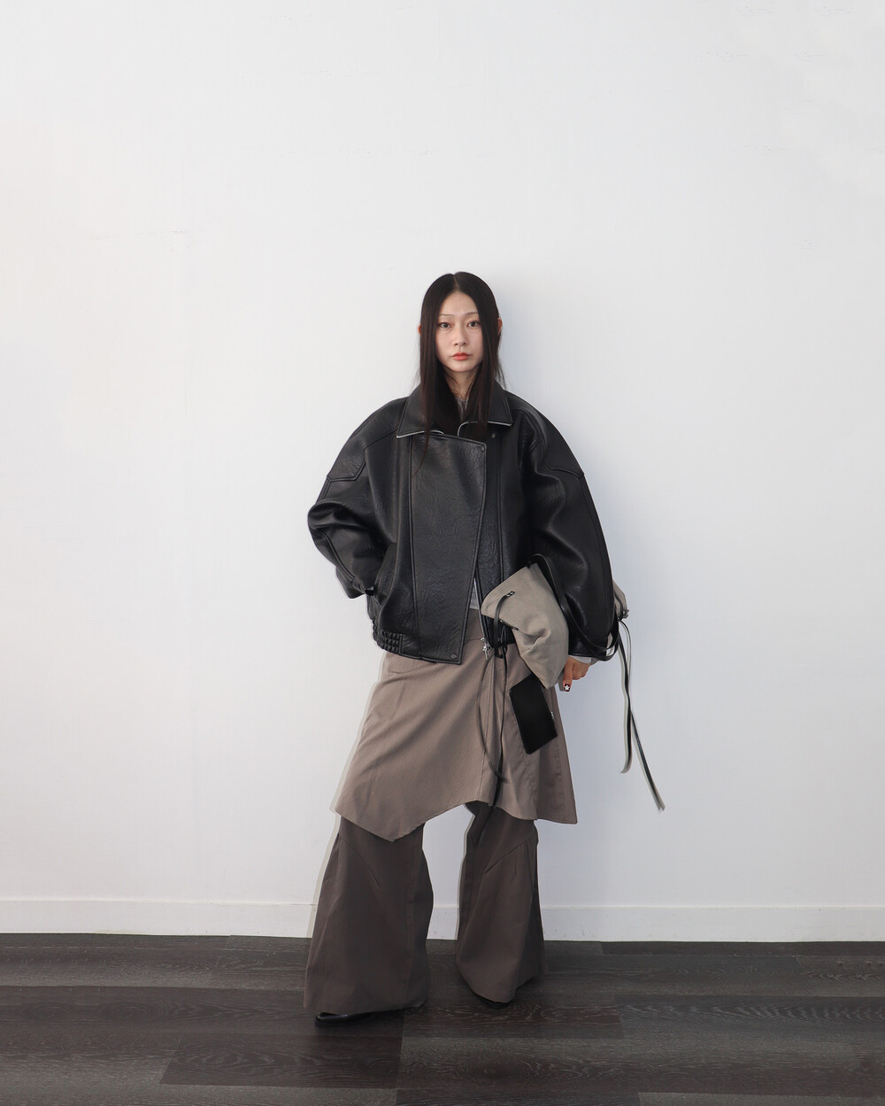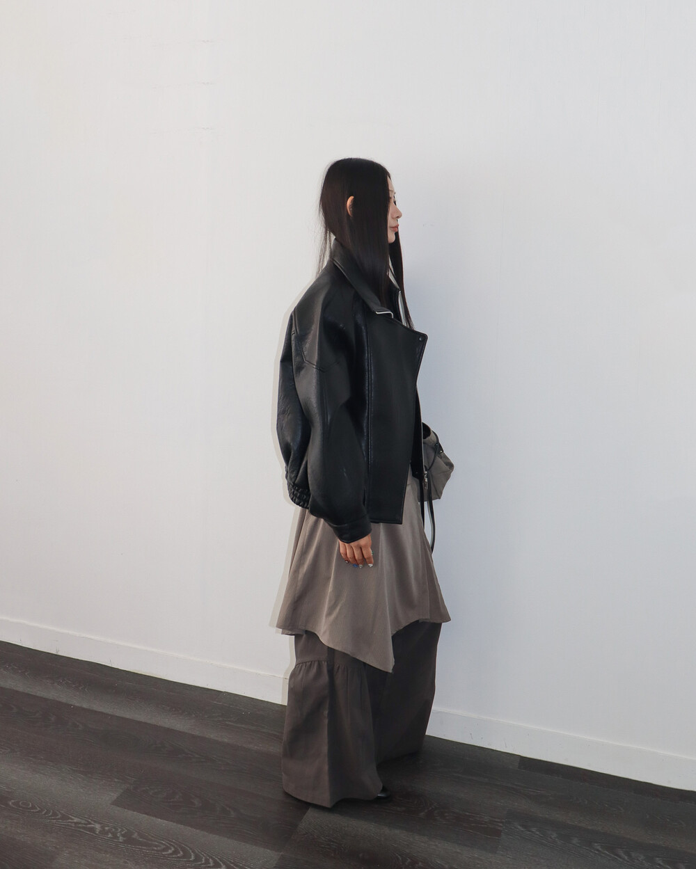 전체적으로 옷이 묵직하고 몸을 감싸는 느낌이라