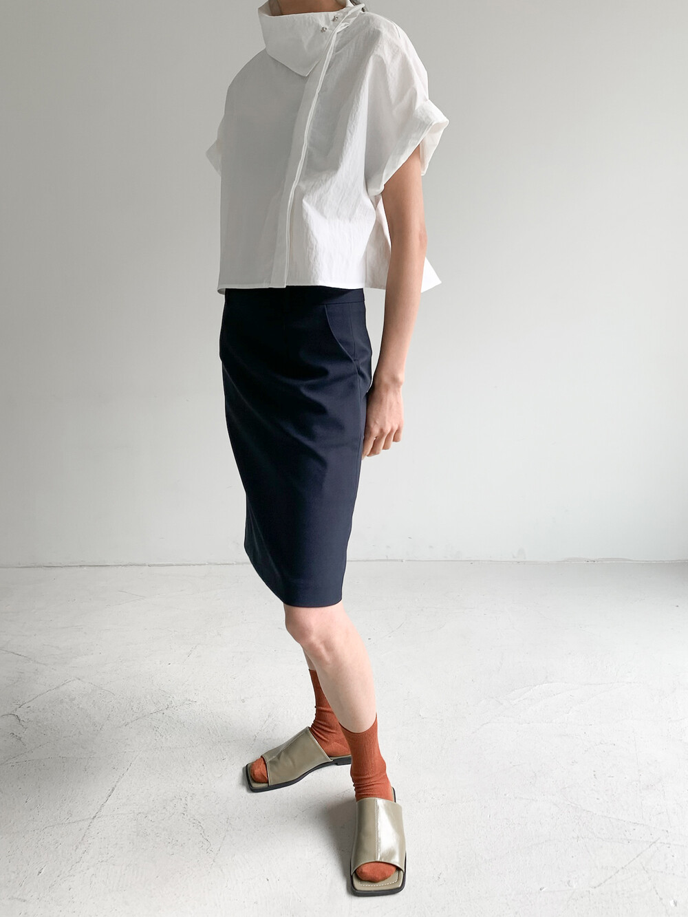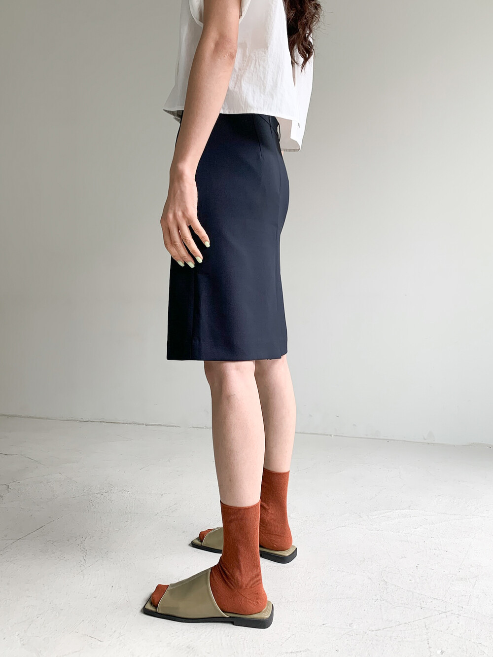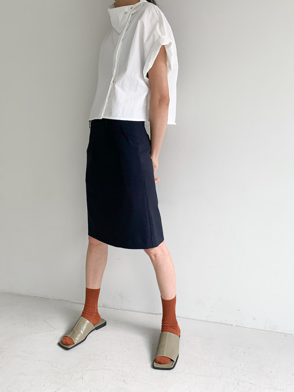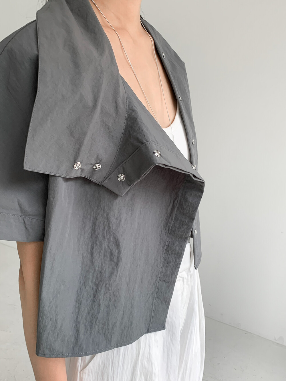 적당한 크롭 기장감/ 백라인 트임 디테일이 허리 라인을