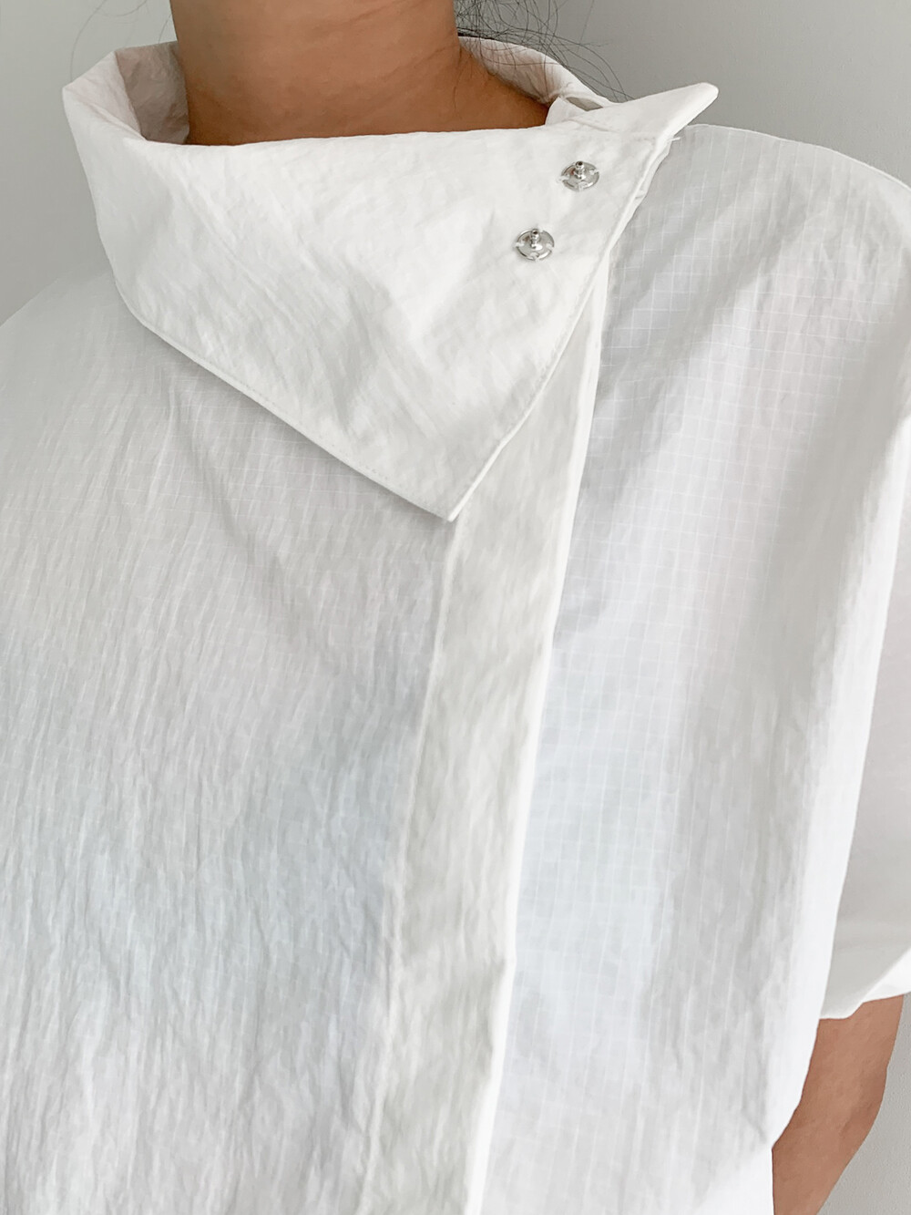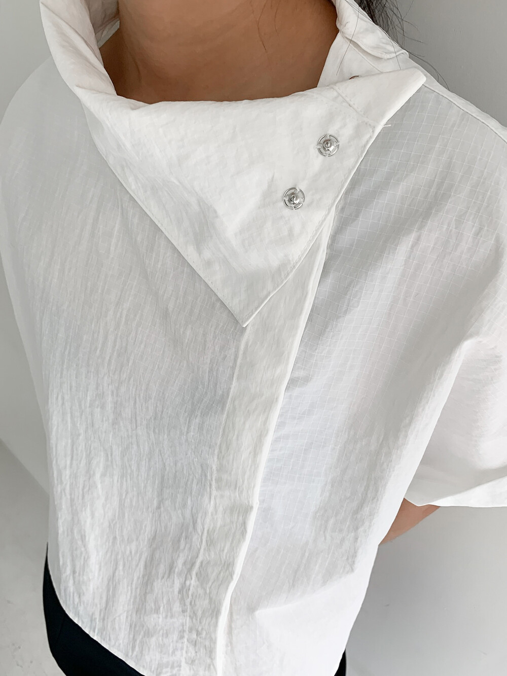 이 블라우스 곳곳의 디테일이 재미있어요, 카라를 세우거나 접어