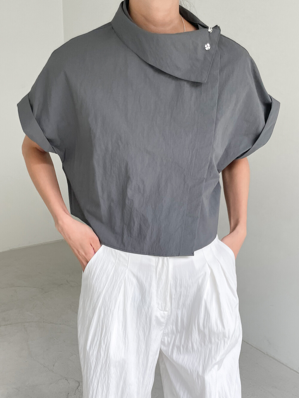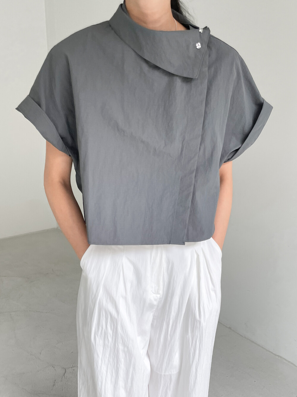 HIGH NECK BUTTON BLOUSE (2COLOR)