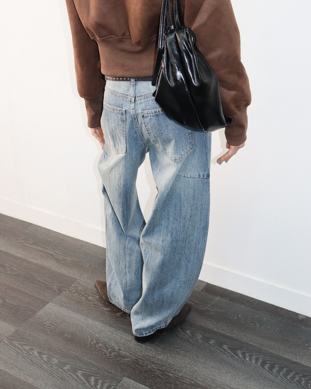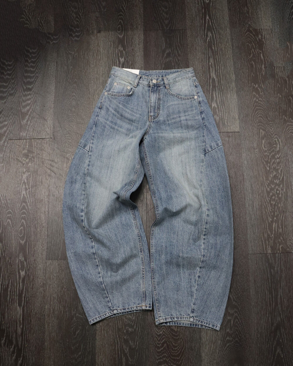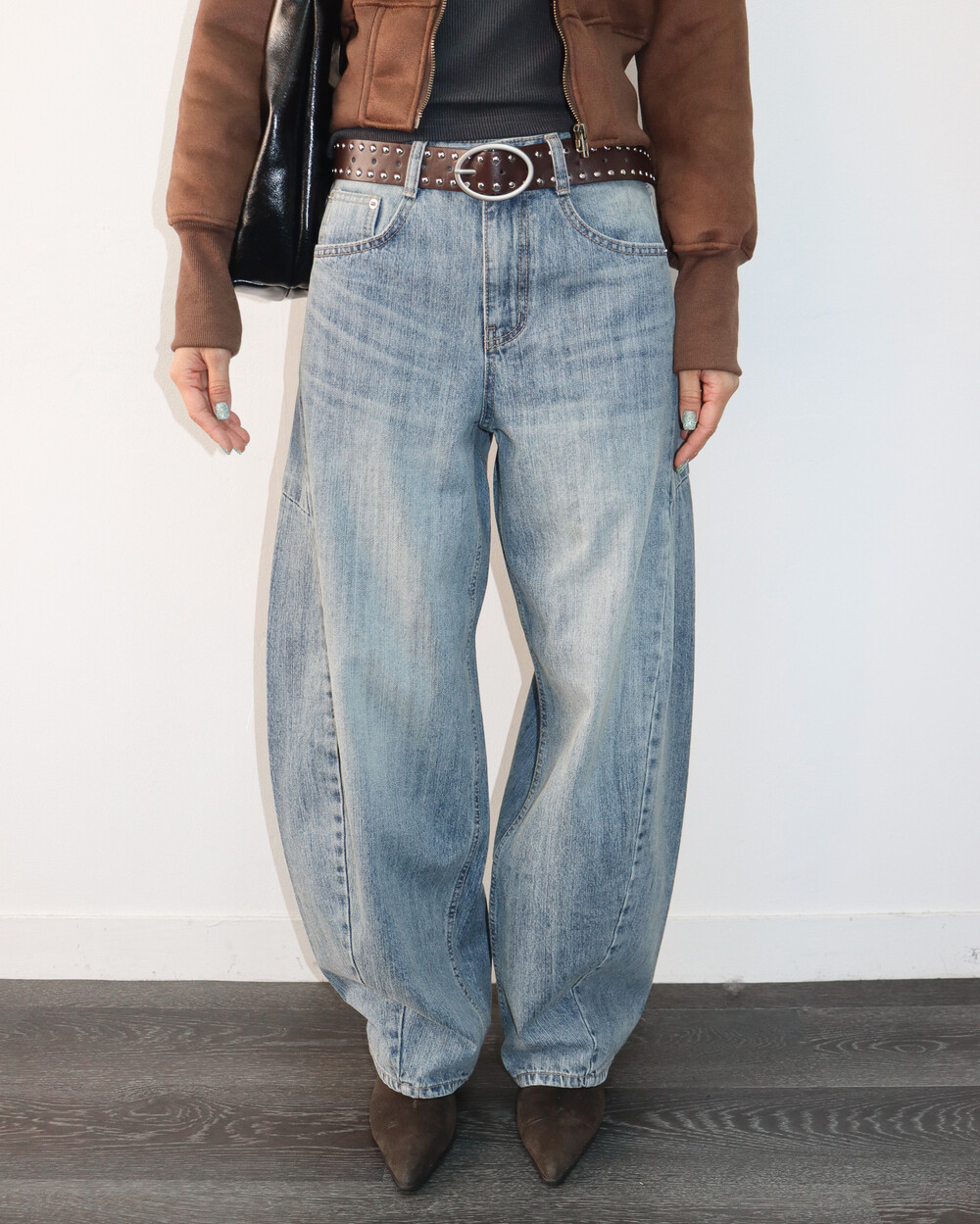 밑단까지 커브지게 좁아지는 핏, 멋스럽고 쿨하게 연출이 가능합니다